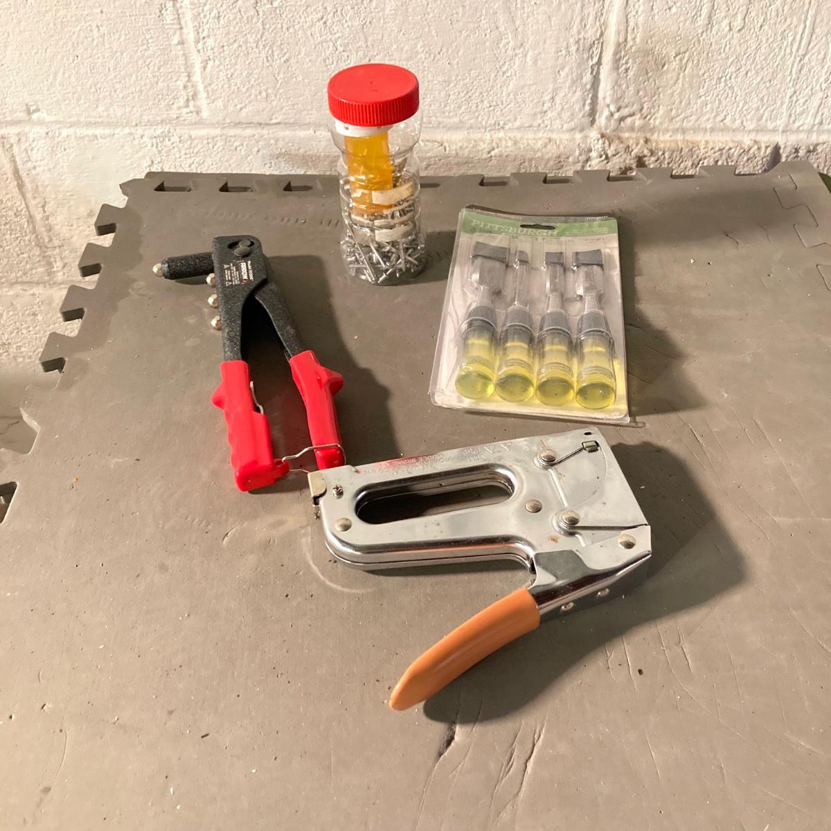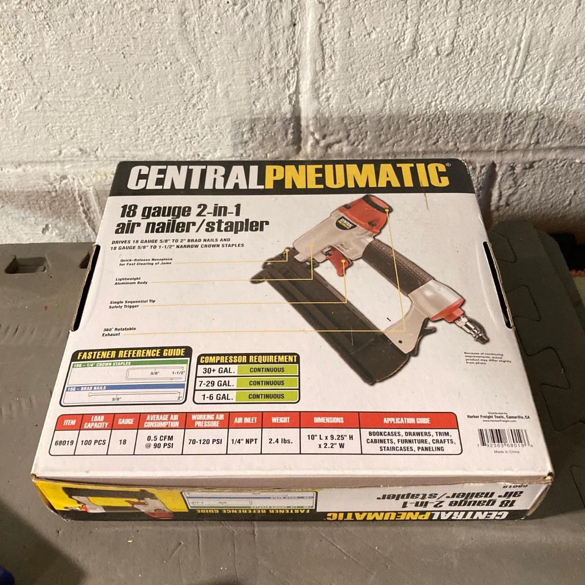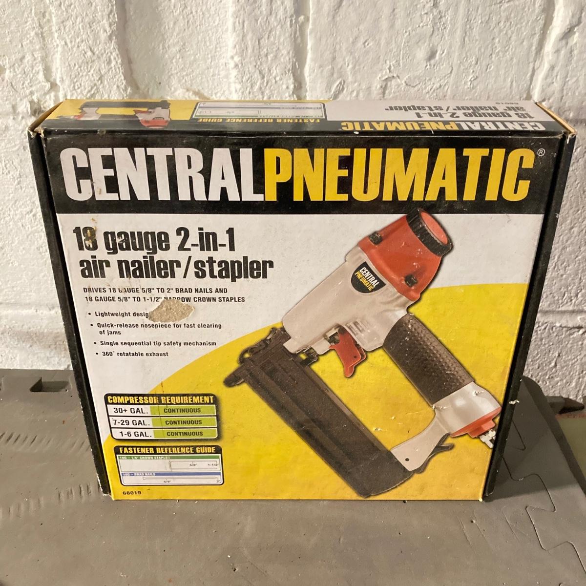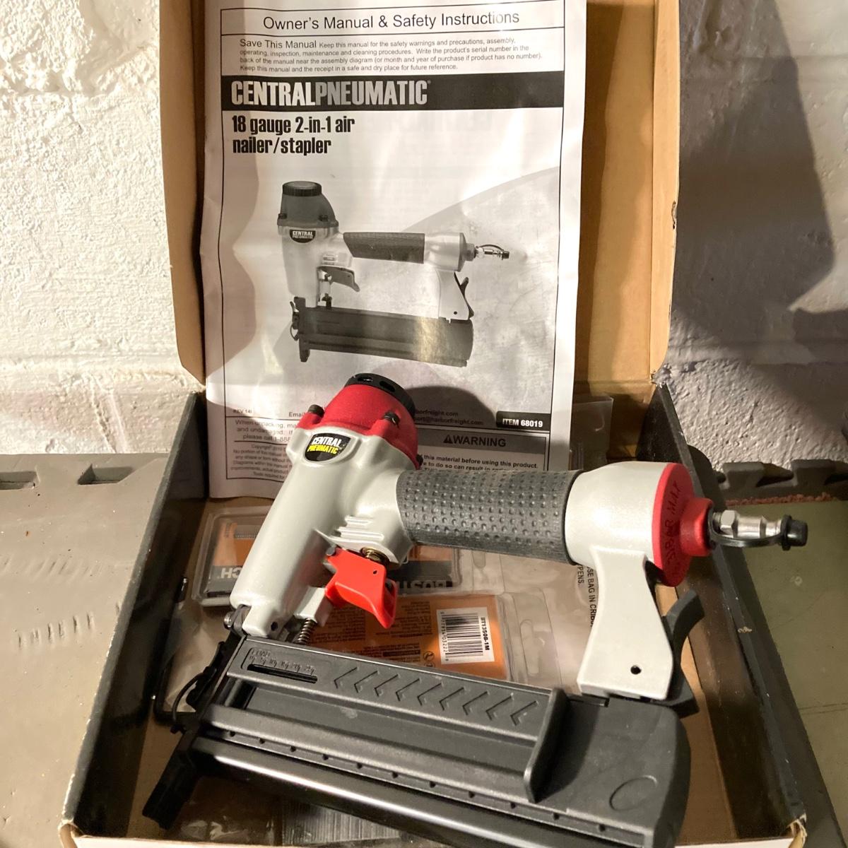 LOT 72: Bostitch Nail Gun in Storage Case, Central Pneumatic Air Nailer / Stapler, Arrow Rivet Gun Model RH200, Chisel Set and More