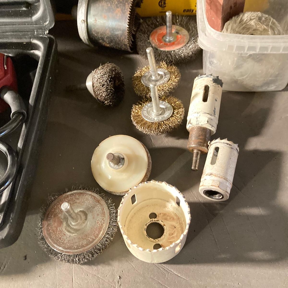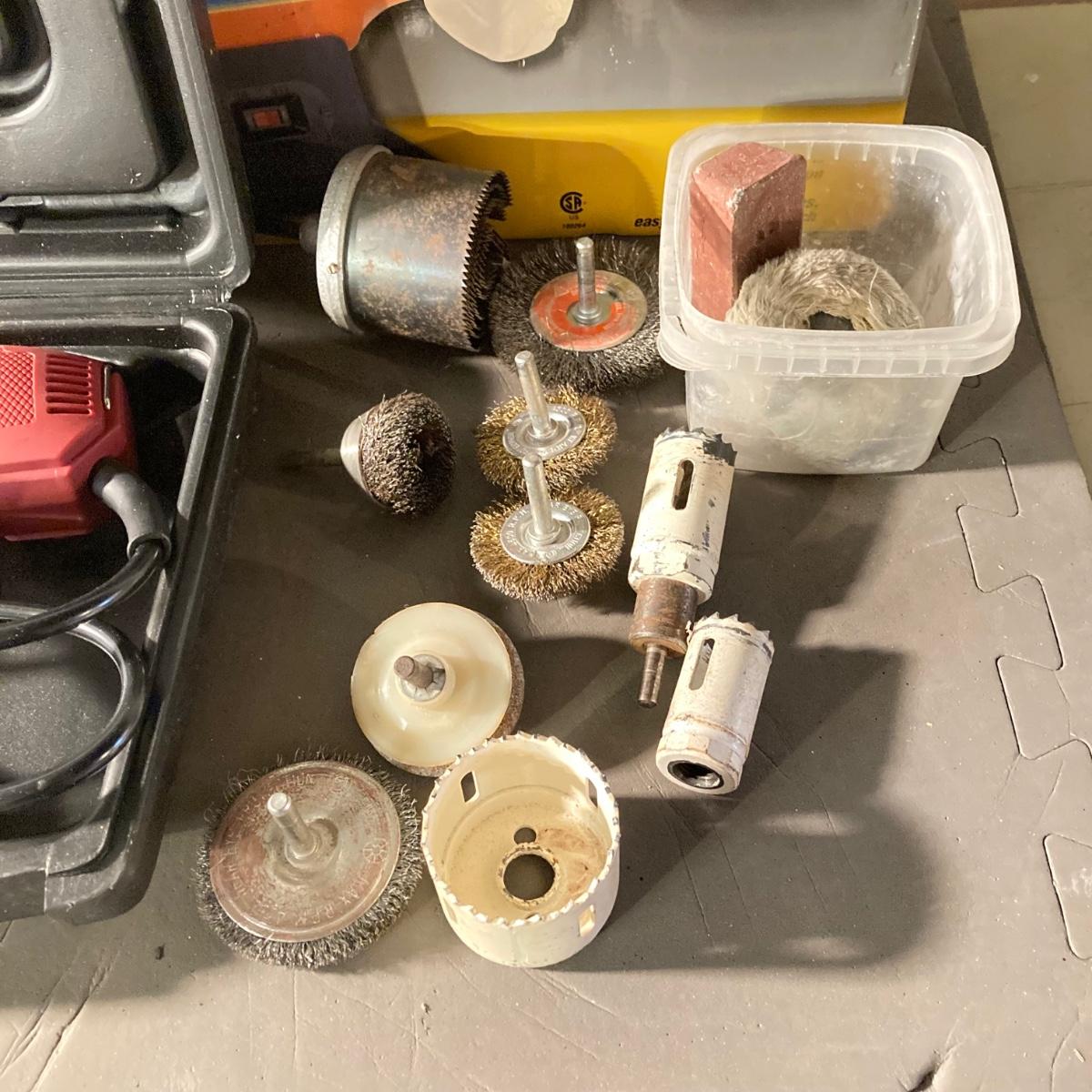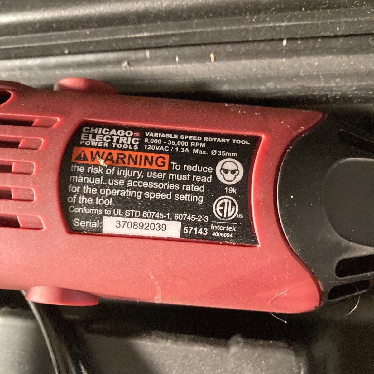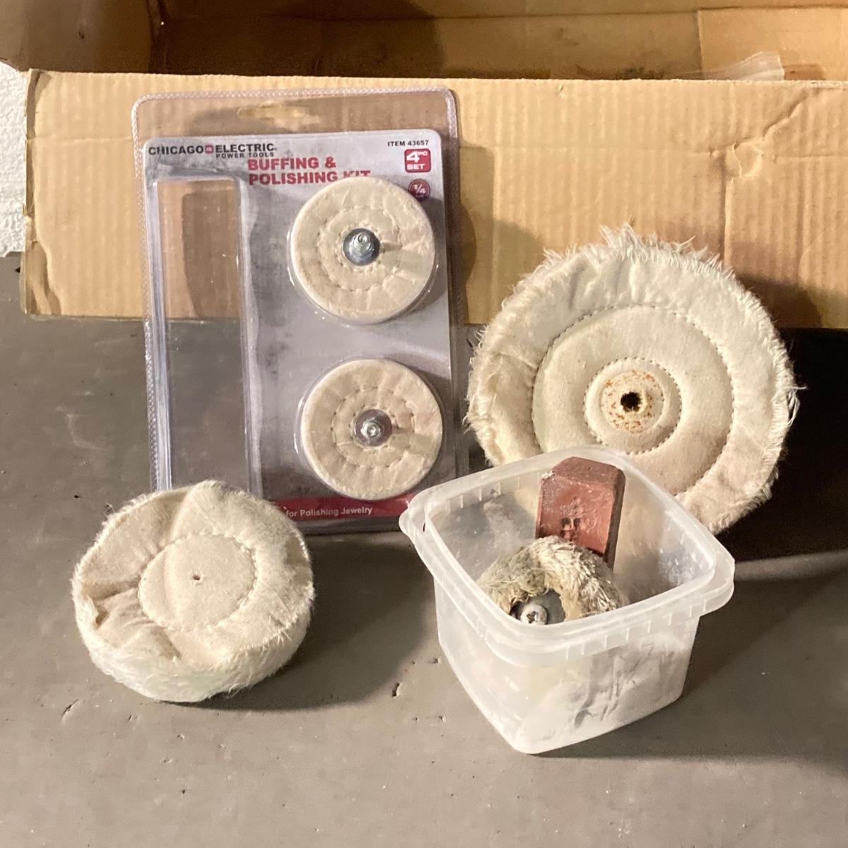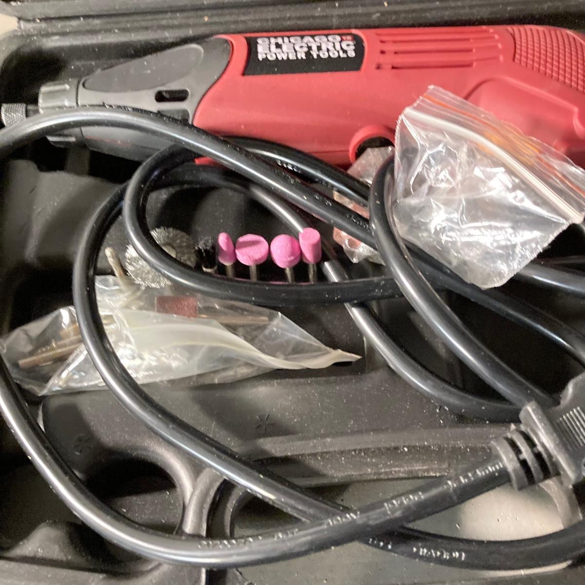 LOT 73: Central Machinery 6" Bench Buffer in Original Box, Chicago Electric Power Tools Rotary Tool in Storage with Accessories