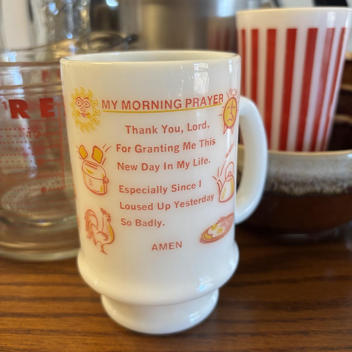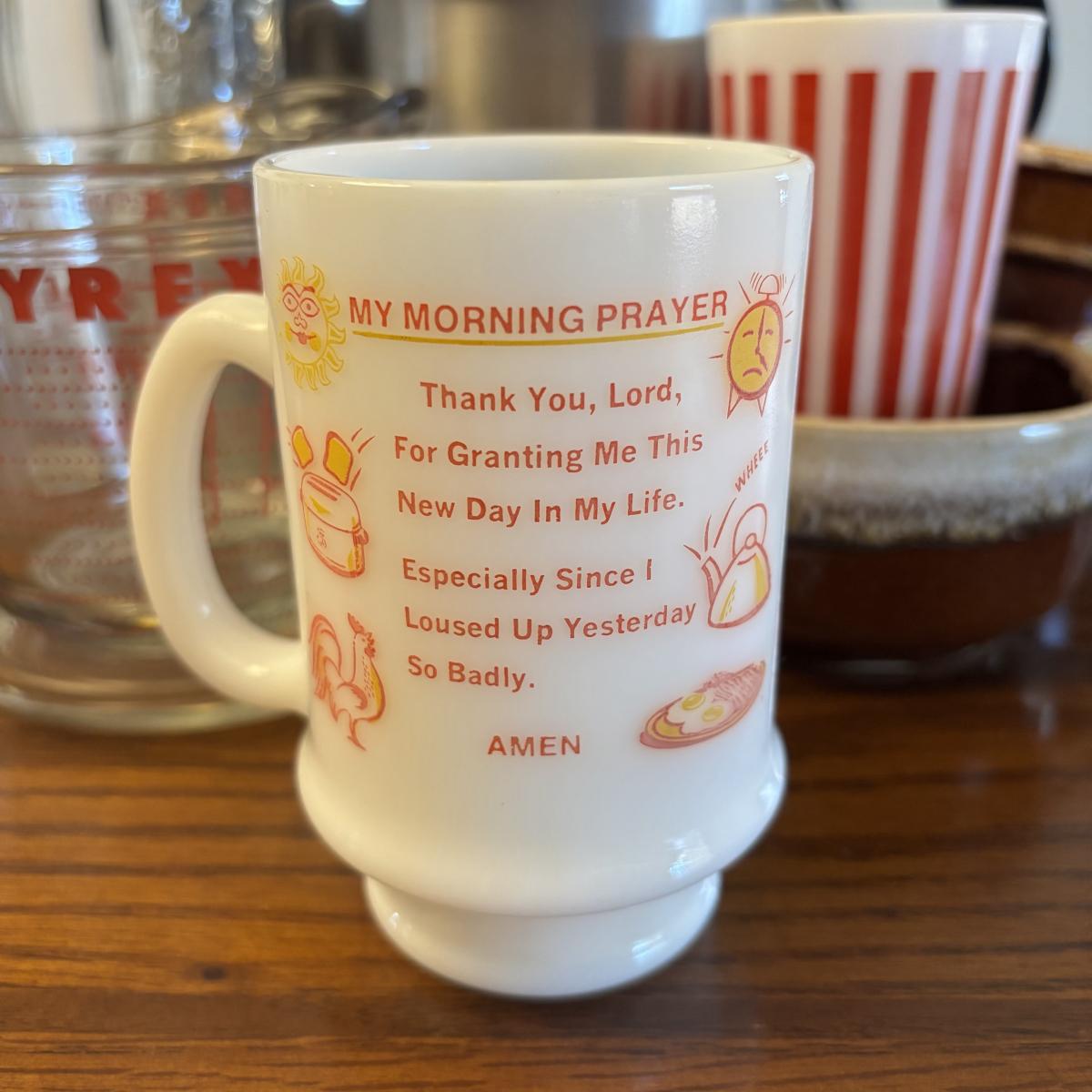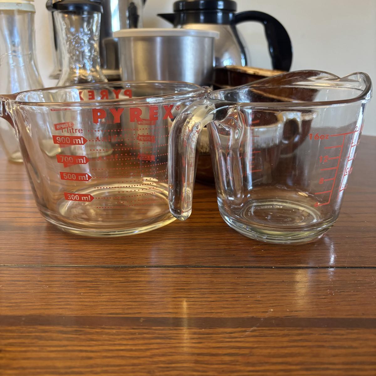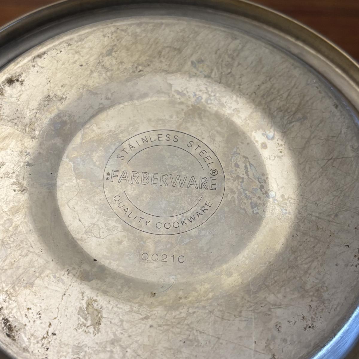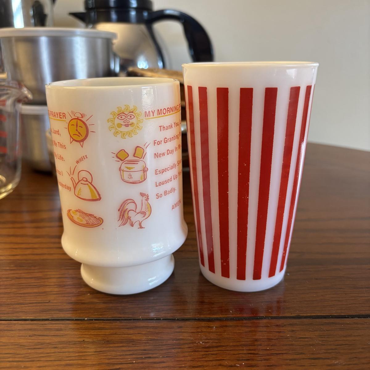 LOT 87: Kitchen Collection of Farberware Percolator Coffee Pot, Vintage Milk Glass Mug & Glass, Measuring Cups, Stainless Steel Bowls w/Lids & More