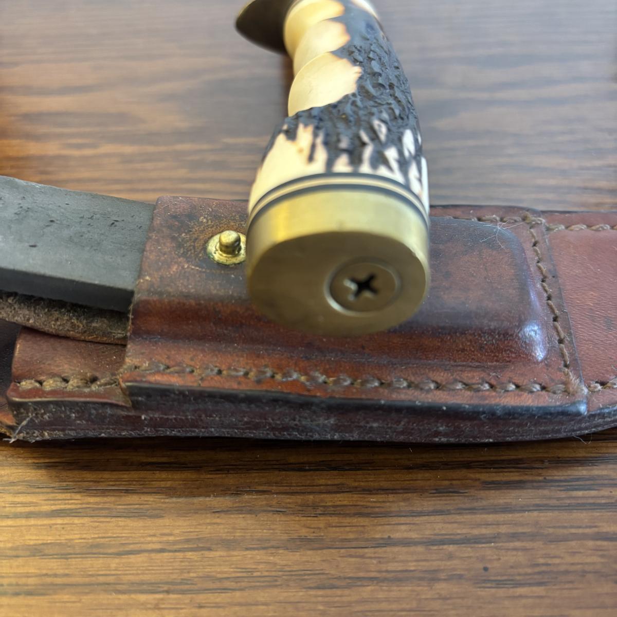 LOT 92: Schrade 153UH Uncle Henry Knife w/ Leather belt sheath & whetstone