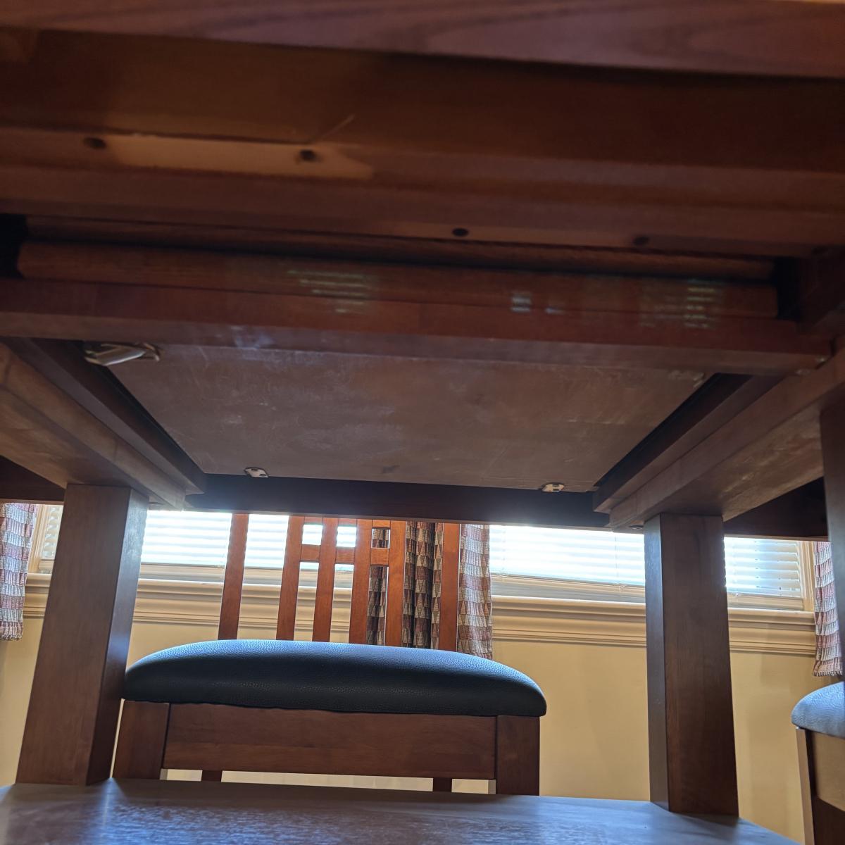 LOT 100 Mission Style Table & Chairs w/Hidden Extension & Bottom Storage Cabinet