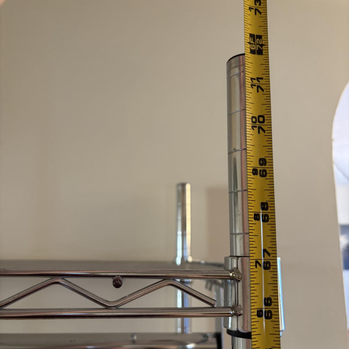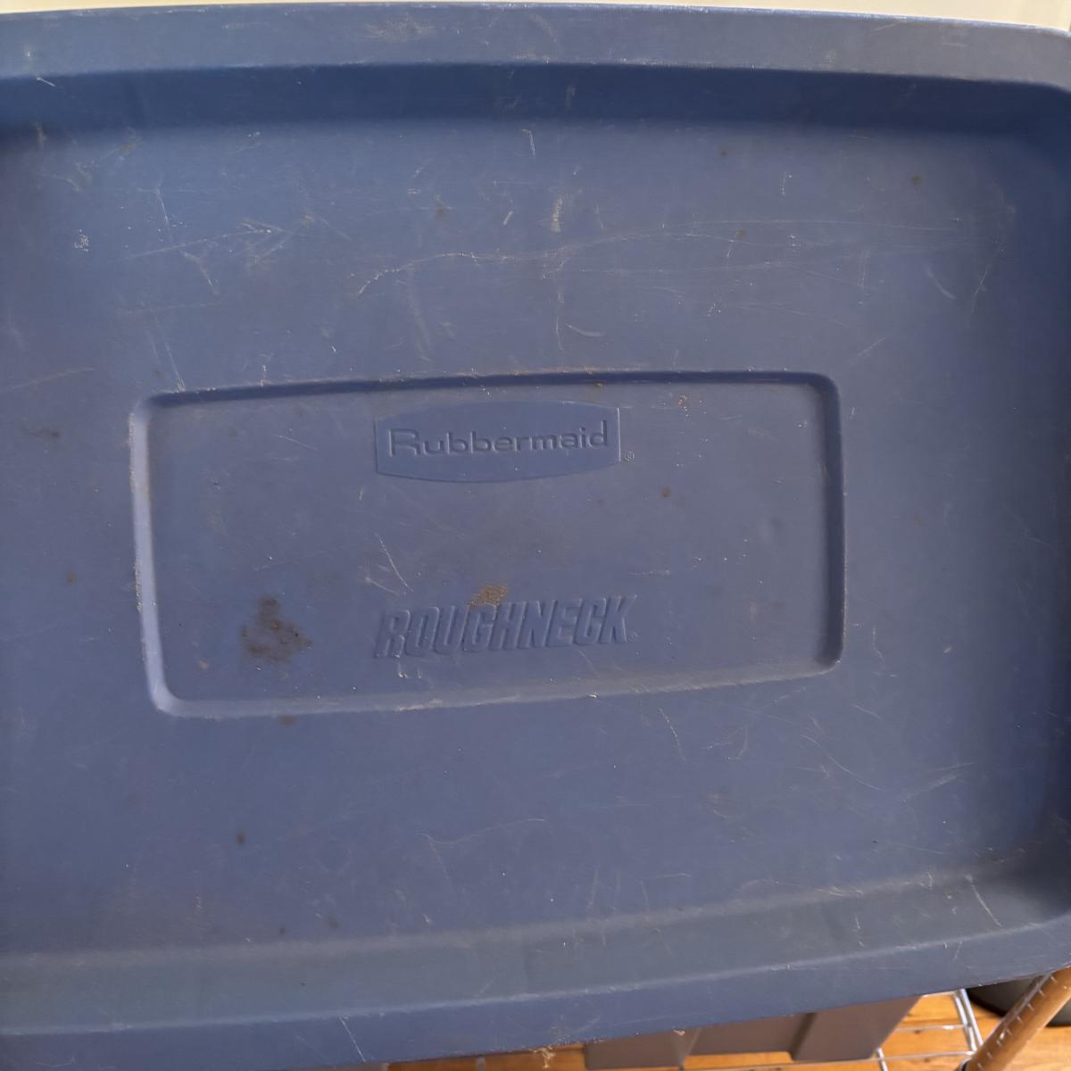 LOT 101: Metal Garment Rack on Wheels, Rubber Maid Storage Tote, Sterilite Footlocker on Wheels & Intertek Tower Fan