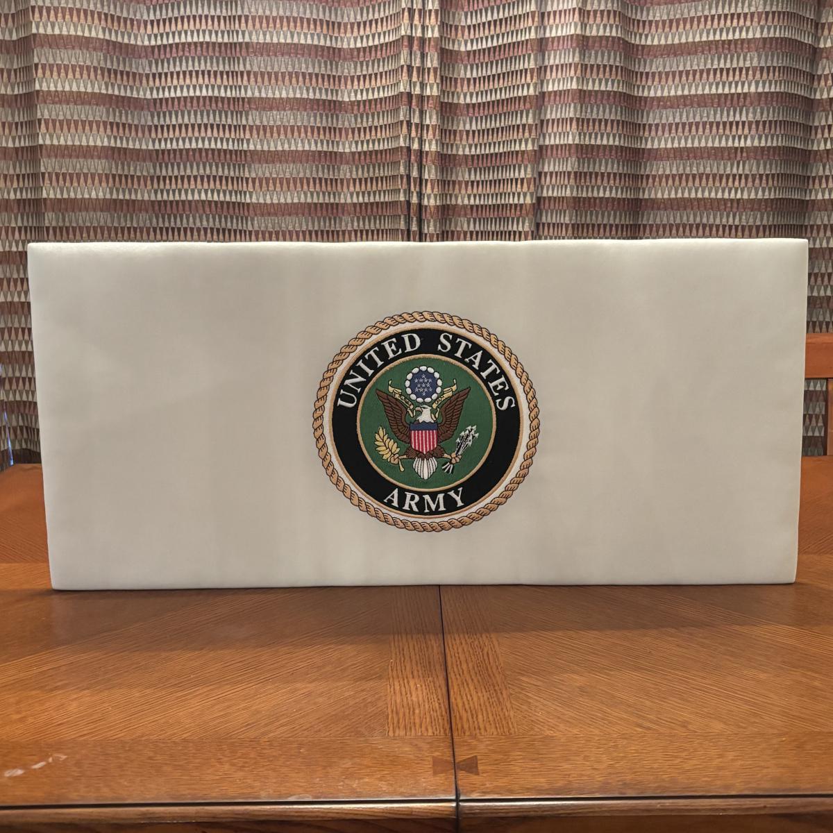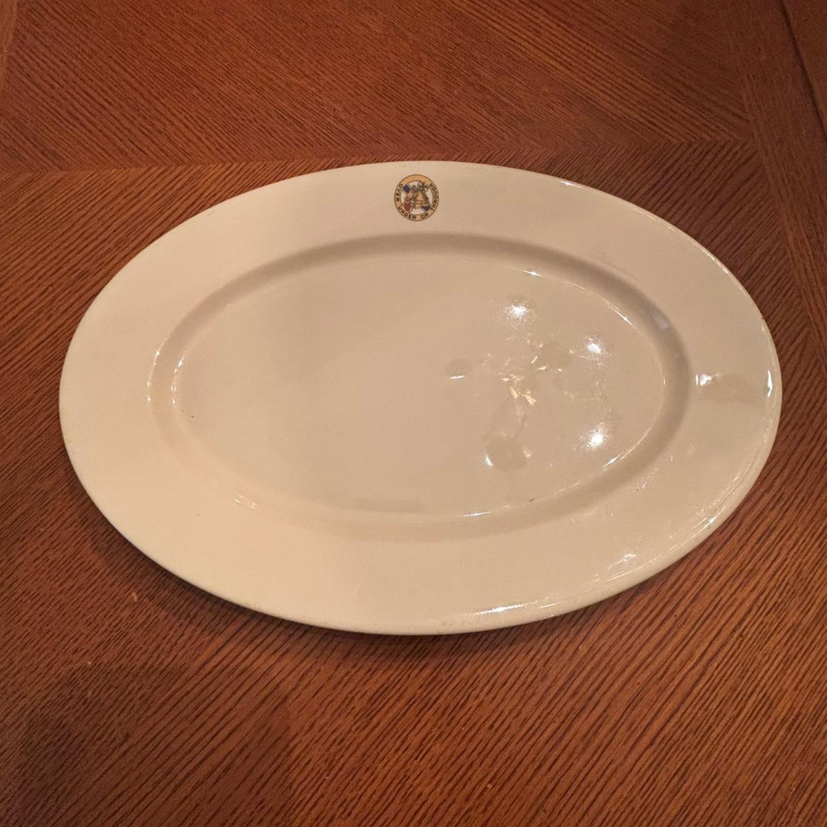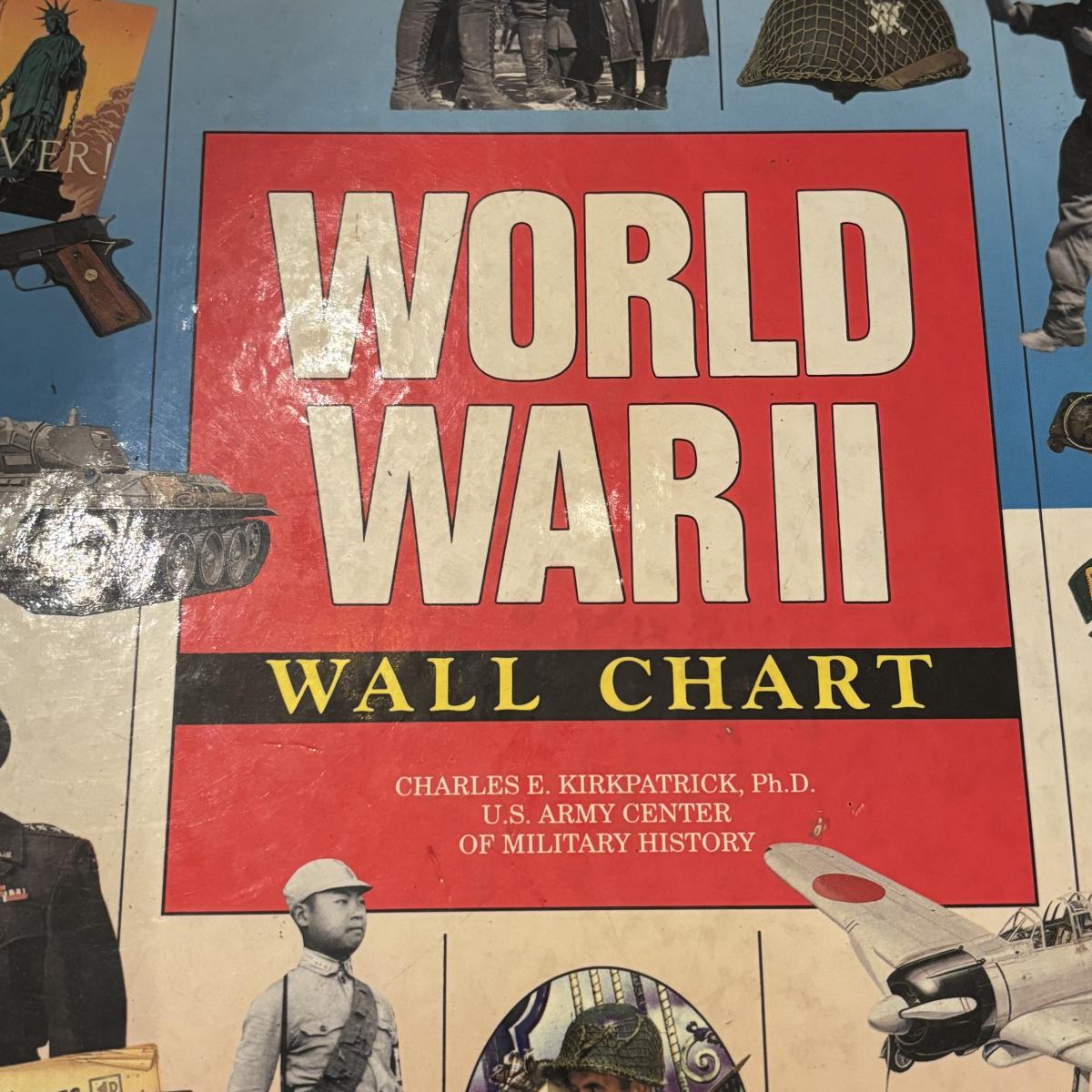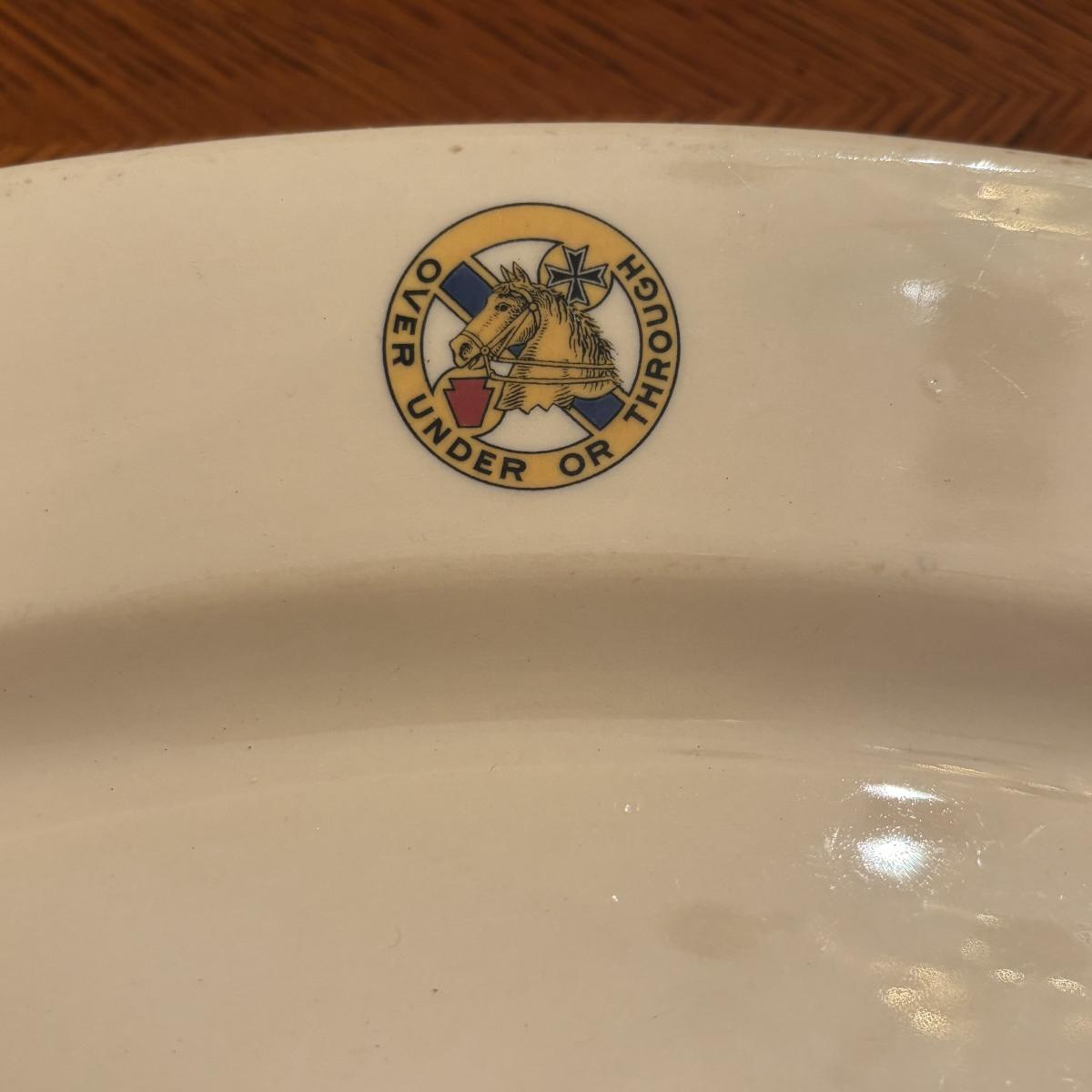 LOT 104: Vintage WWII 104th Calvery Regiment Mess Hall Dinnerware Serving Platter, WWLL Wall Chart, US Army Casket Panel along with JFK Memorabilia