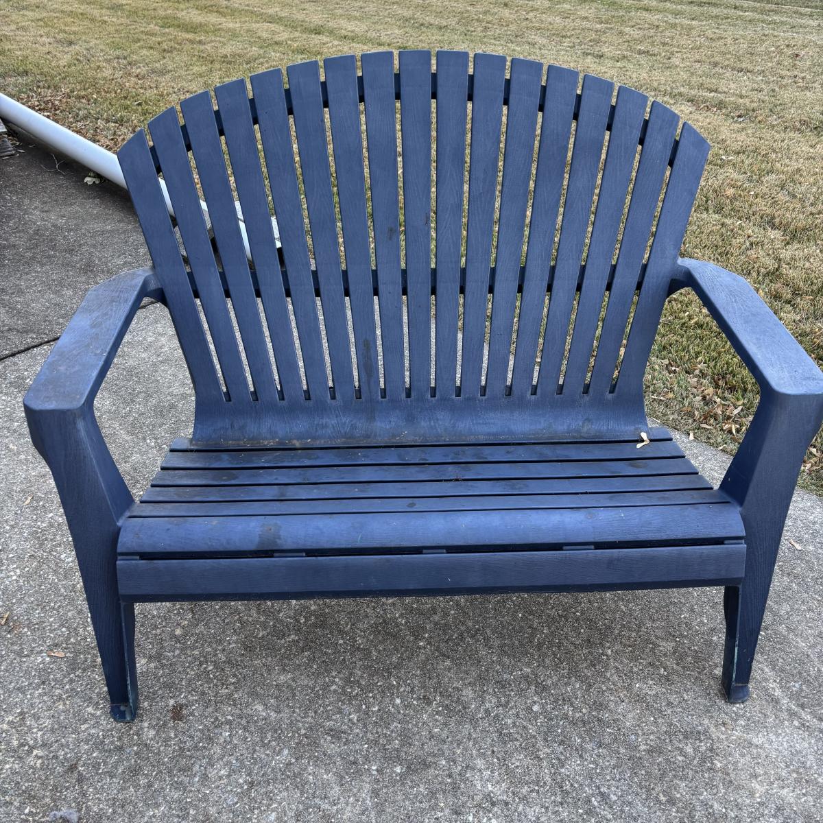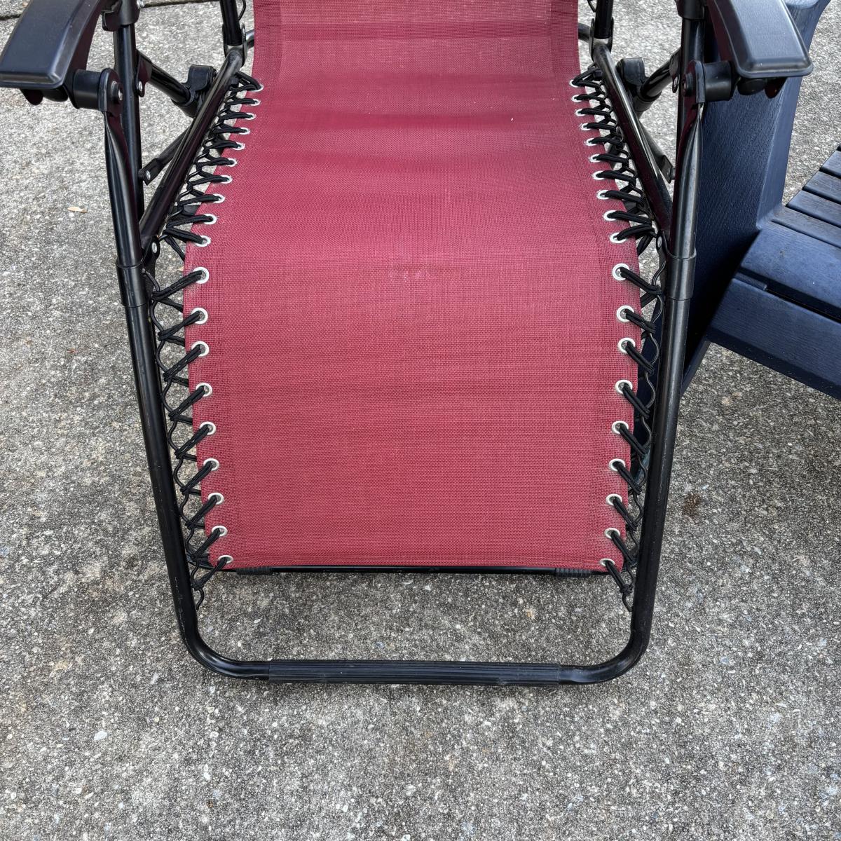 LOT 107: Outdoor Zero Gravity Chair along with an Adirondack Plastic Love Seat (appears to be painted)