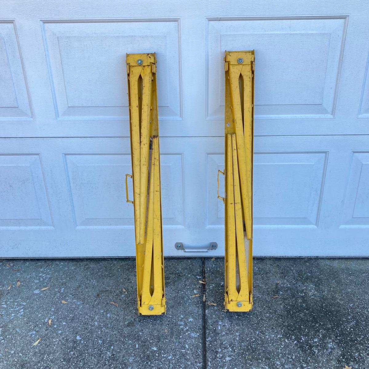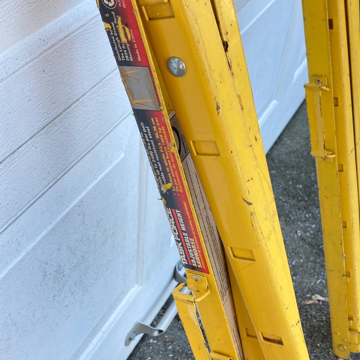 LOT 116: Pair of Task Force Adjustable Height Metal Sawhorses and Rolling Hand Truck / Dolly