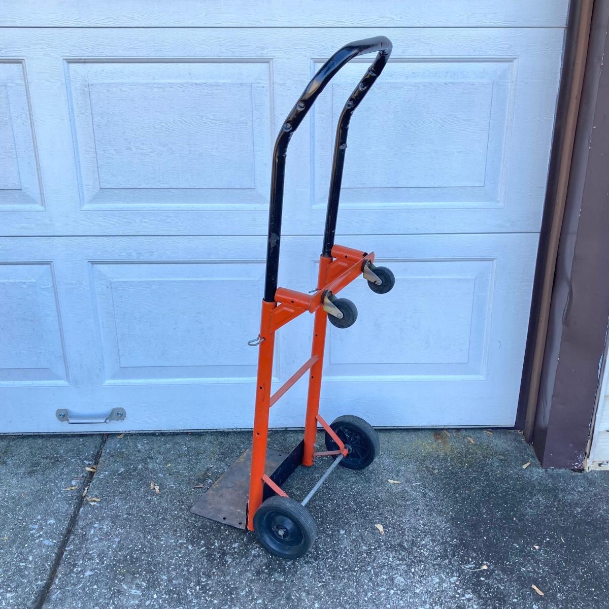 Hand truck has piece that may need repair (as shown)