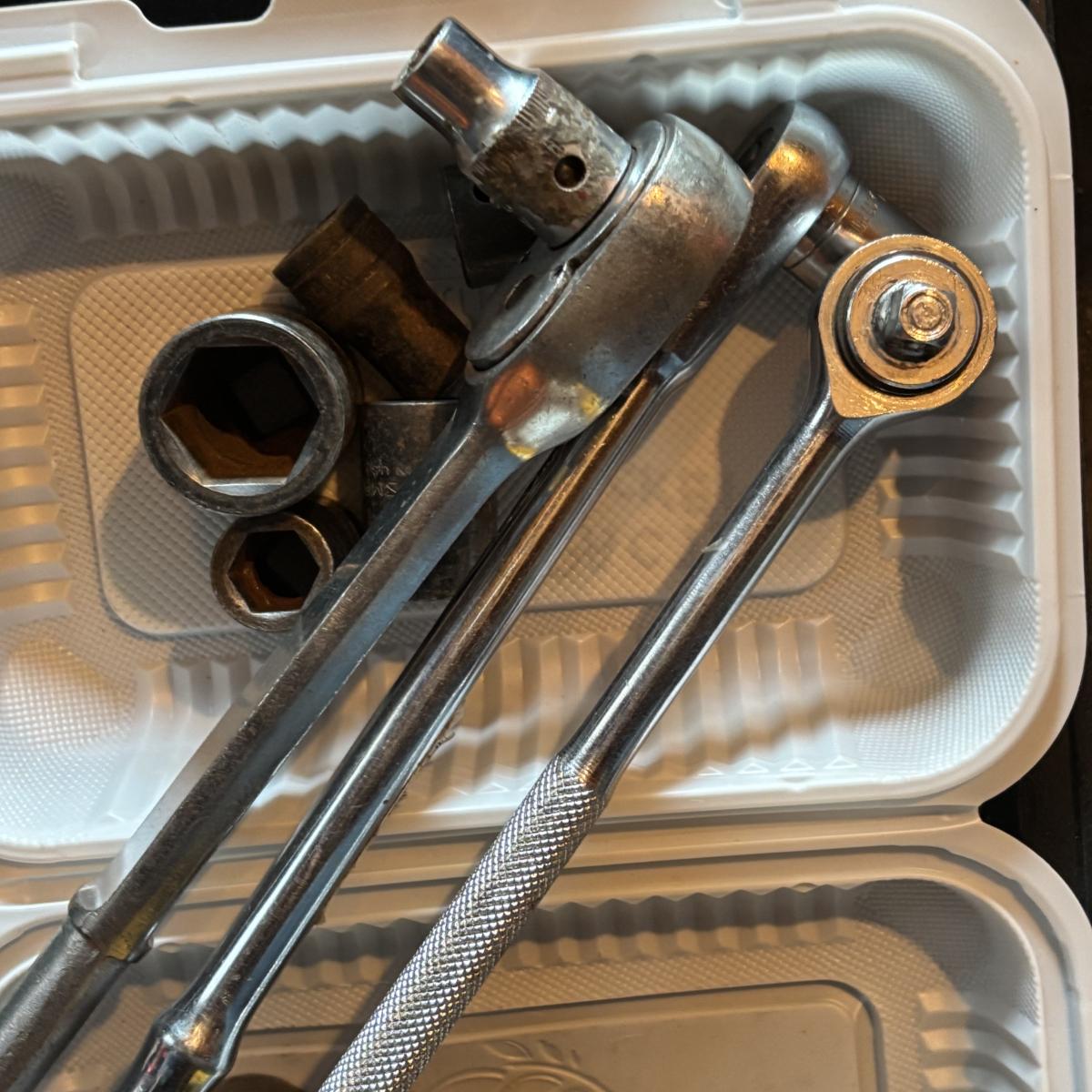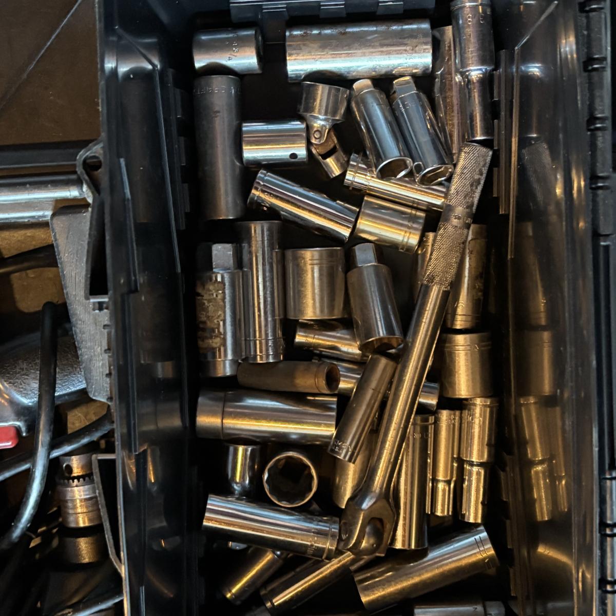 LOT 135: Garage Find Tools: Sockets, Rachets, Drill Bits, Impact Wrench (untested) & More