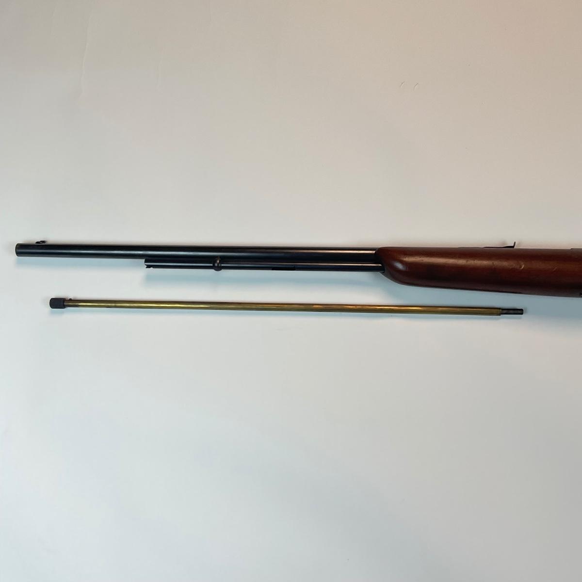 Offered is a vintage Remington Model 512 The Sportmaster rimfire rifle — a classic mid-century bolt-action .22 with the original tubular magazine and traditional one-piece hardwood stock. The stamped barrel code LTT dates the barrel to Feb. 1948, placing this piece squarely in Remington’s post-WWII production run. There is no serial number stamped on this rifle. The Model 512 was produced from the 1940s into the early 1960s and is prized by collectors and plinkers for its high-capacity tubular magazine, smooth bolt, and solid handling.