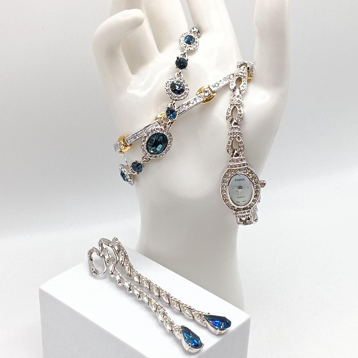 LOT 21: Givenchy Blue Crystal Stone Bracelet, Pedre Crystal Bracelet Watch, Vintage Costume Earrings & More
