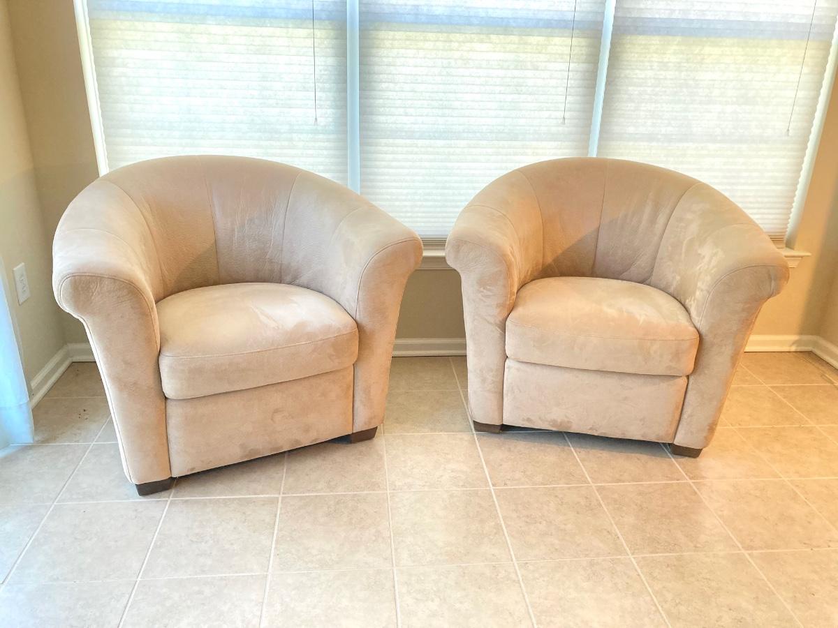 LOT 33: Pair of Upholstered Italsofa Barrel Chairs