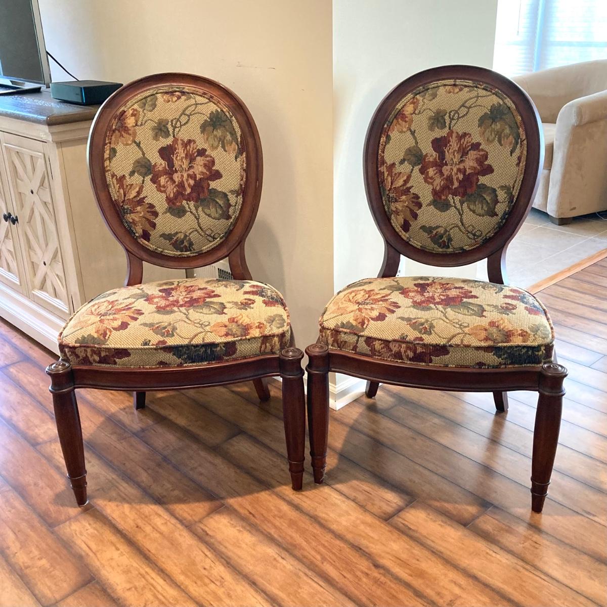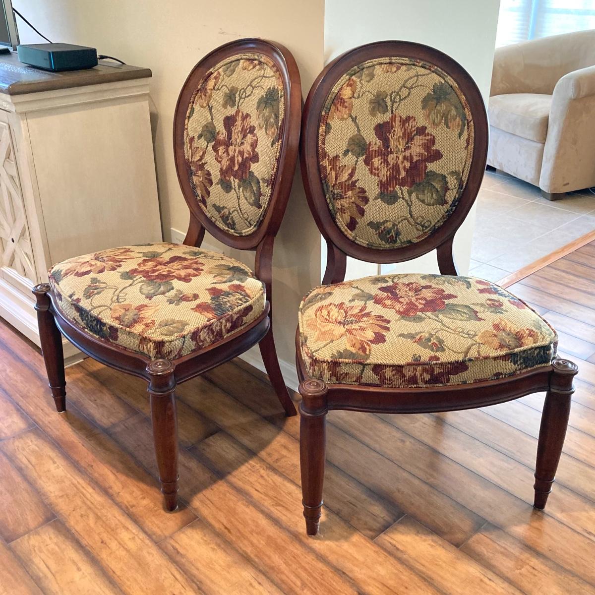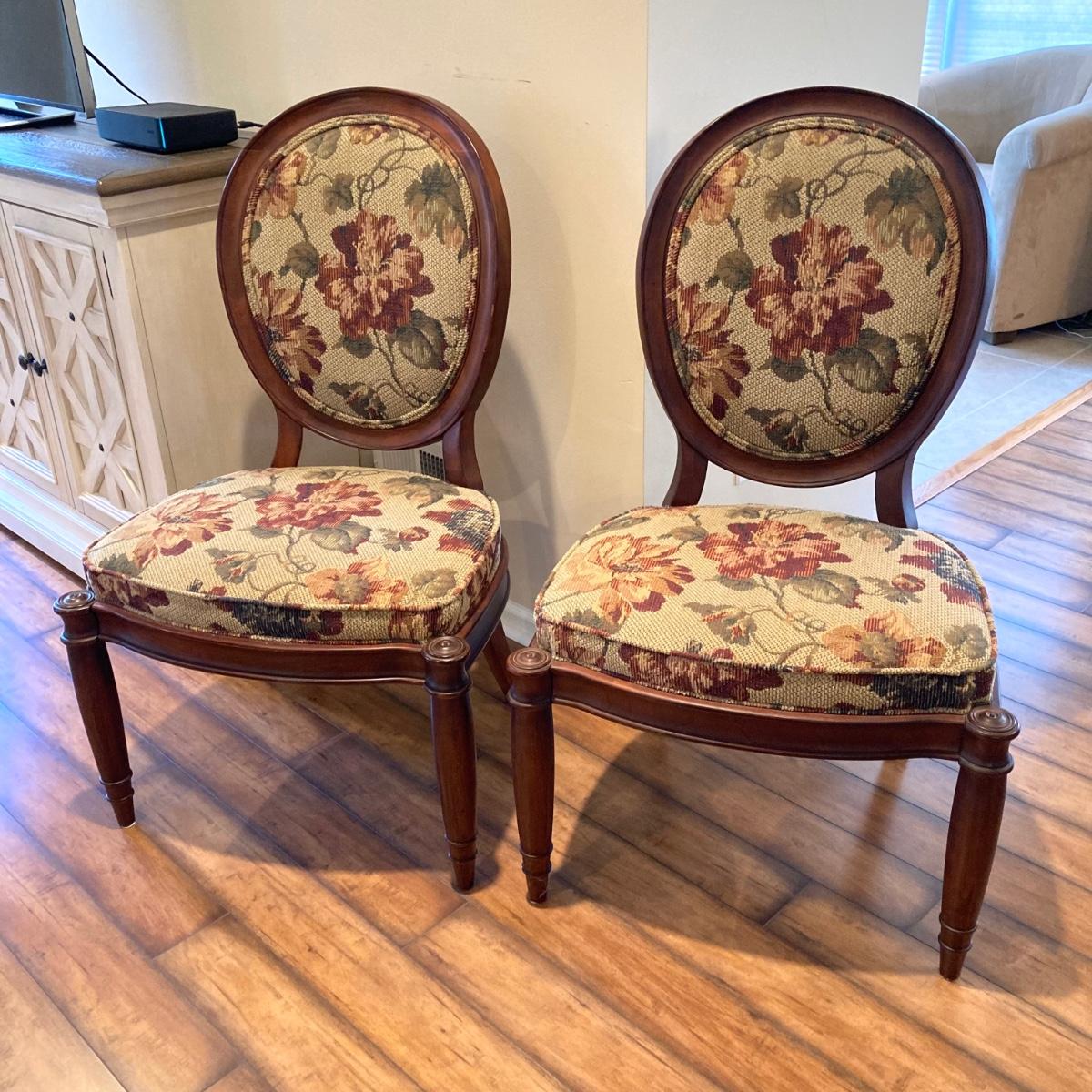 LOT 36: Pair of Vintage Louis XVI Floral Upholstered Chairs