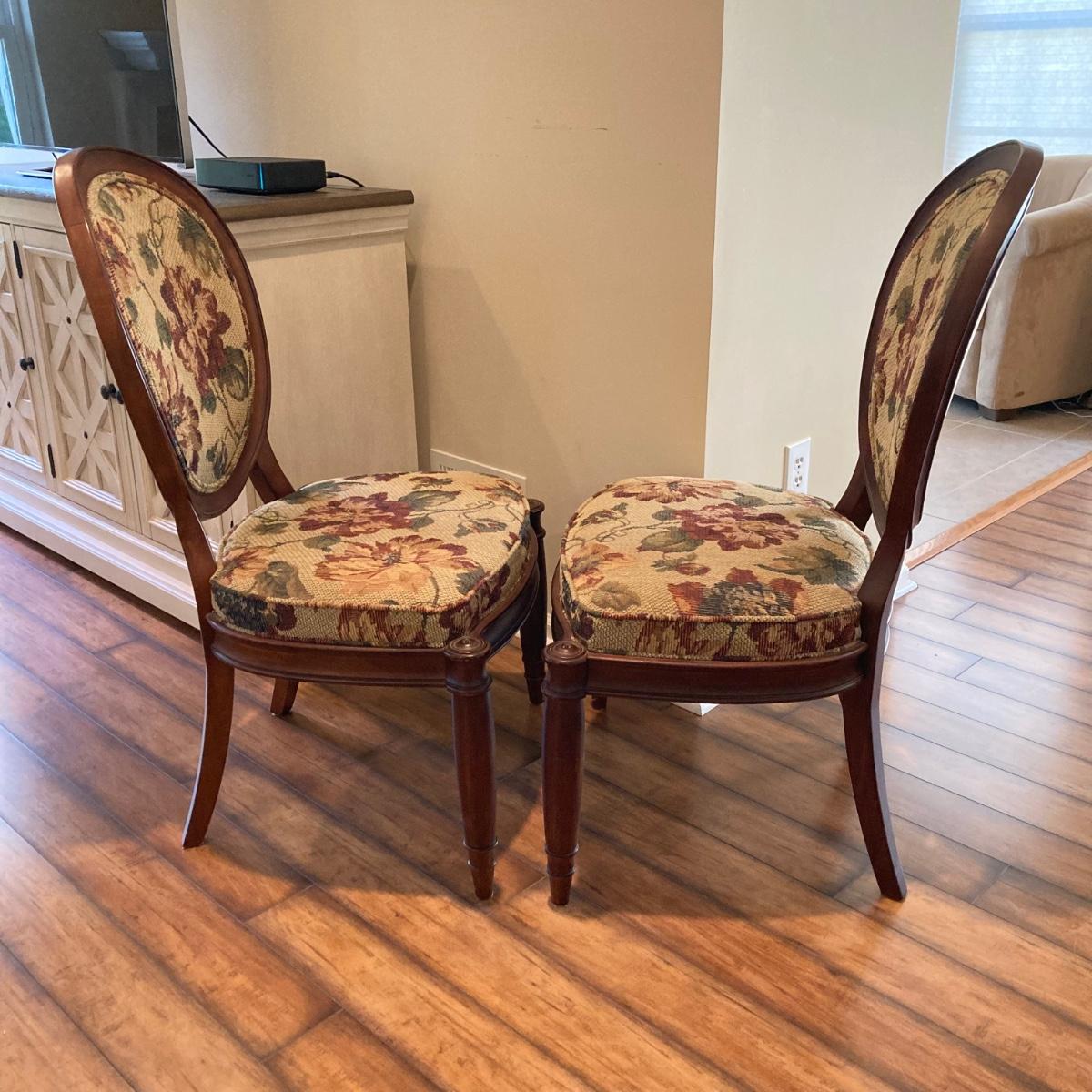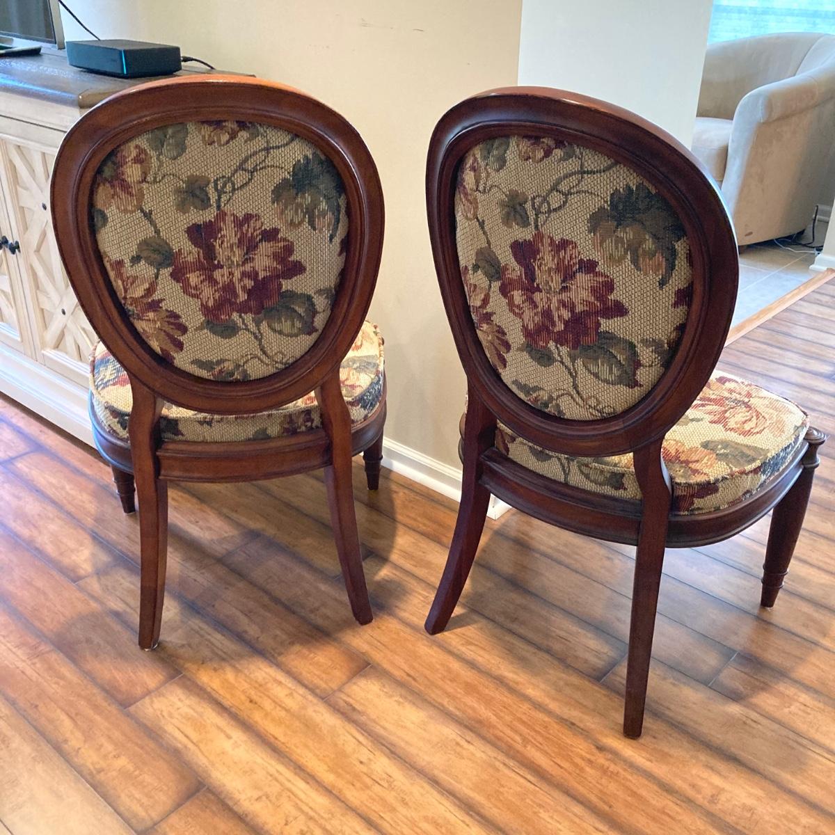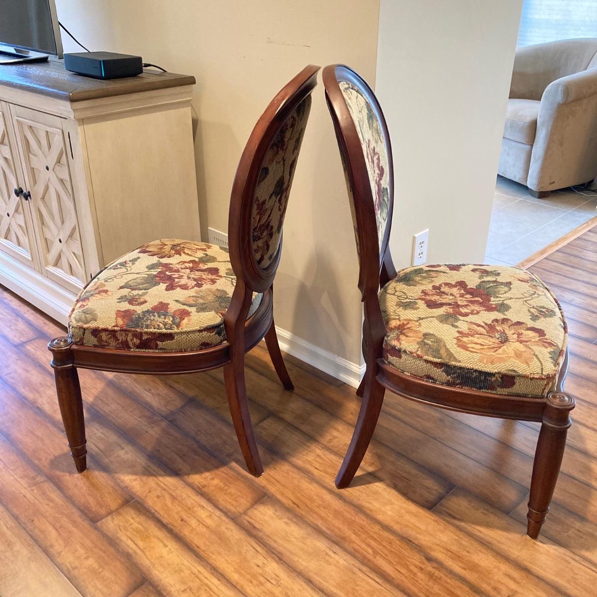 LOT 36: Pair of Vintage Louis XVI Floral Upholstered Chairs