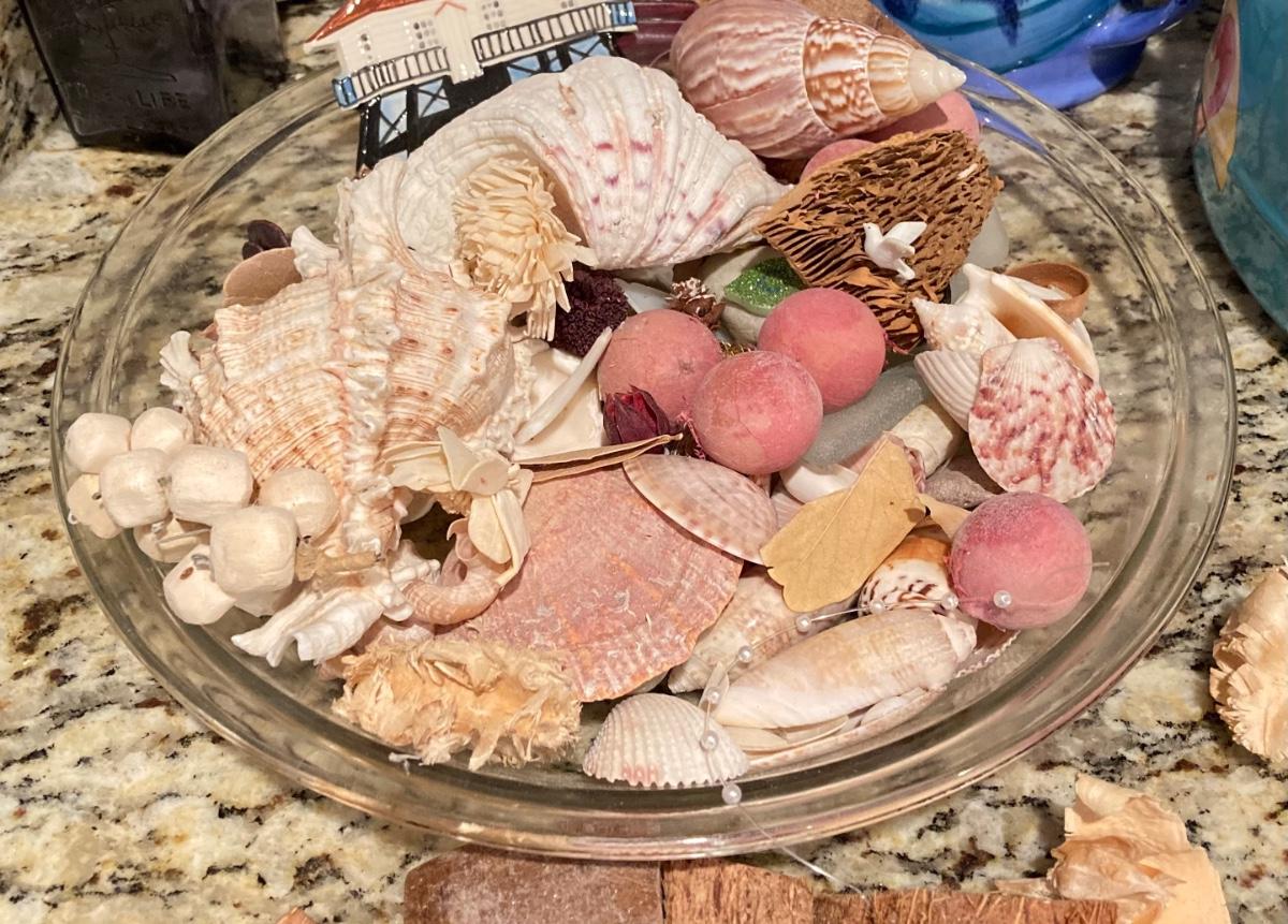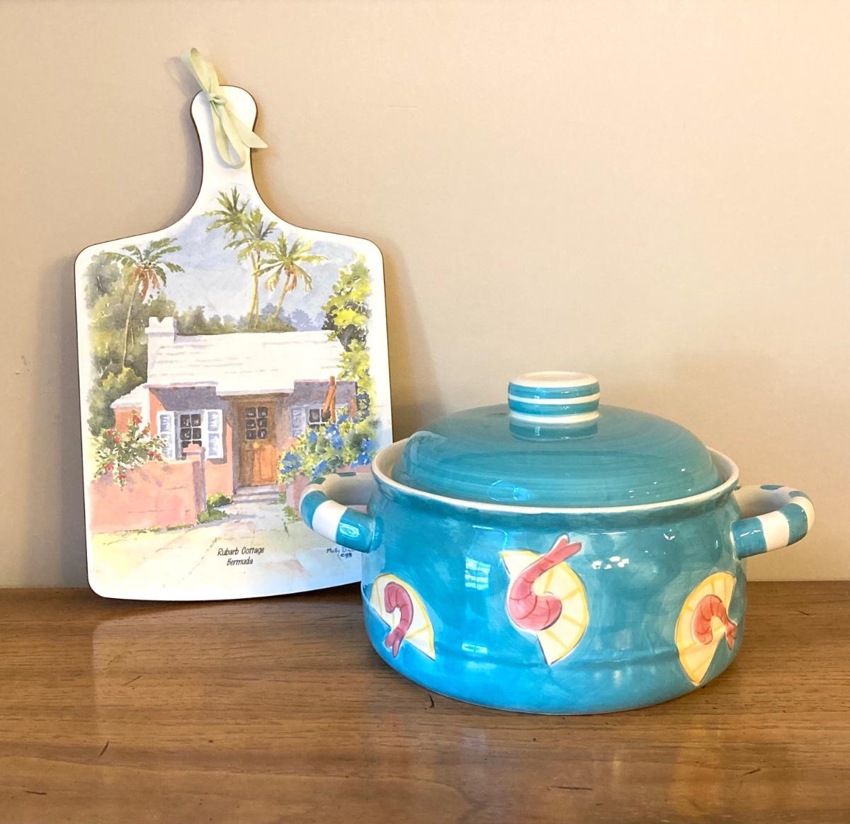 LOT 44: Nautical Collection - Signed and Framed Artwork, Made for Magnolia by Emily West Shrimp Casserole Dish, Bermuda Cutting Board, Shells and More