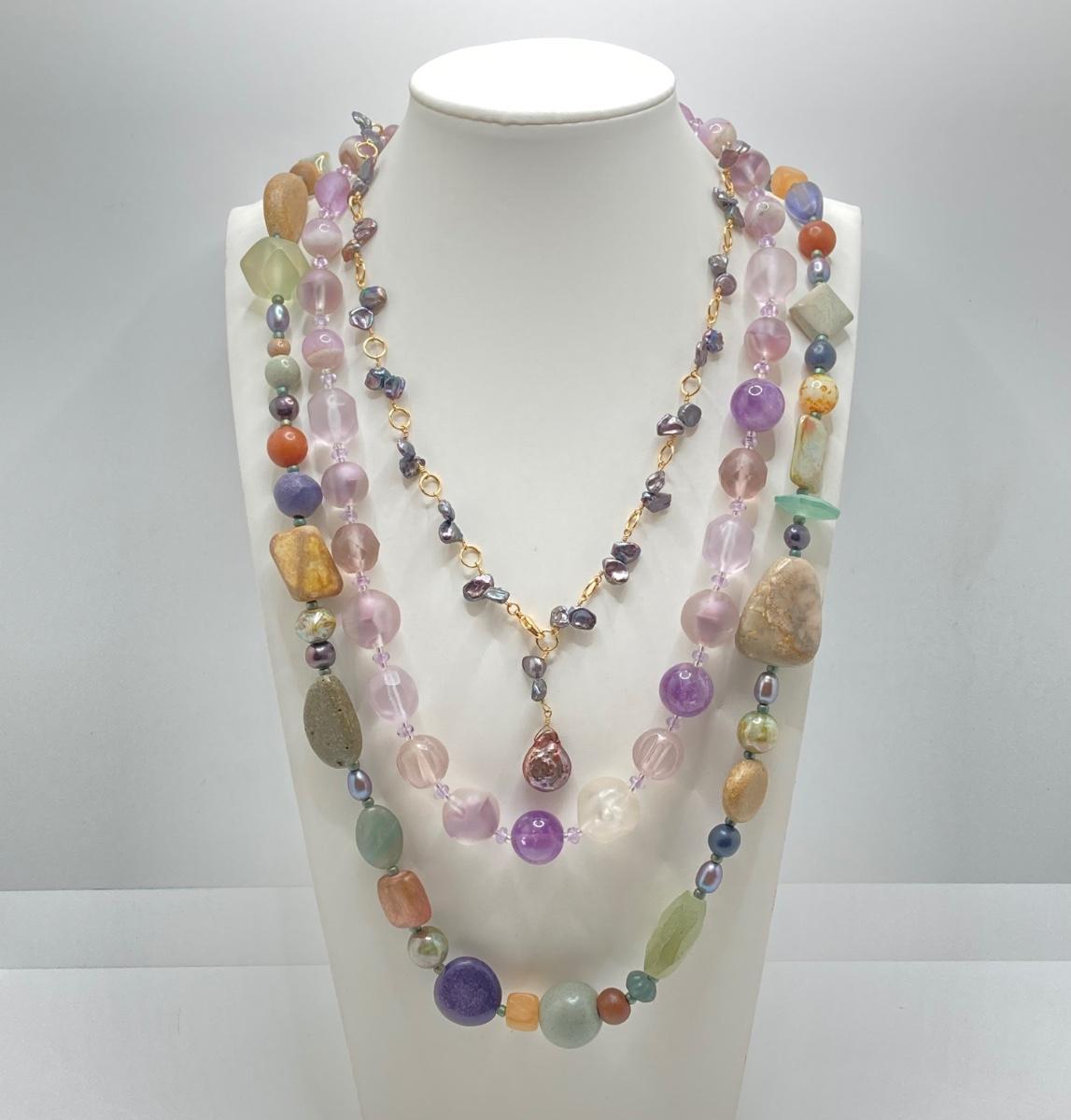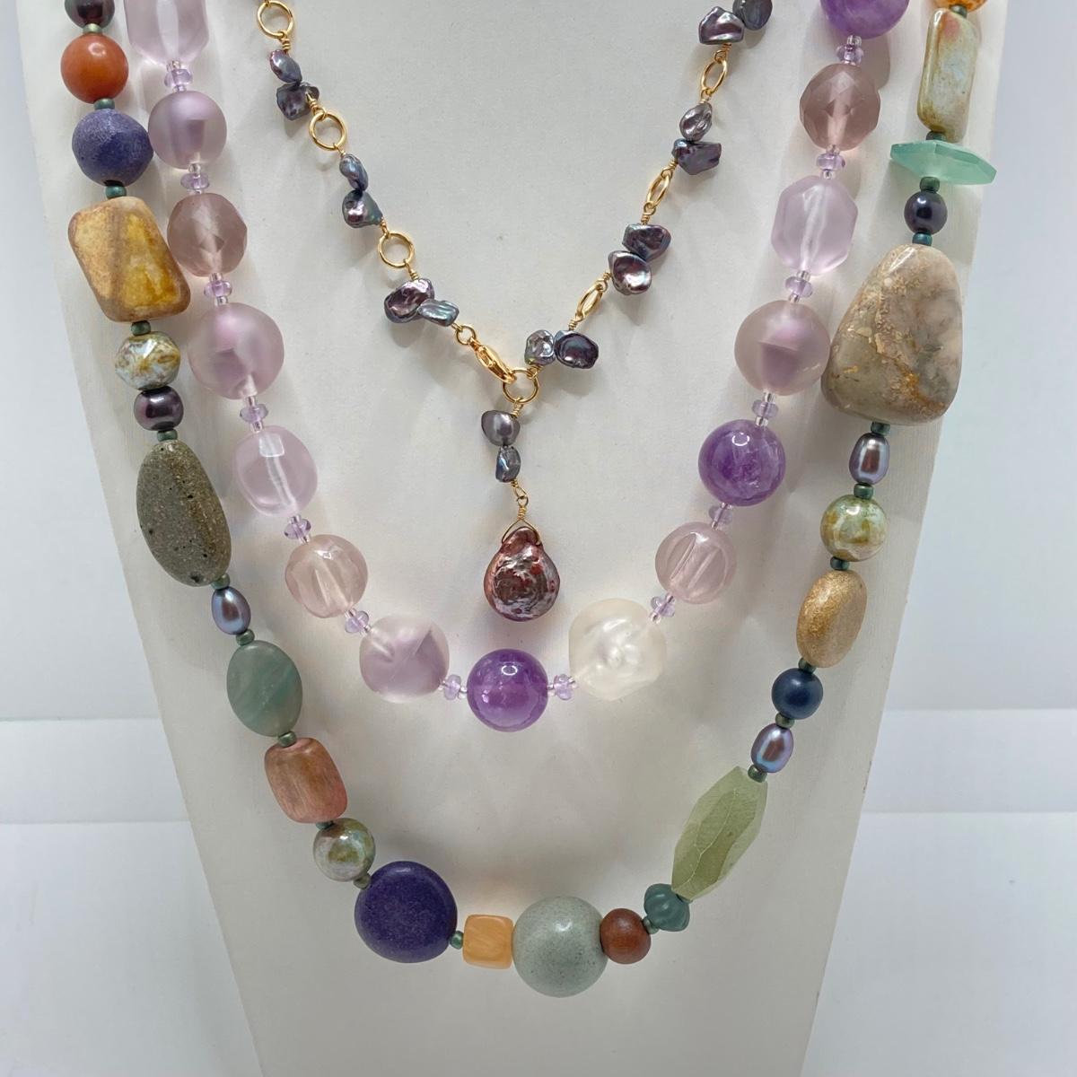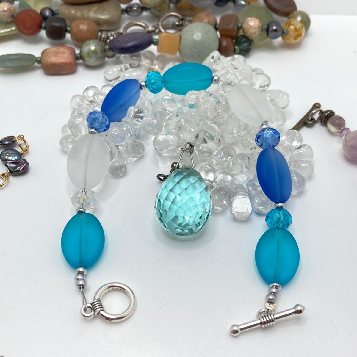 LOT 47: Collection of Glass, Stone and Abalone Shell Jewelry