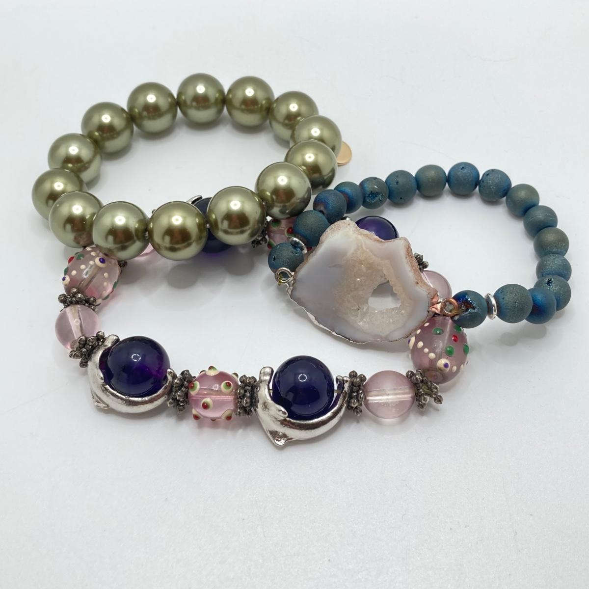 LOT 50: Bracelets and More - Dazzling Stretch and Cuff with Geode Style