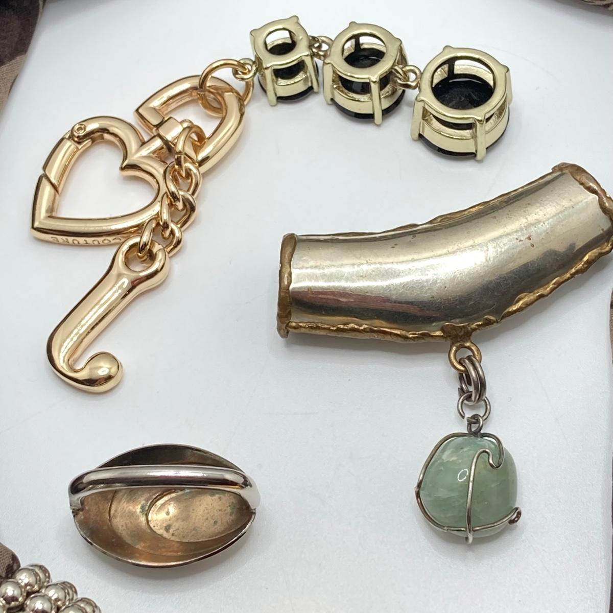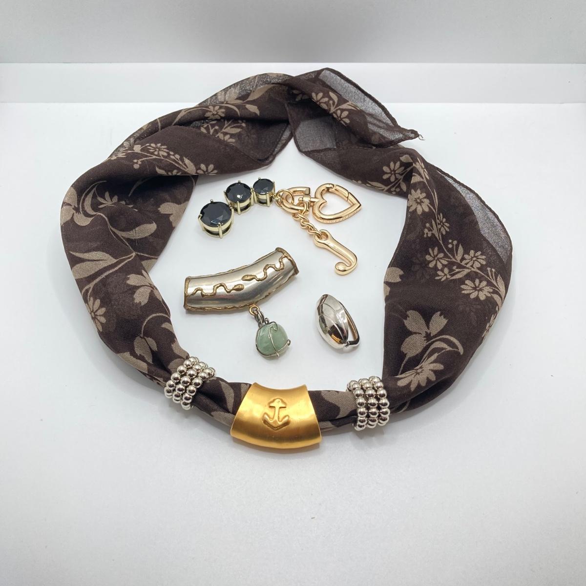 LOT 66: Powell Spinning Double Sided Jewelry Box with Scarf, Scarf Rings and Juicy Couture Key Chain