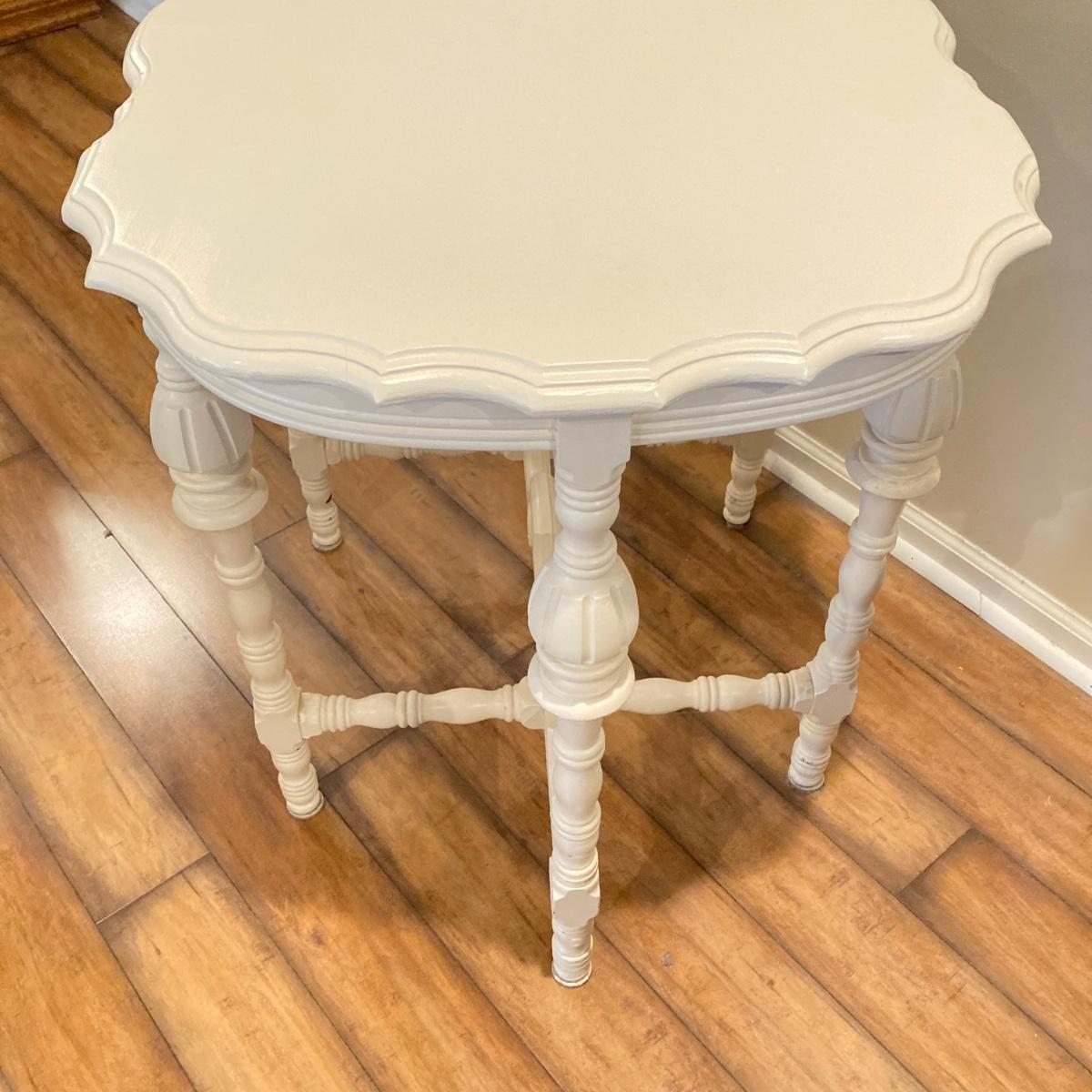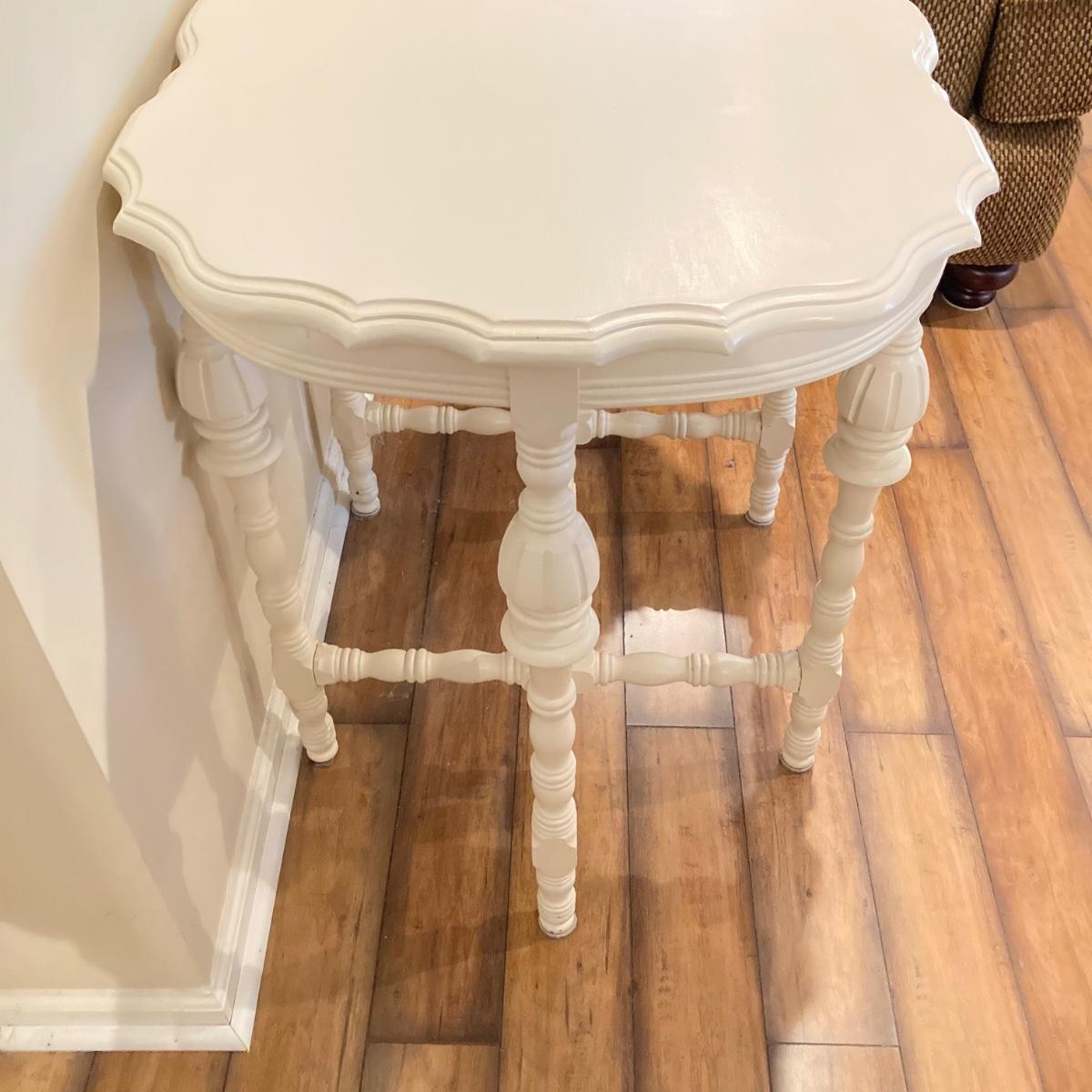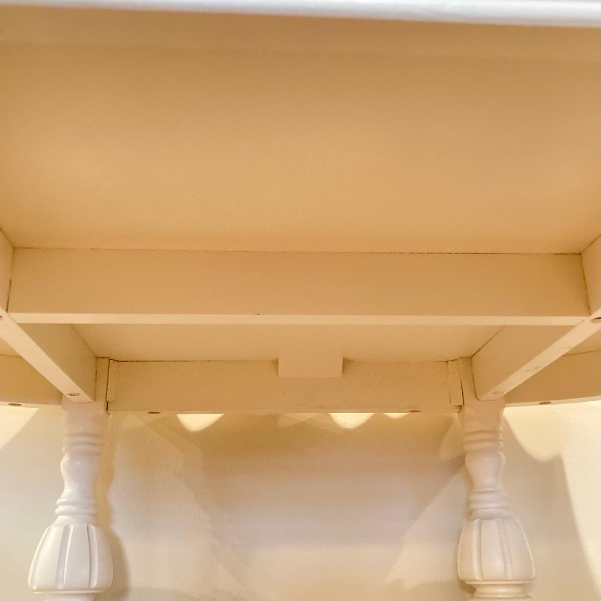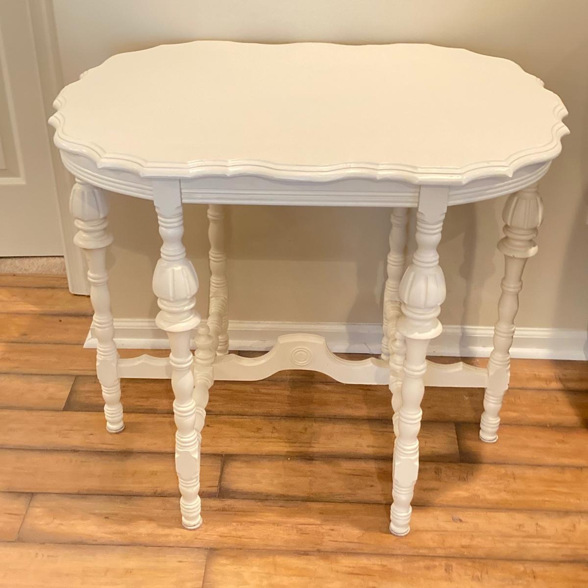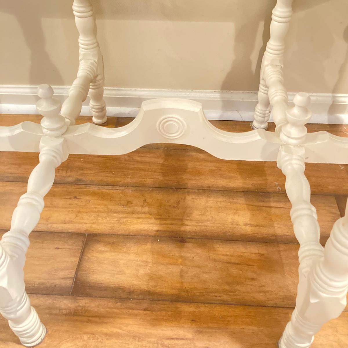 LOT 78: Classic Blue and White Delft Style Table Lamp with Painted White Wooden Table