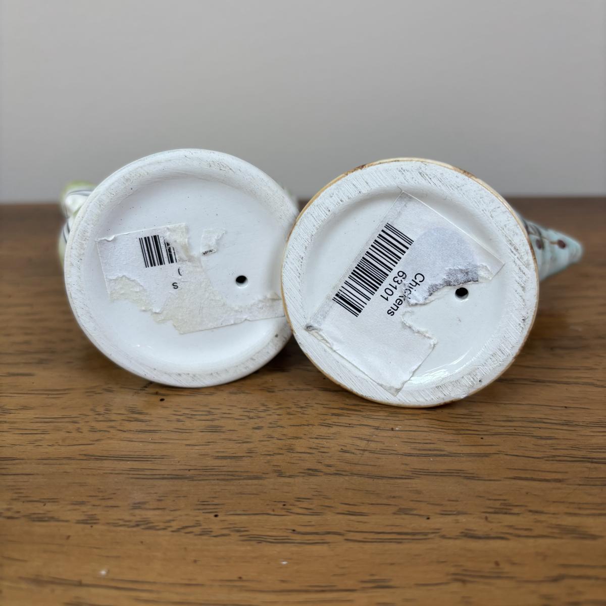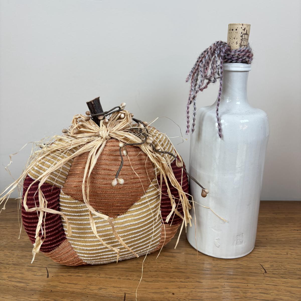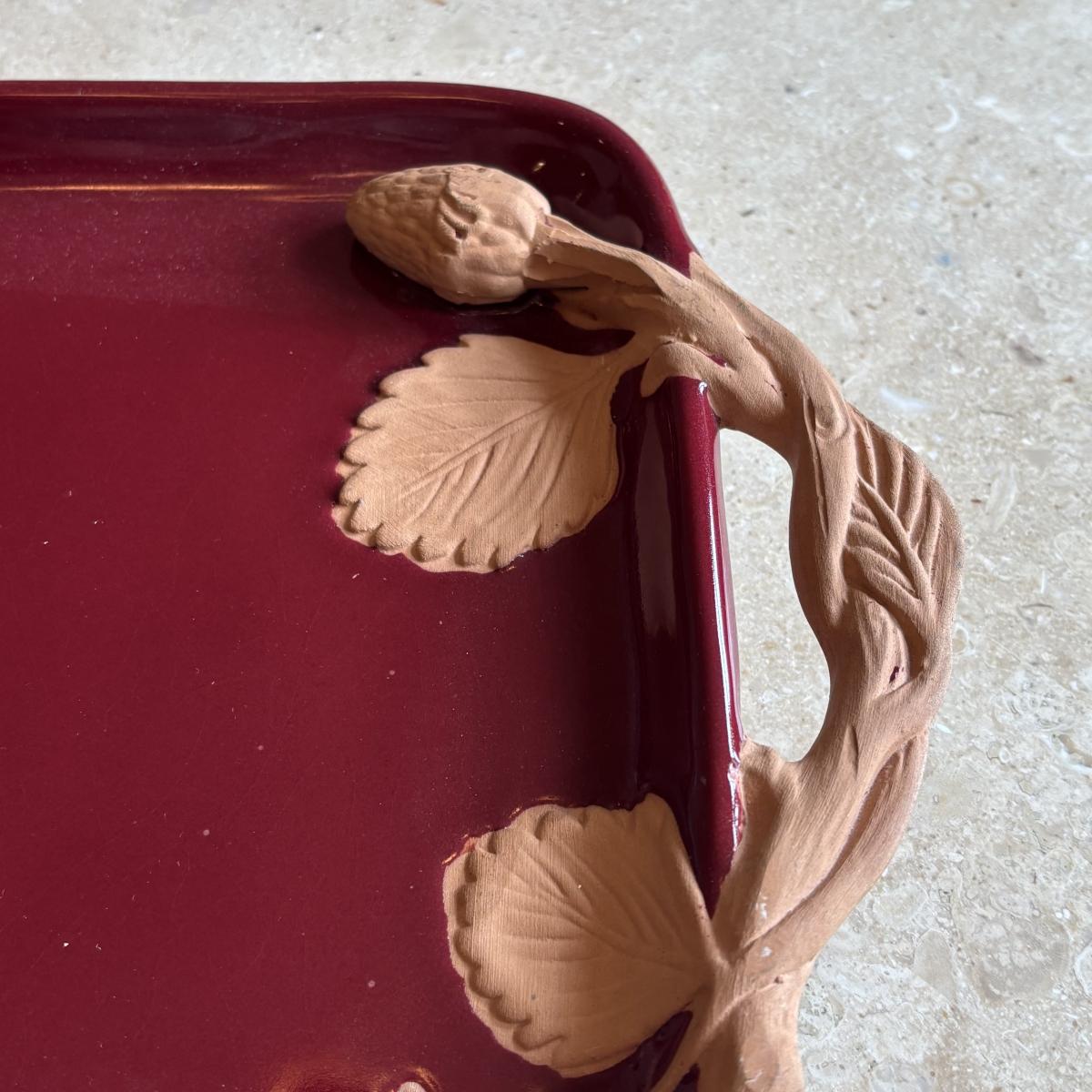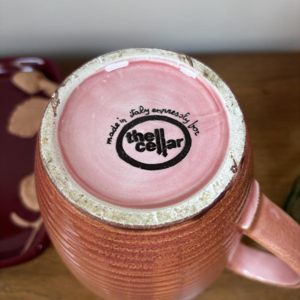 LOT 83: Kitchen Decor & More: Tracy Porter Chicken Figures, Green Drip Glaze Mugs, MKM Pottery Bottle, Stoneware Pitcher, Reddish/Brown Serving Platter w/Terra Cotta Handles