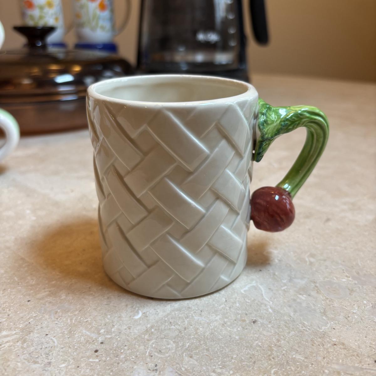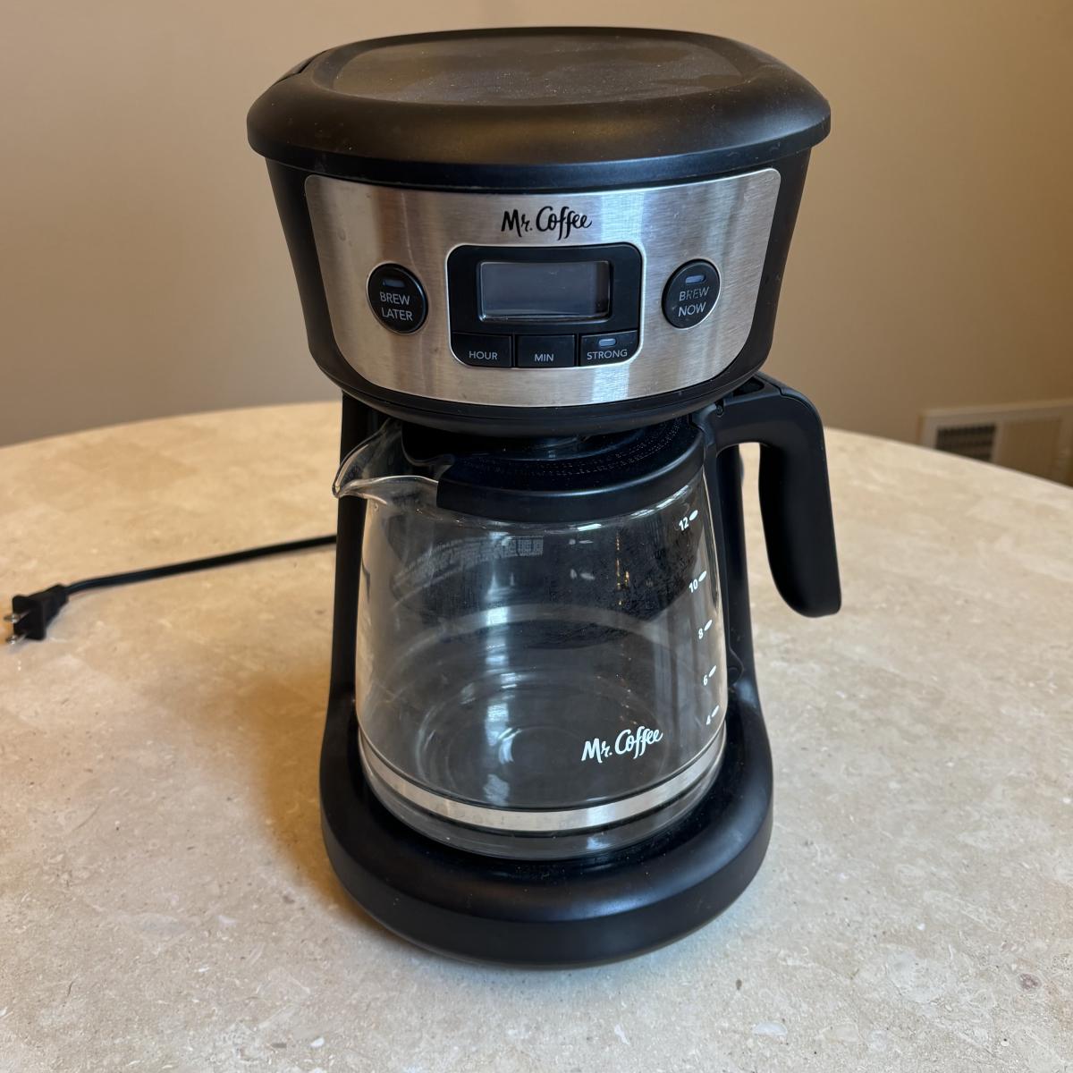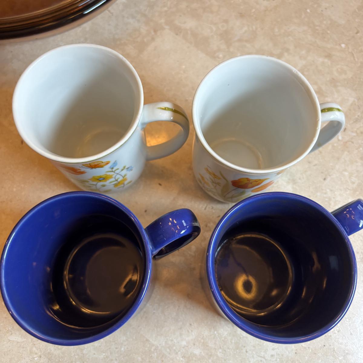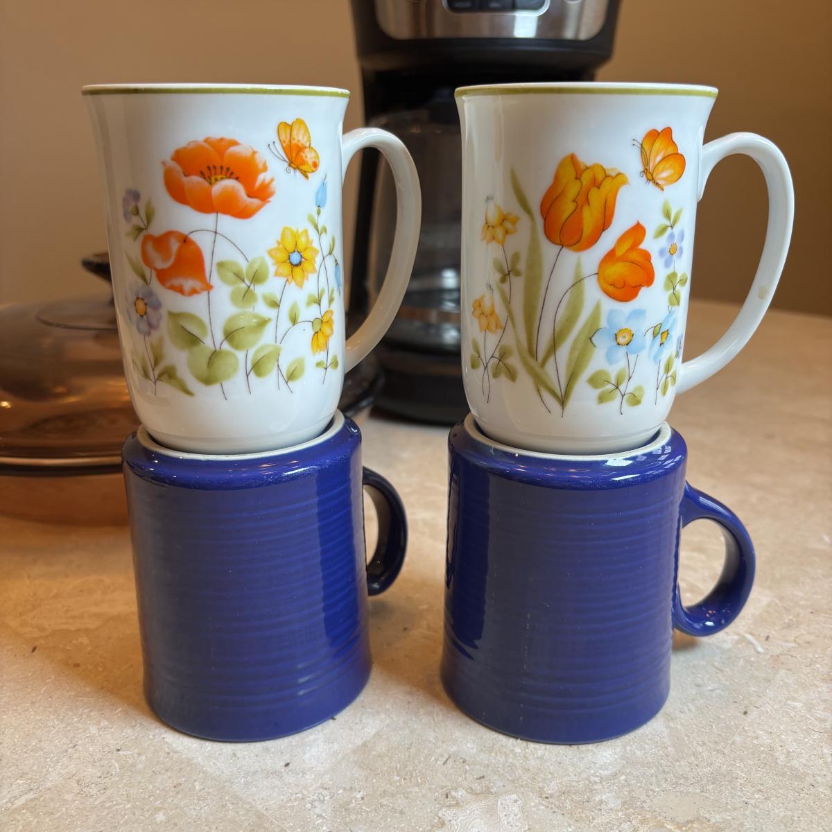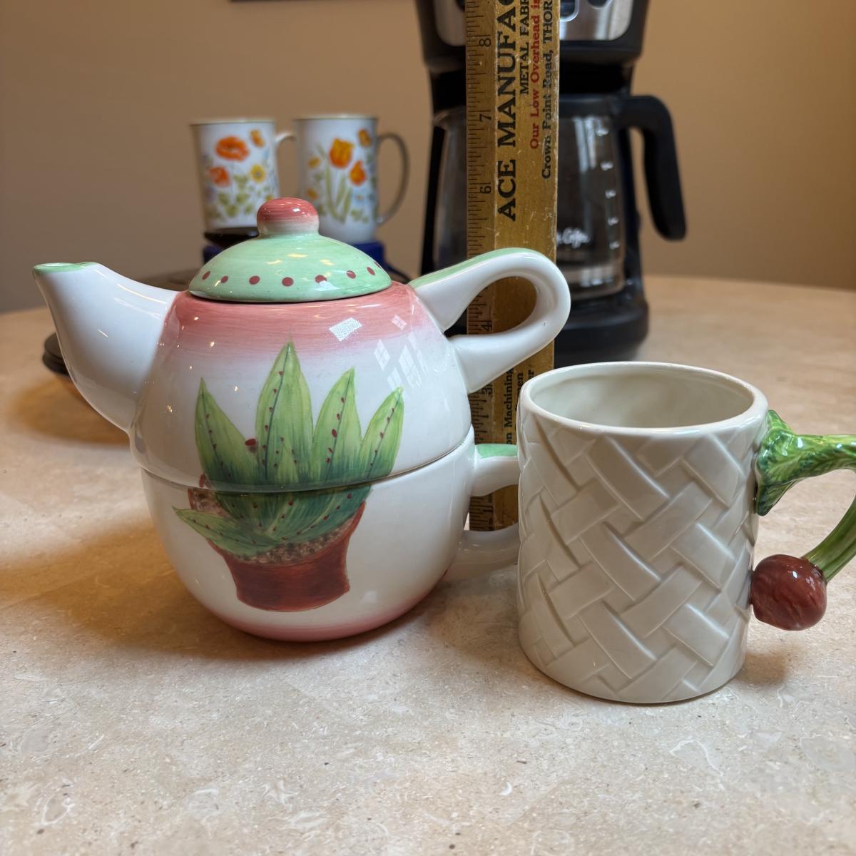 LOT 92: Corning Ware Visions Fry Pan w/Lid, Mr. Coffee, Mikasa Teapot & Cup Set, and Coffee Mugs