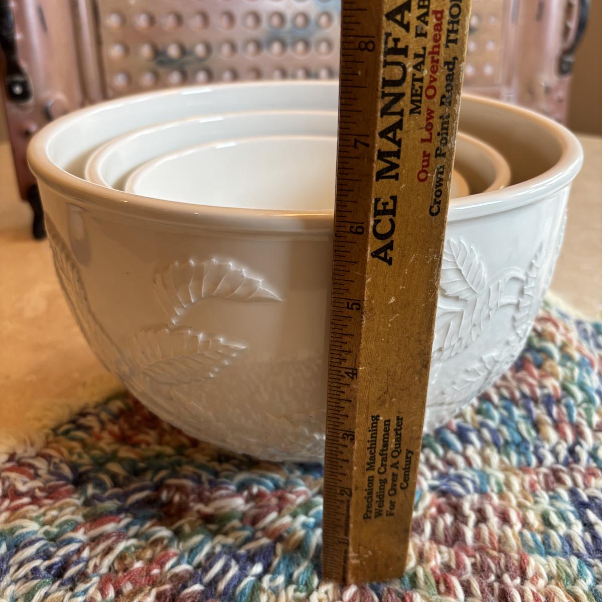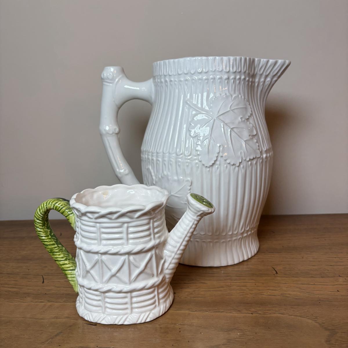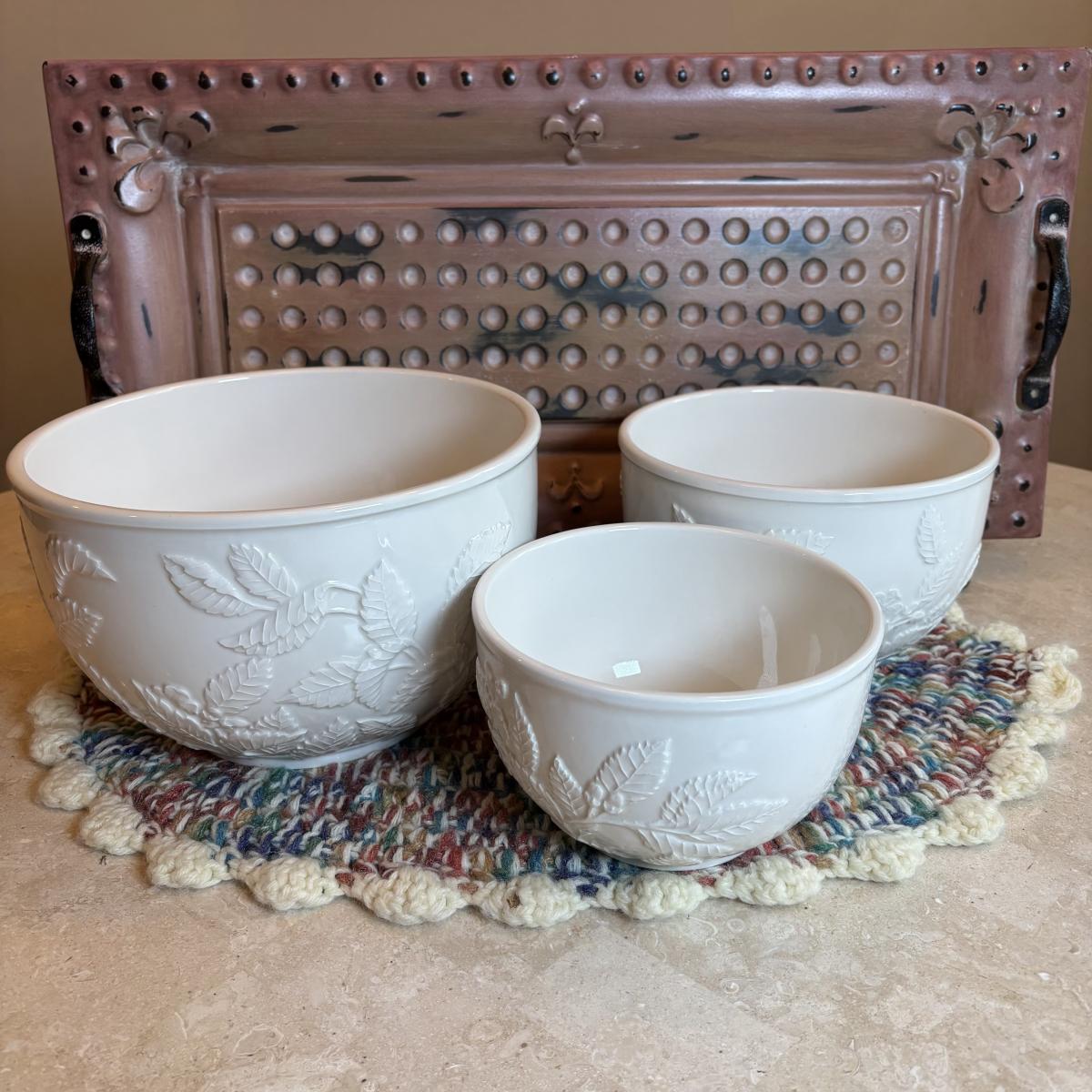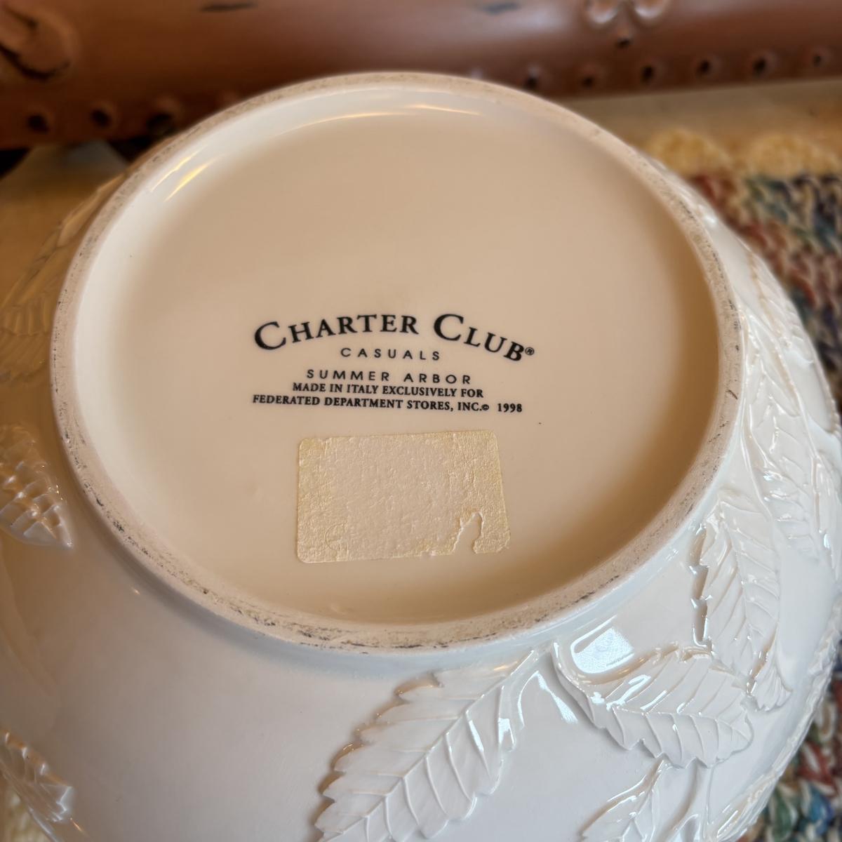 LOT 93: Charter Club Nesting Bowls, Metal Serving Tray, White Ceramic, Water Pitcher & Watering Can Vase