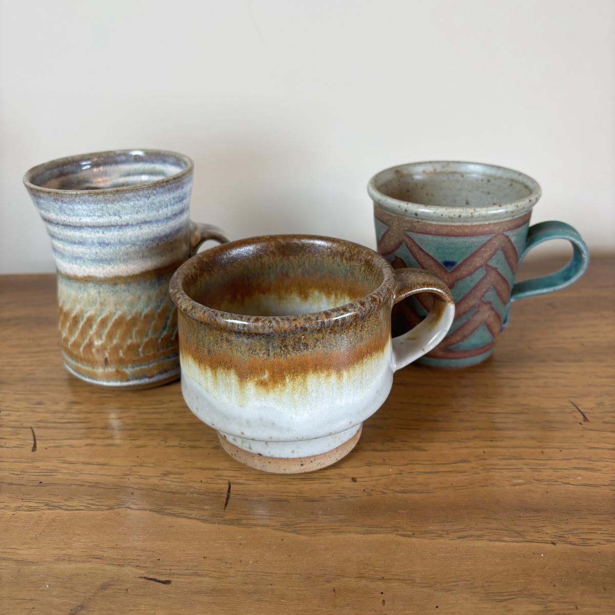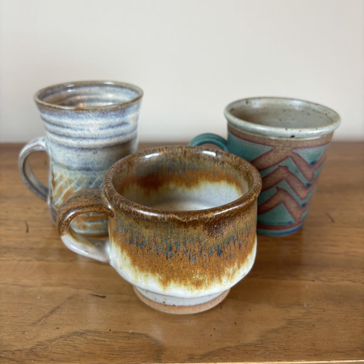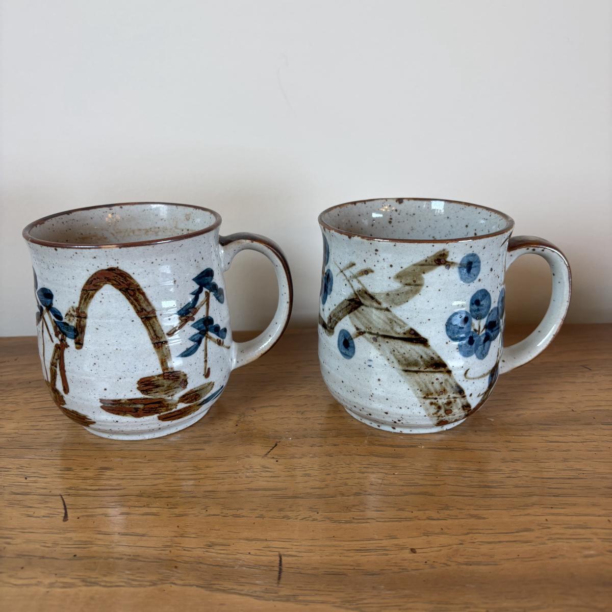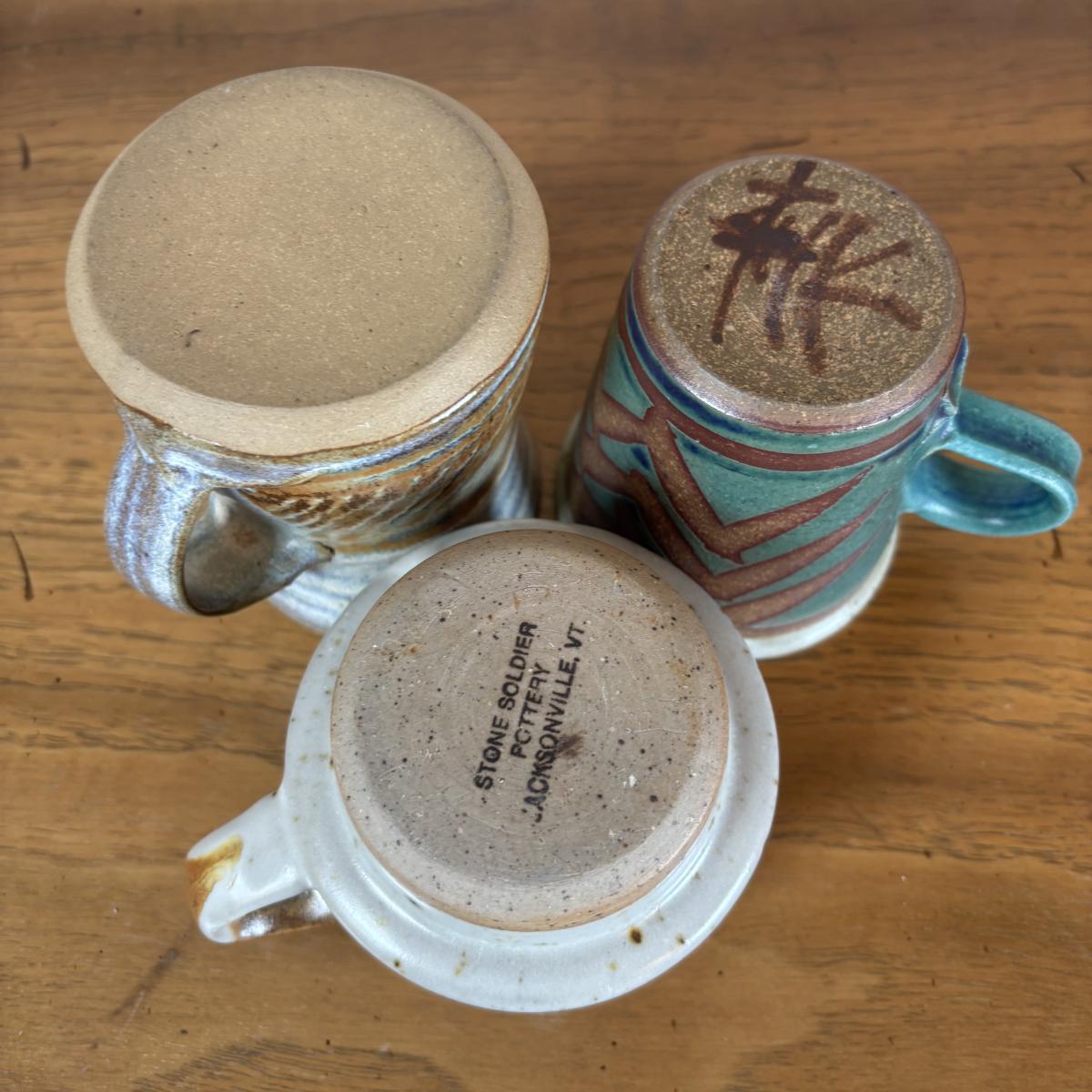 LOT 96: Pottery Collection: Blue Glaze Vase, Brown/Tan Speckled Pitcher, Square Plates & Mugs