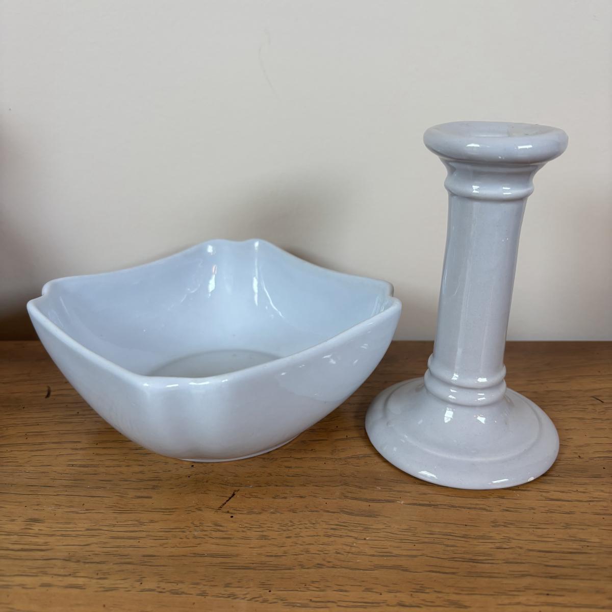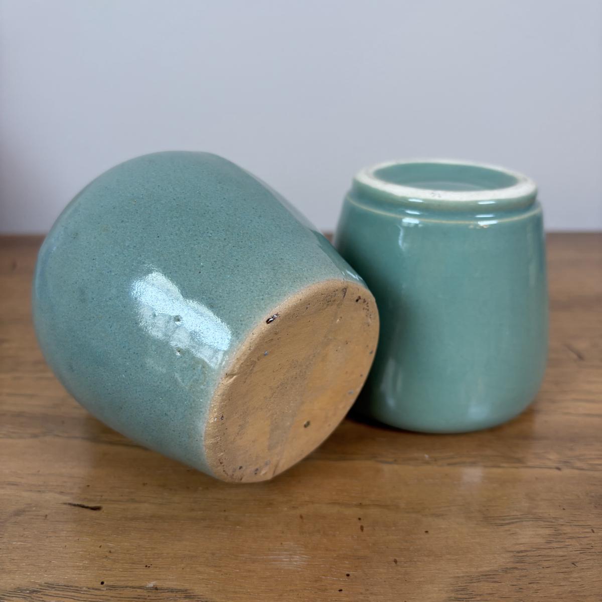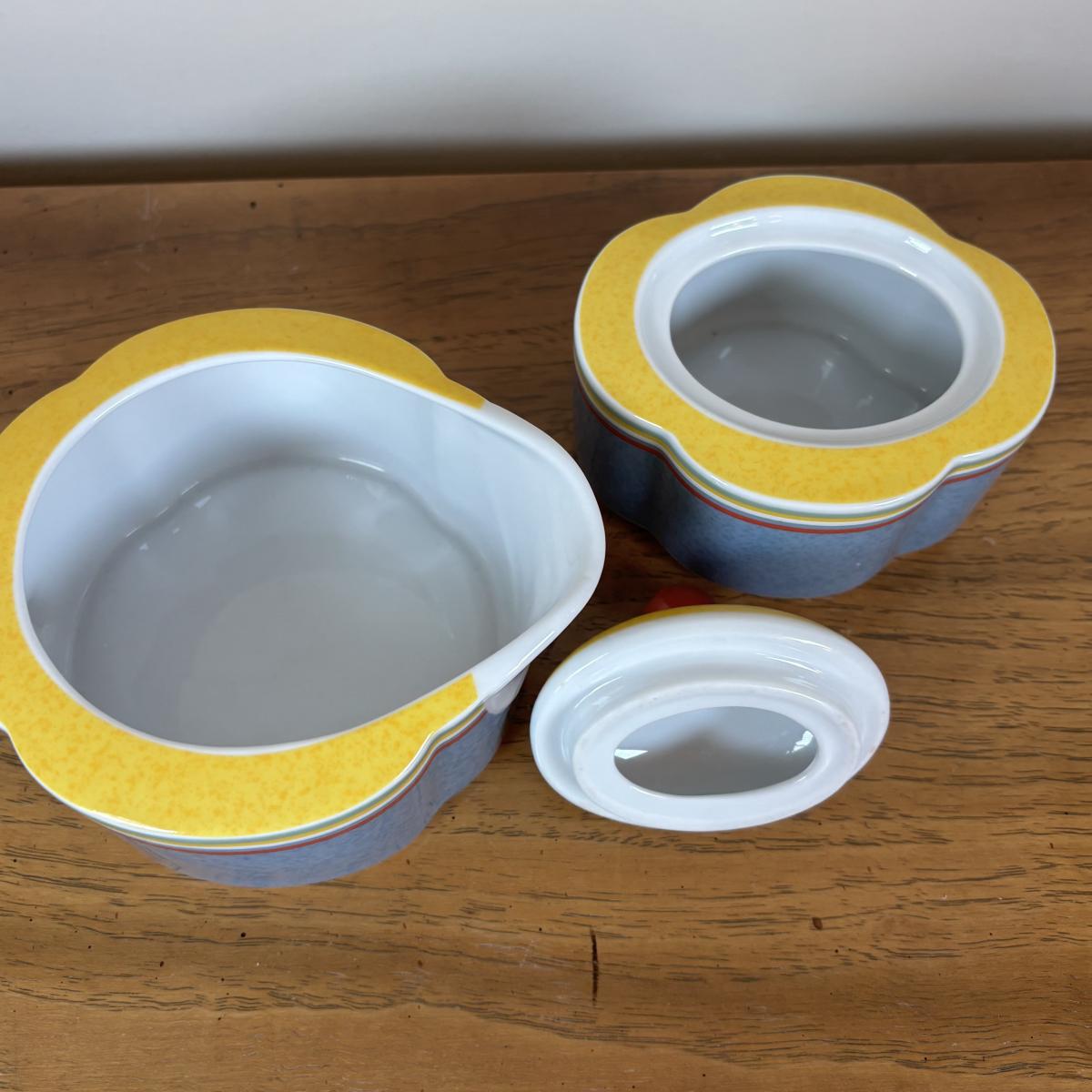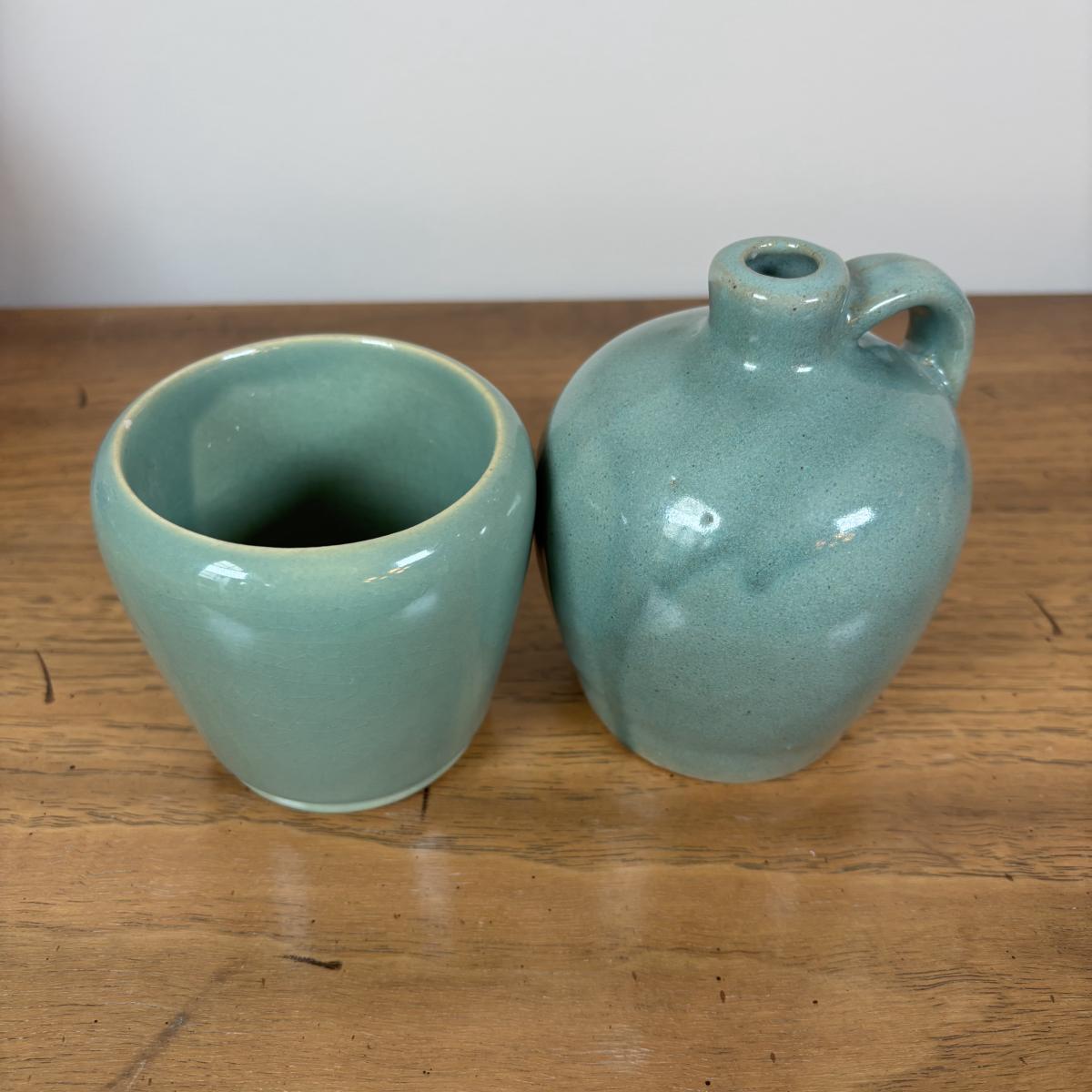 LOT 98: Delft Blue Dutch Boy & Toothpick Holder, OGGI Mini Yellow Canister, Villeroy & Boch Switch 1 (Ava, Caru, & Beala) Creamer & Sugar Bowl, Made in USA Green Vase & More