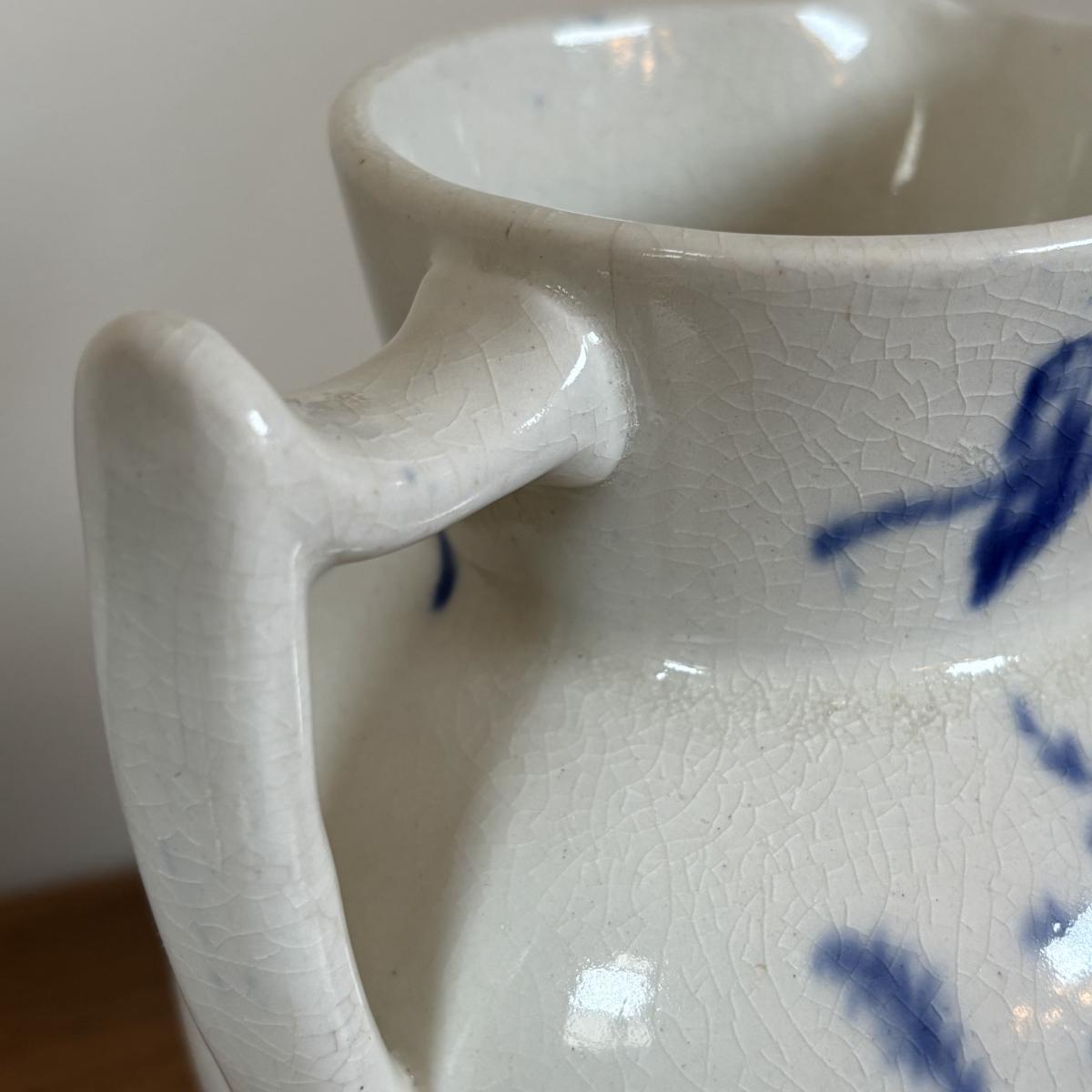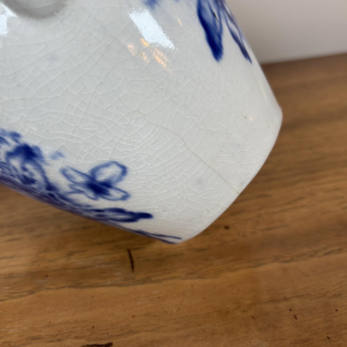 Blue & White vase has grazing and is cracked as shown in the pictures