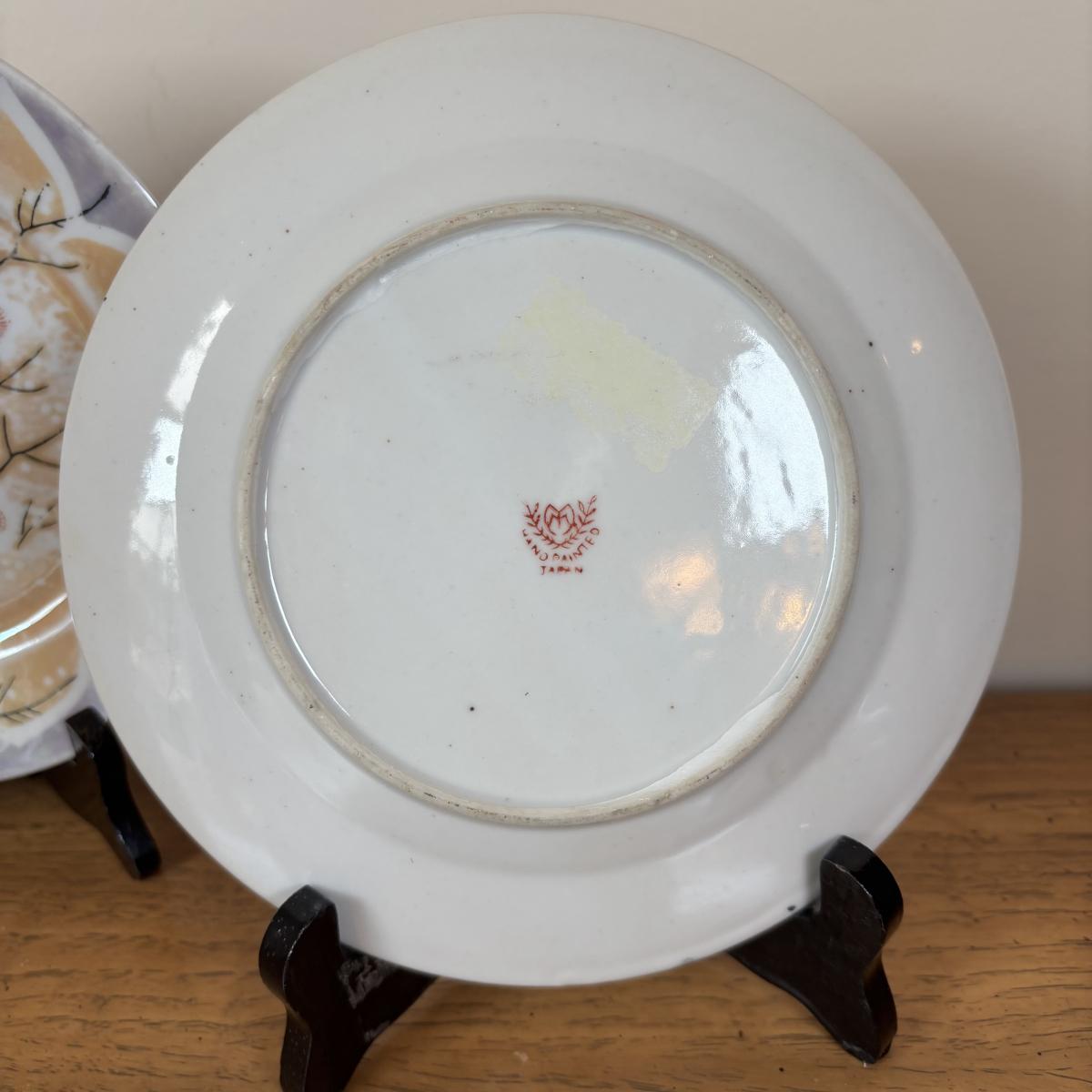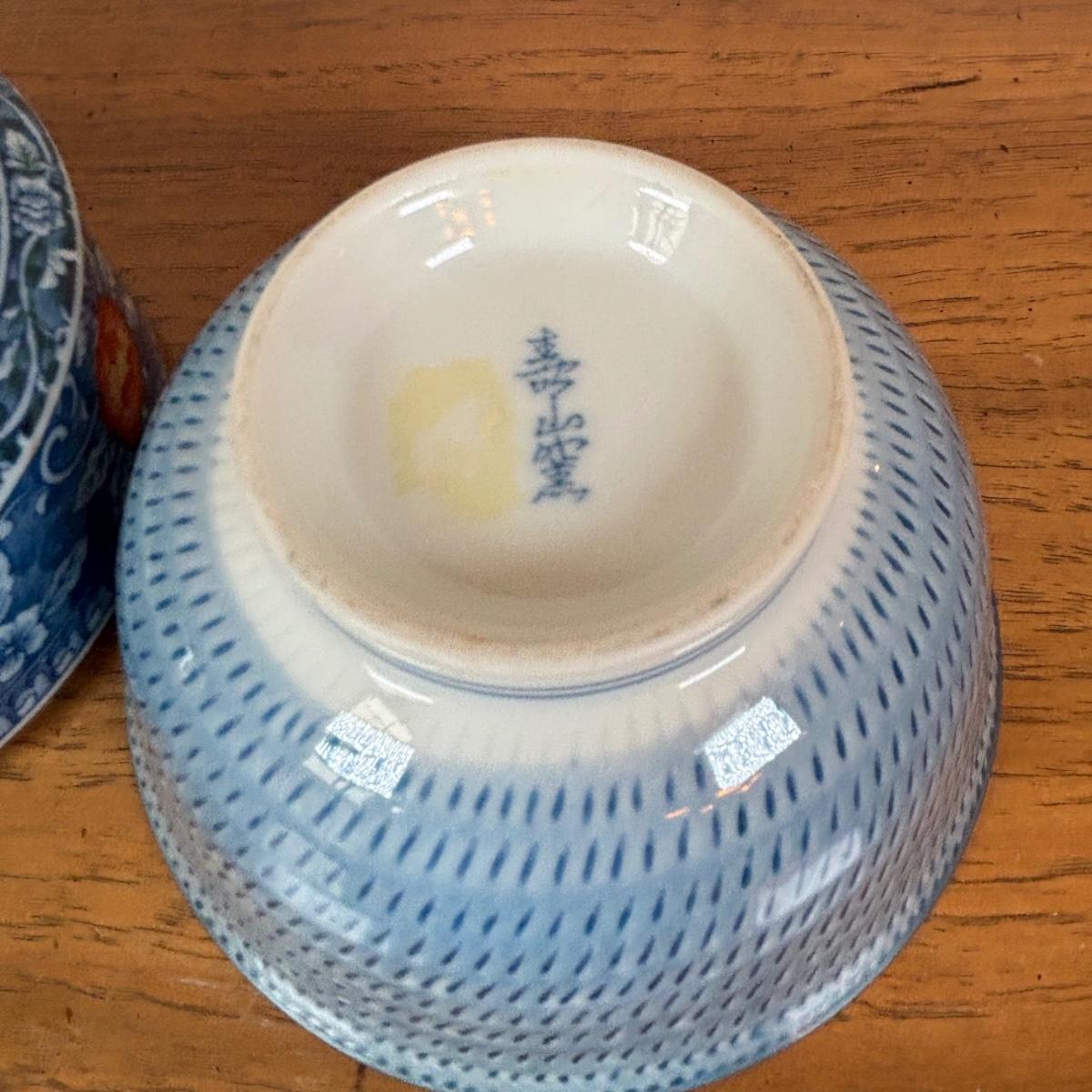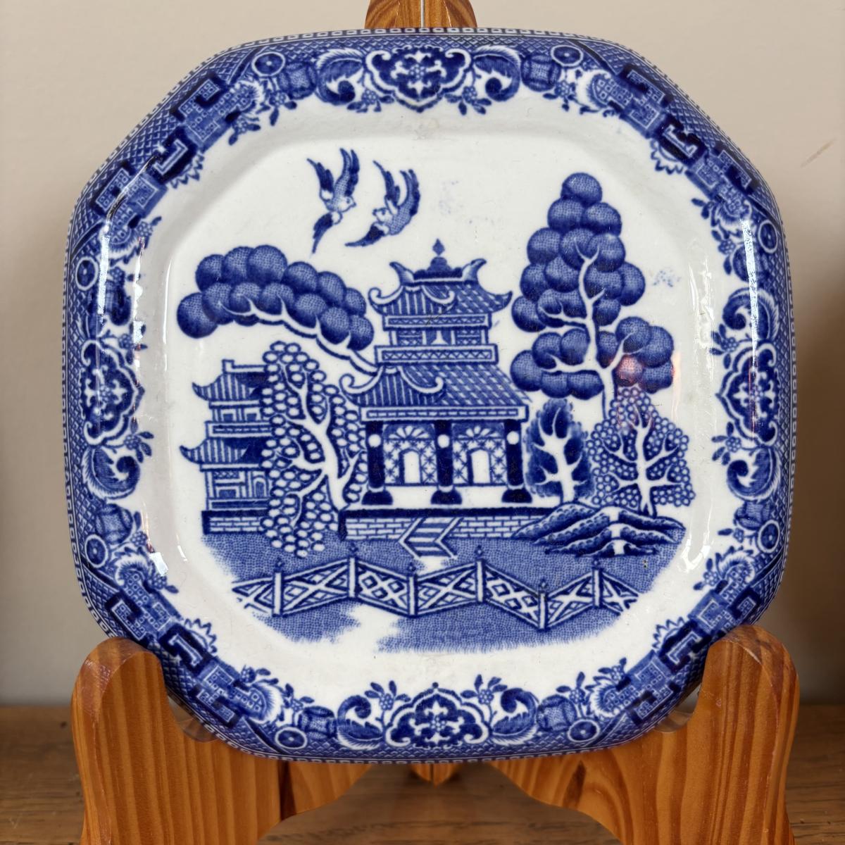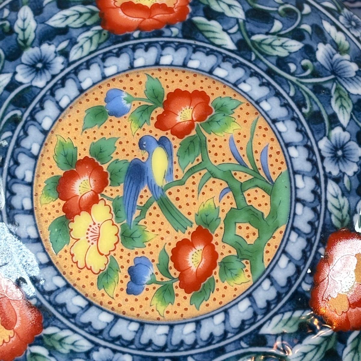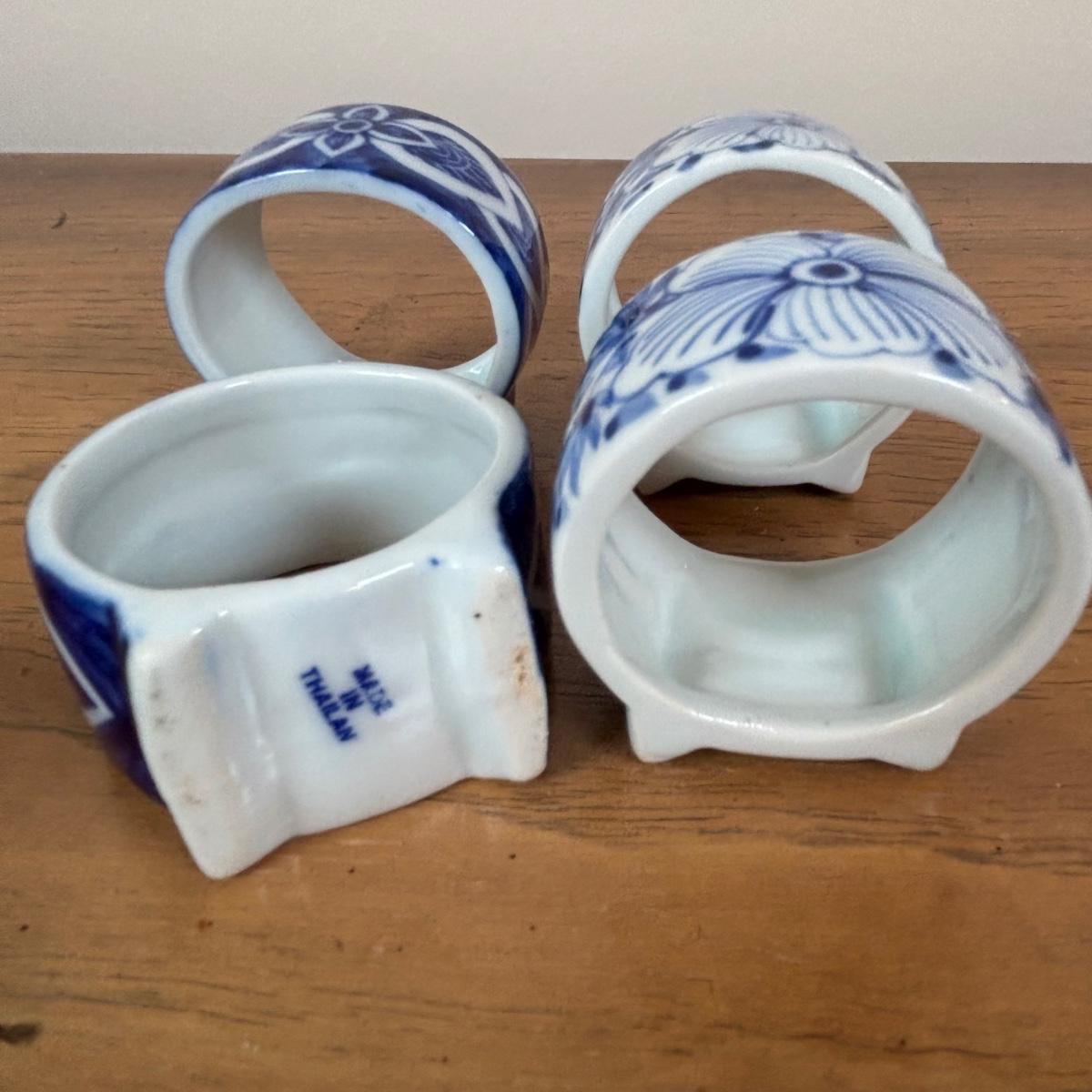 LOT 100: Vintage Old Willow Plate, England, 2-Hand Painted Lusterware Plates, Toyo Hand Painted Dresser Box &Bowl, Porcelain Trinket Boxes, Blue & White Porcelain Napkin Rings and a Vandor Mug
