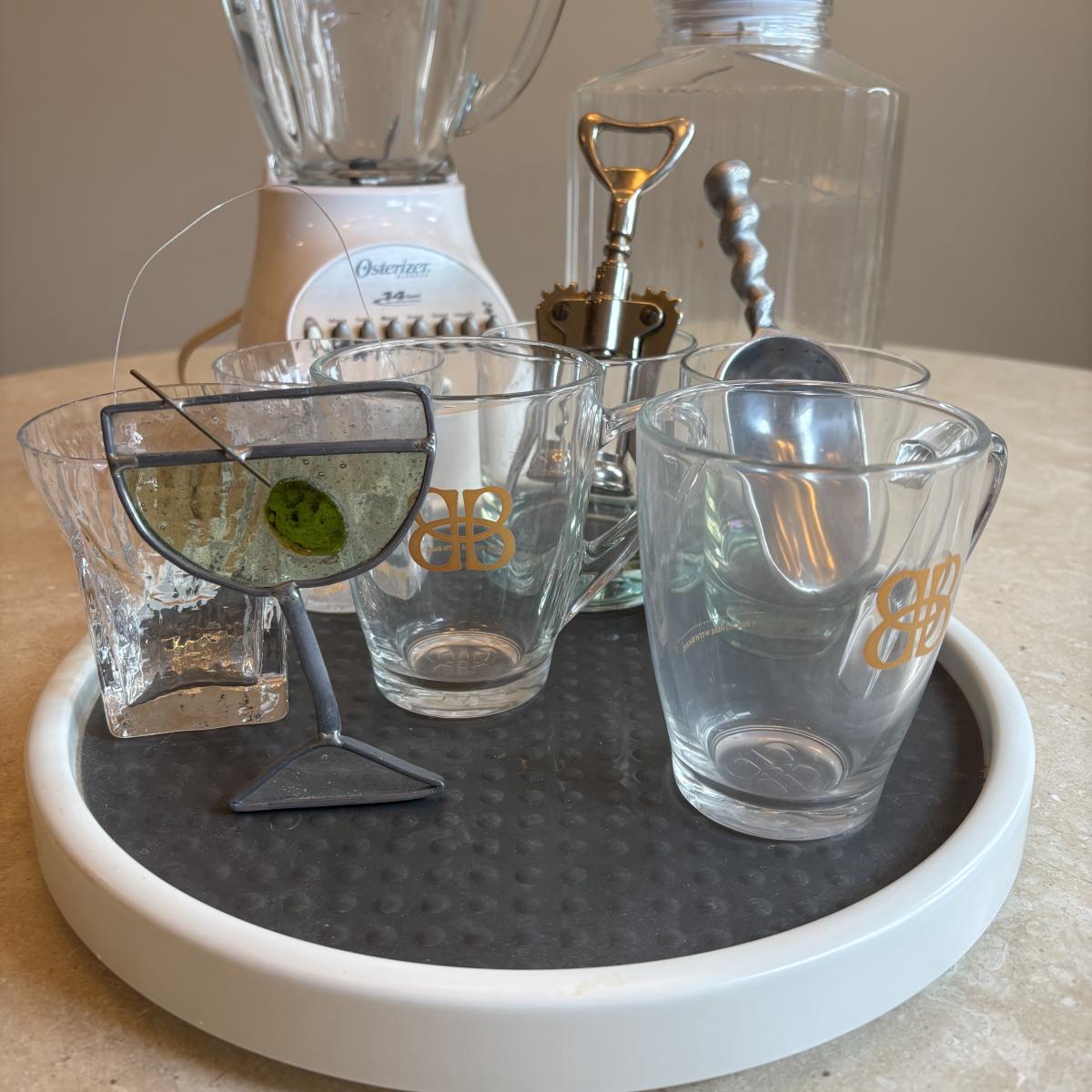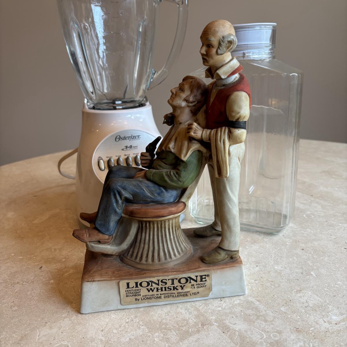 LOT 101: Bar Set-Up Essentials: Osterizer 14speed Blender, Bar Foot Rail Brackets, GreyGoose Spill Mat Runner, Lionstone Whiskey Decanters, Lazy Susan & Glassware