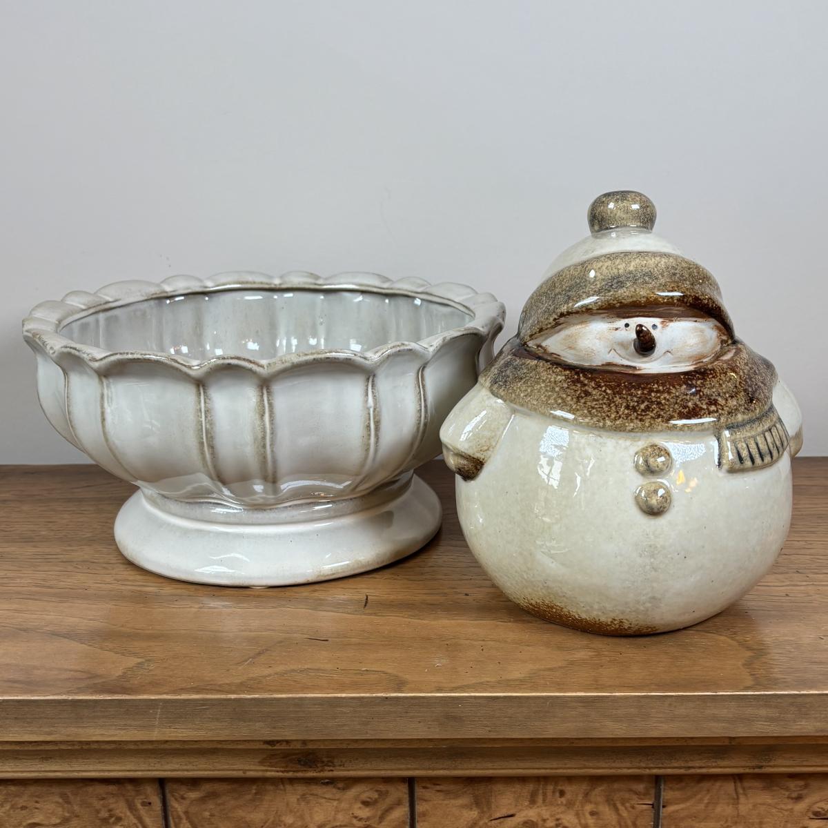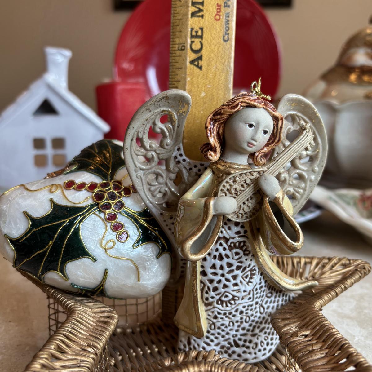 LOT 102: Holiday Decor: Glazed Snowman & Bowl, Lenox Rustic Berry Plate, Roman Inc. Artisan Angel Ornament, Pfaltzgraff & More