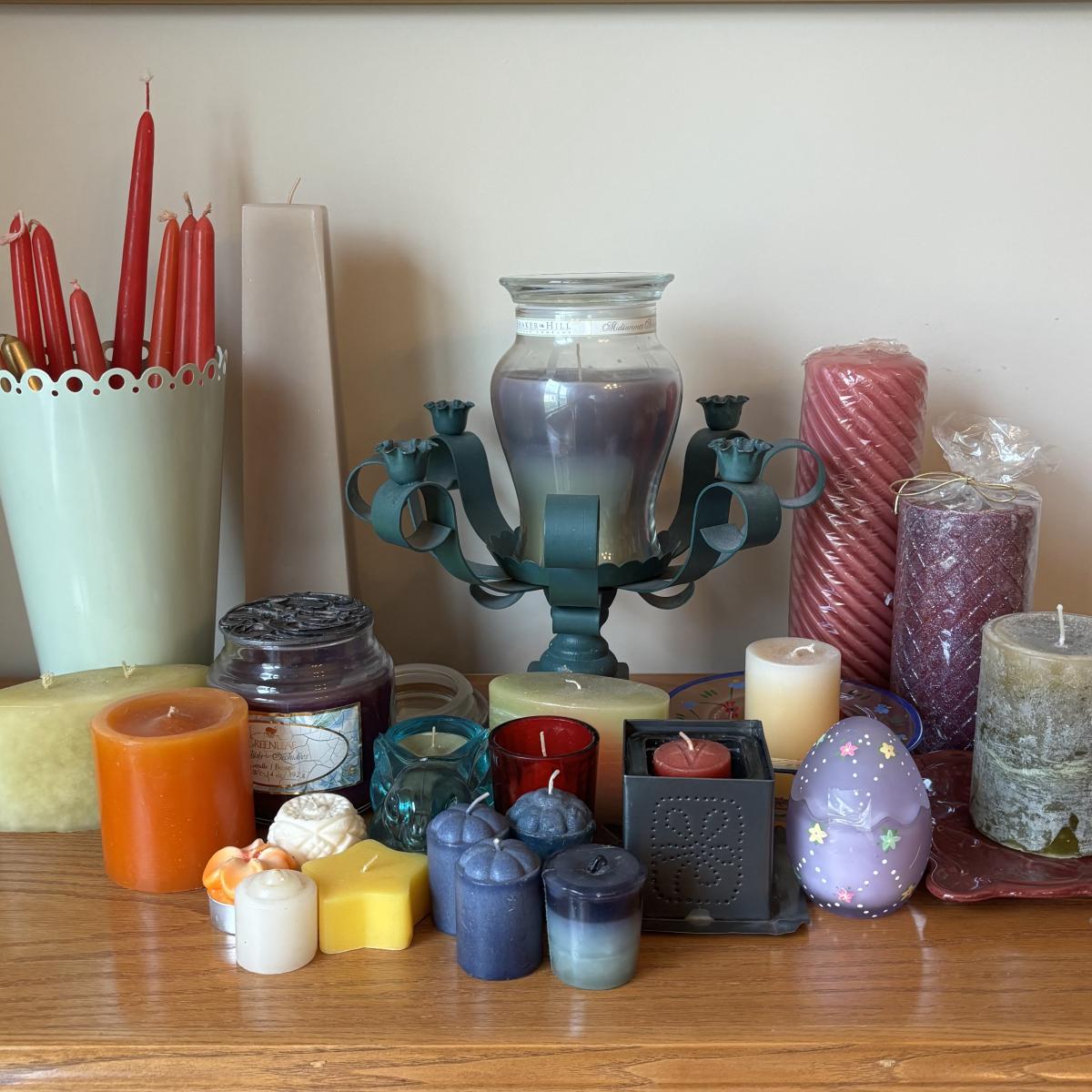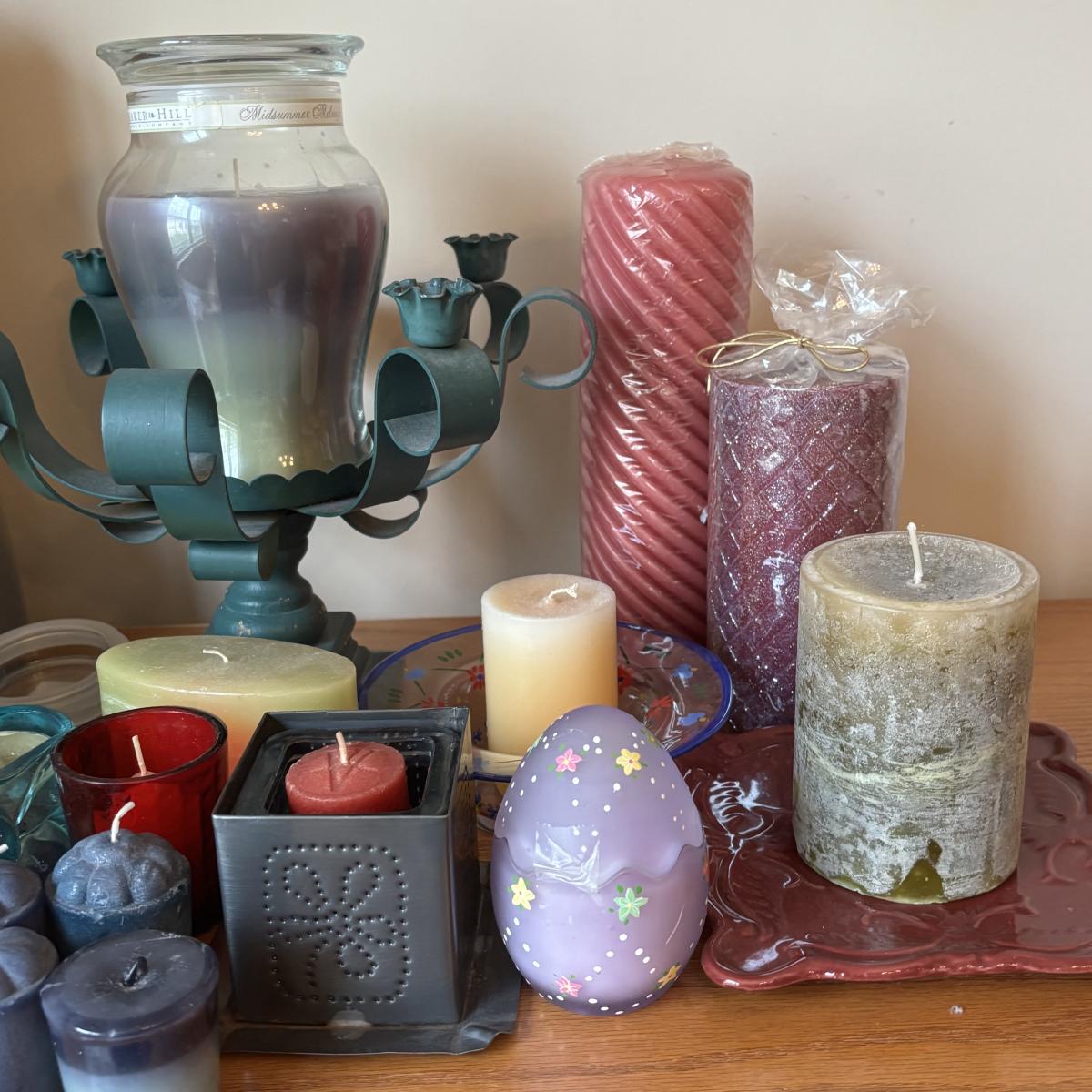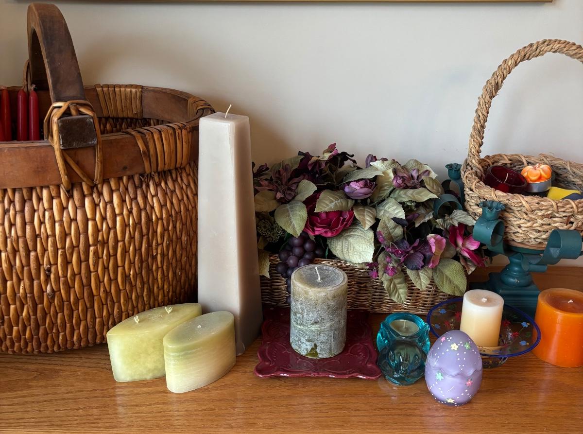 LOT 103: Home Decor Woven Gathering Basket and Candles