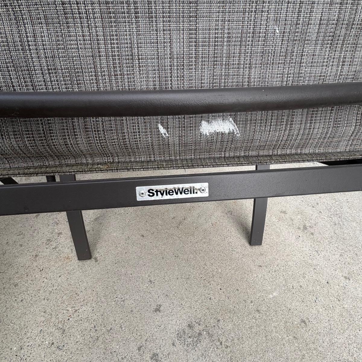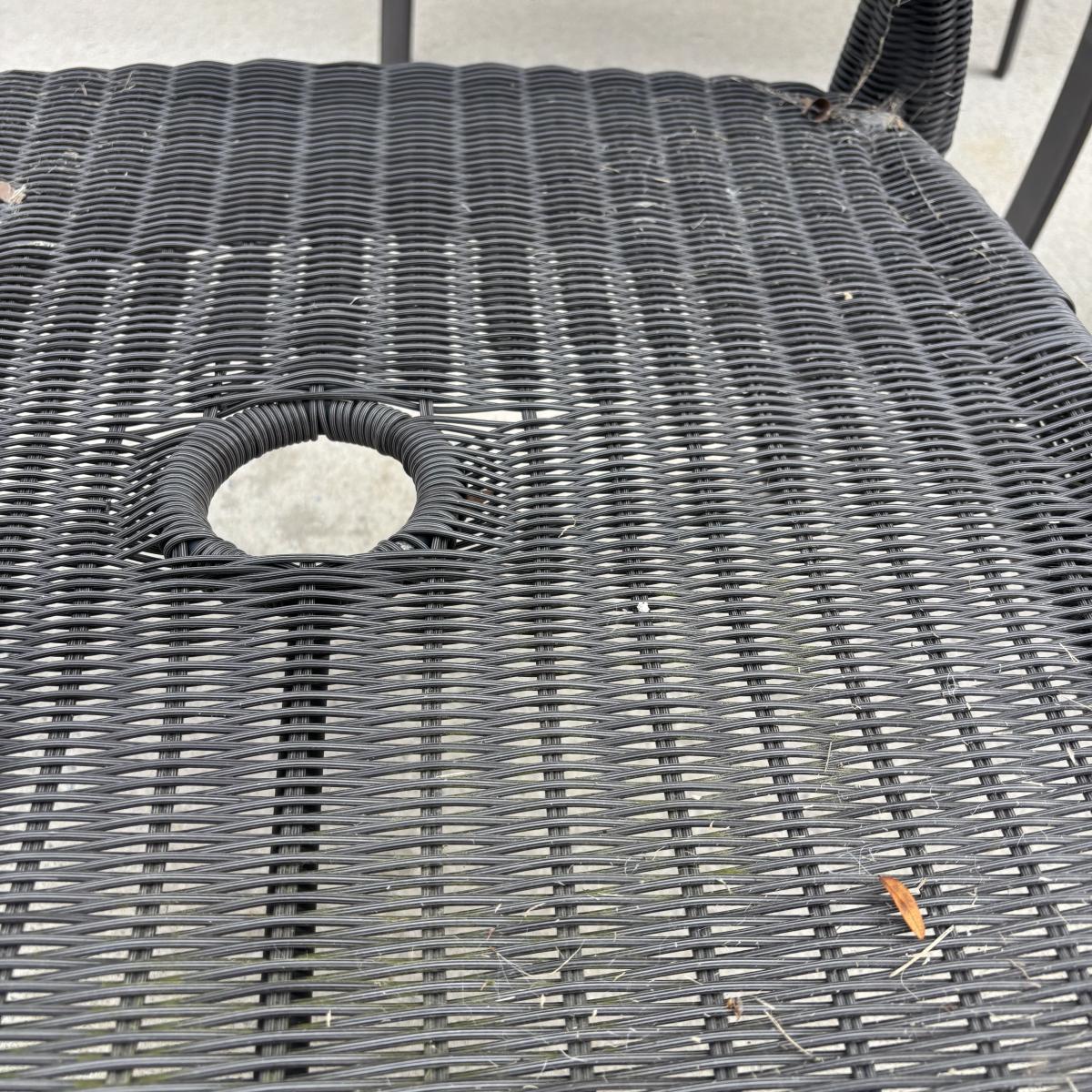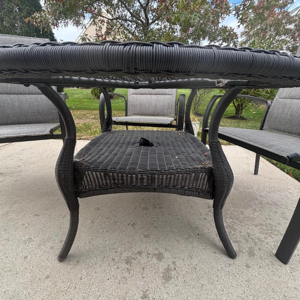 LOT 105: Stylewell Outdoor Patio Chairs along with a Round Wicker & Glass Patio Table