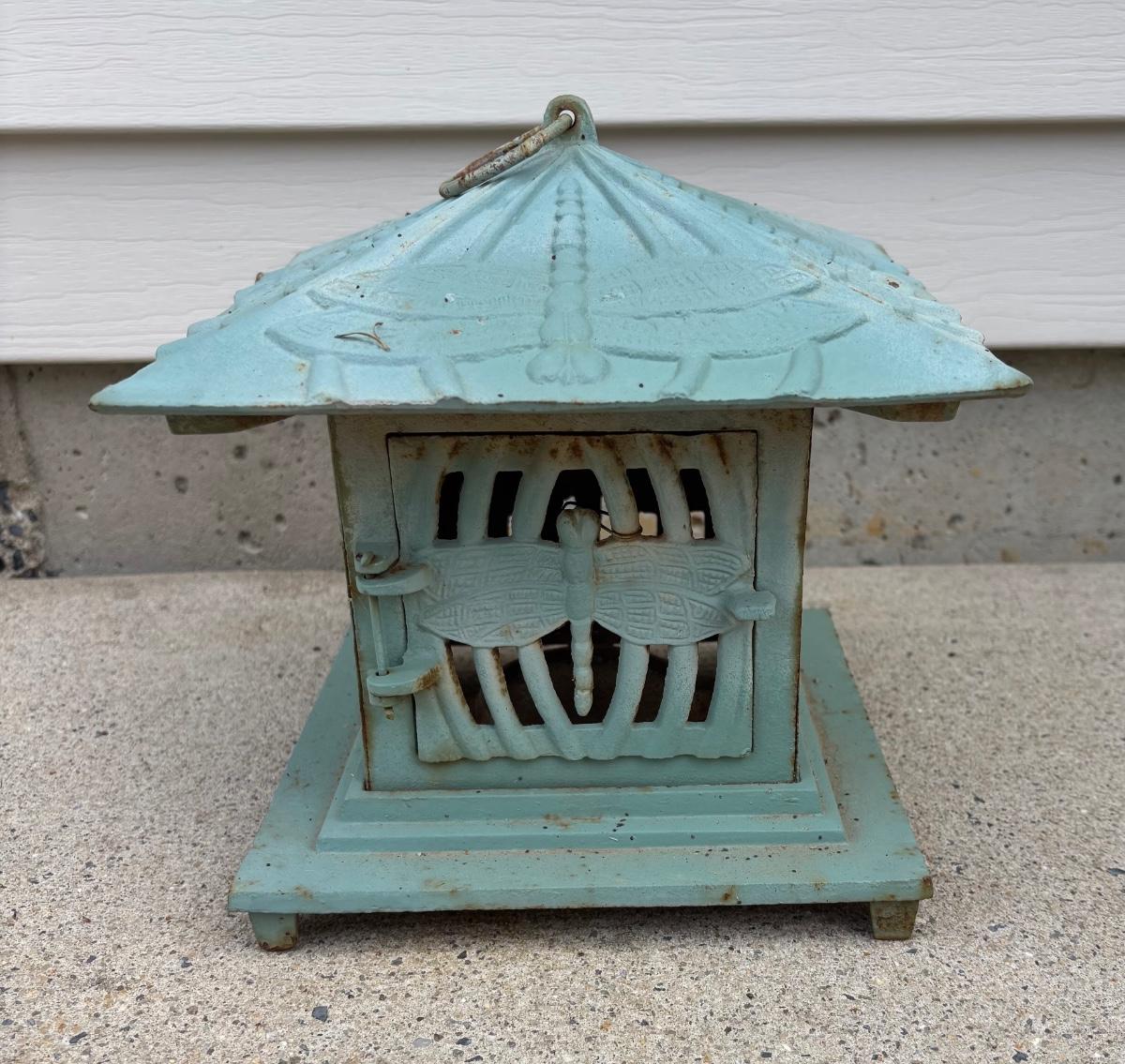 LOT 106: Cast Iron Dragonfly Pagoda Lantern