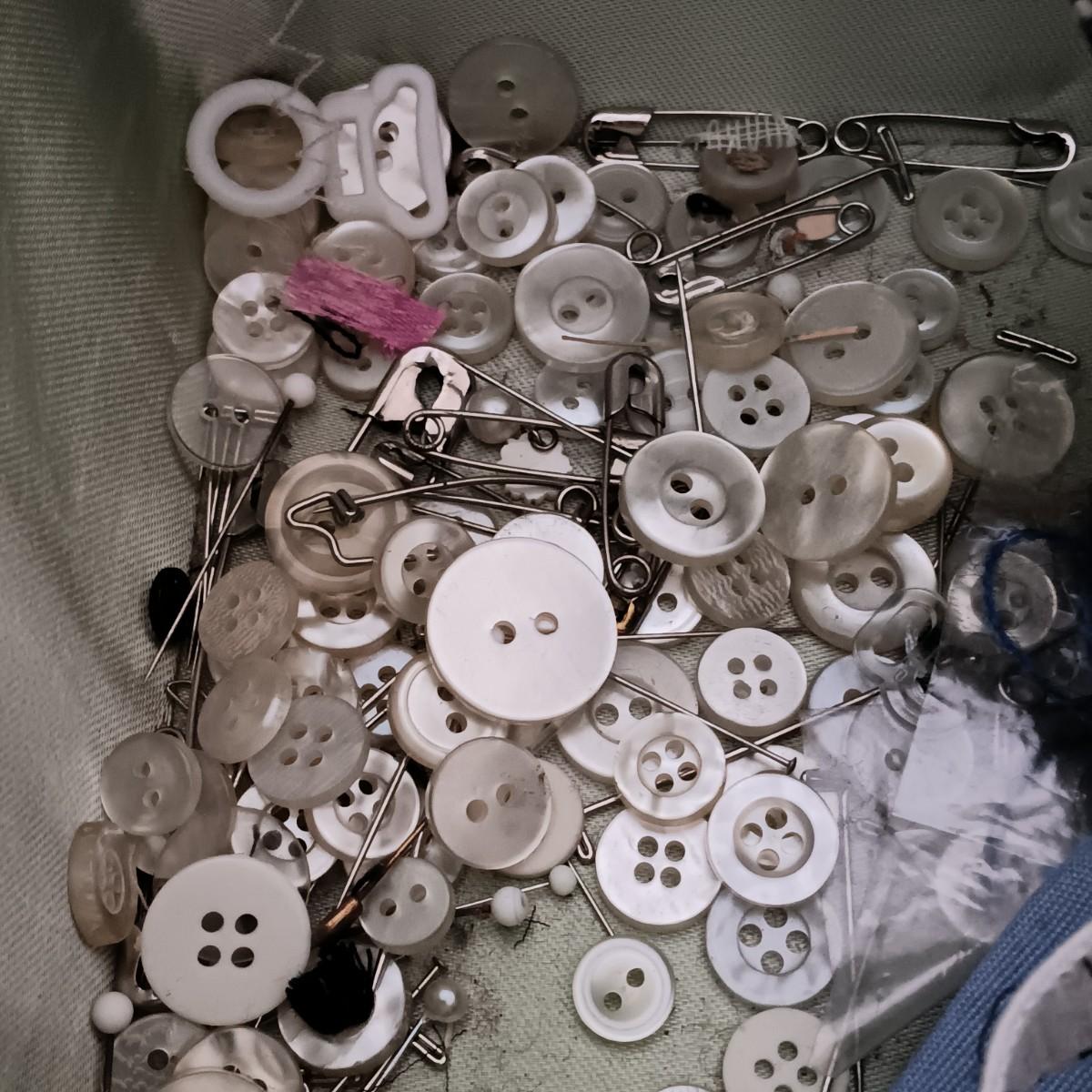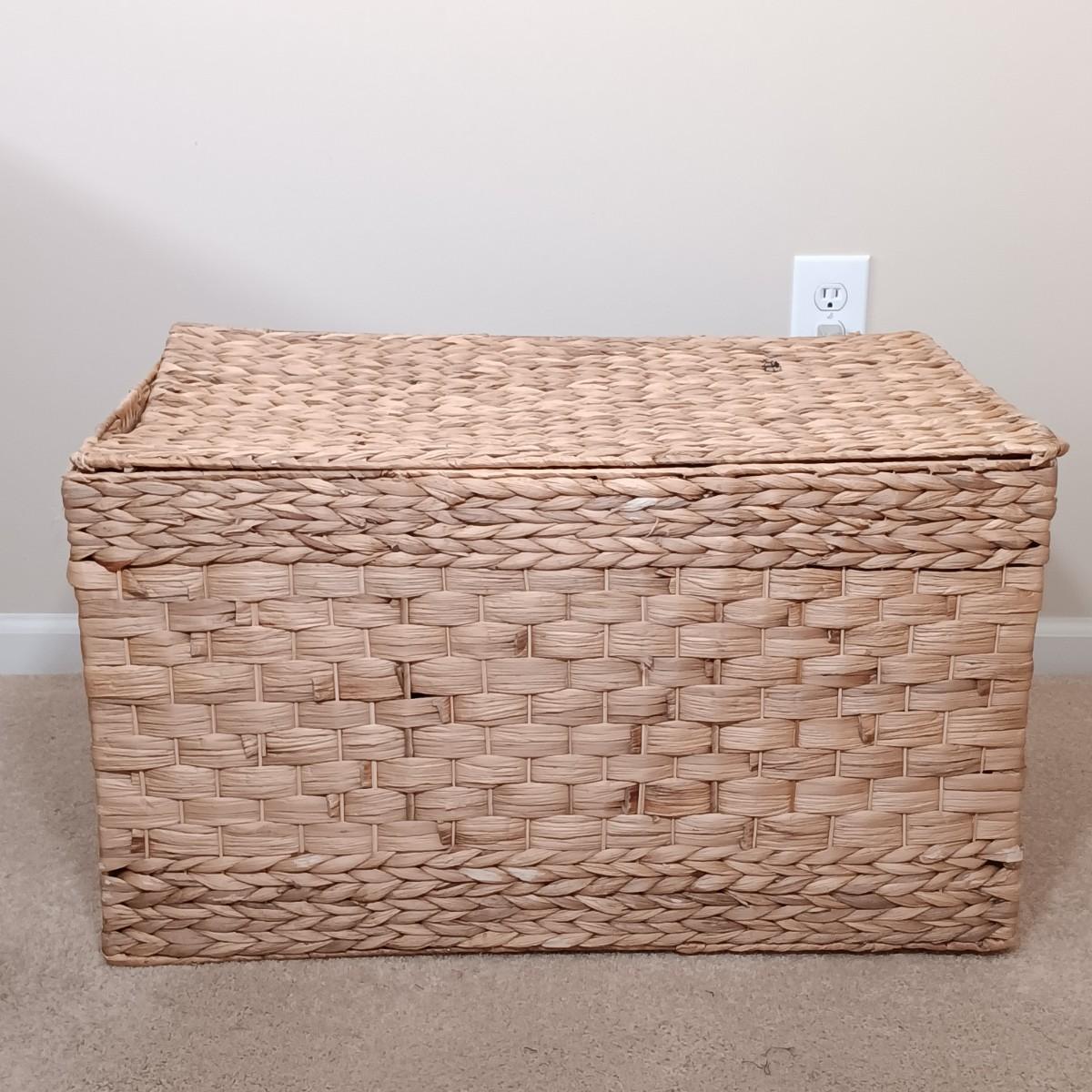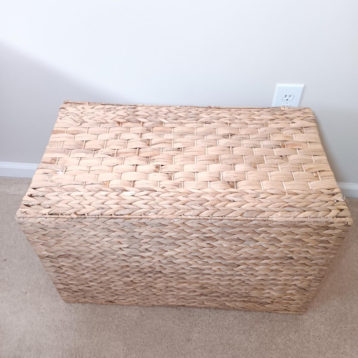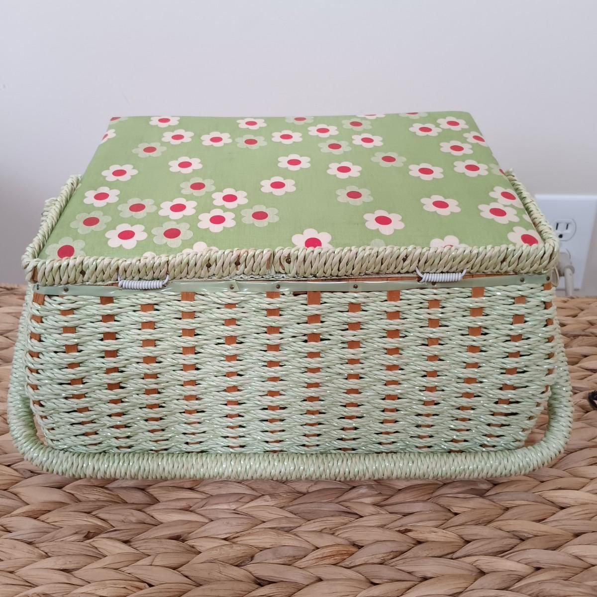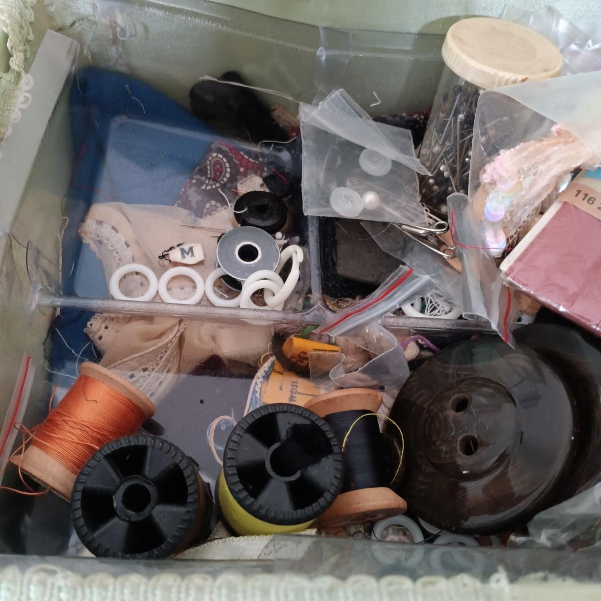 LOT 122: Wicker Trunk, Small Woven Tapestry, Sewing Notions & More