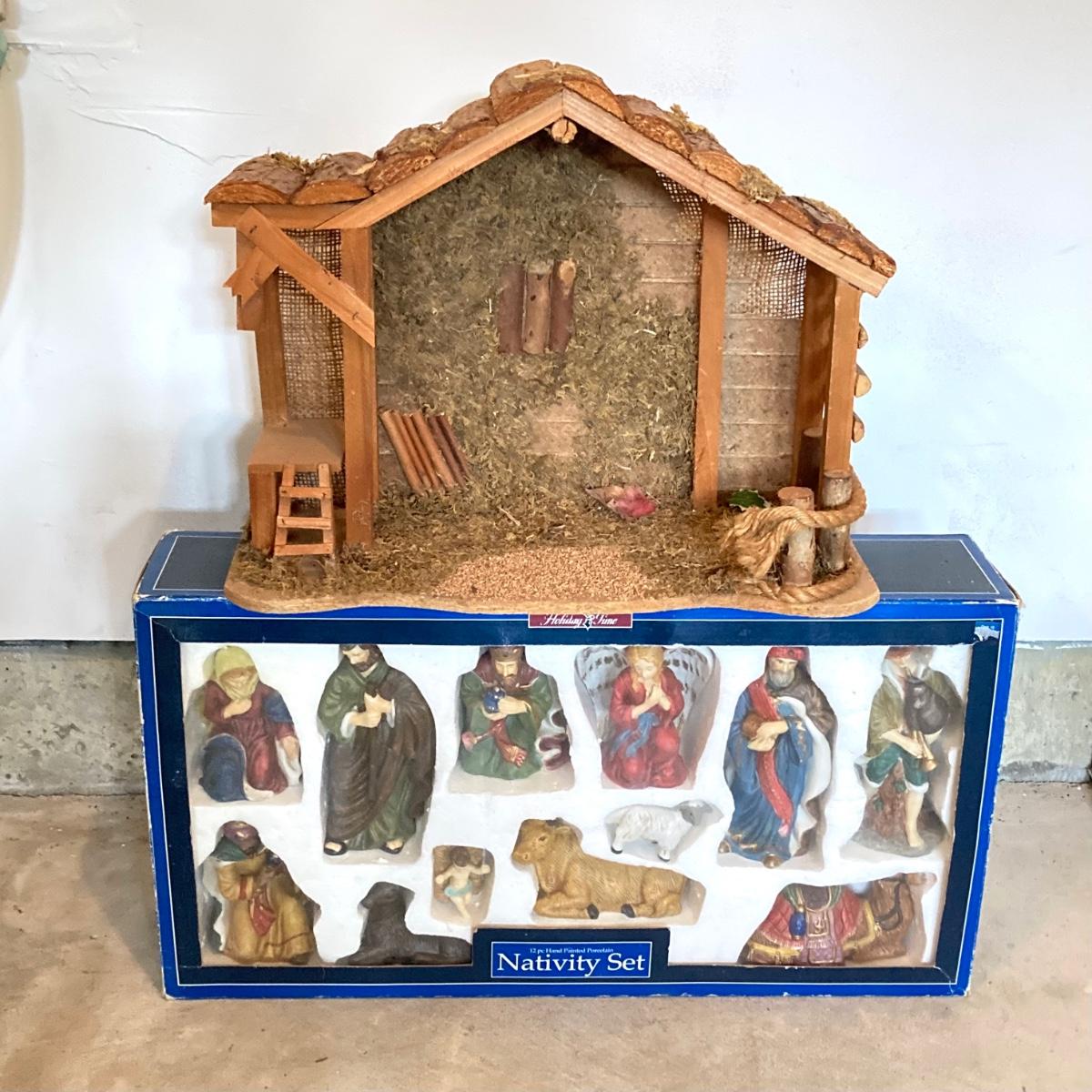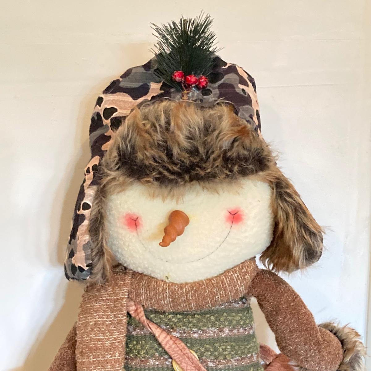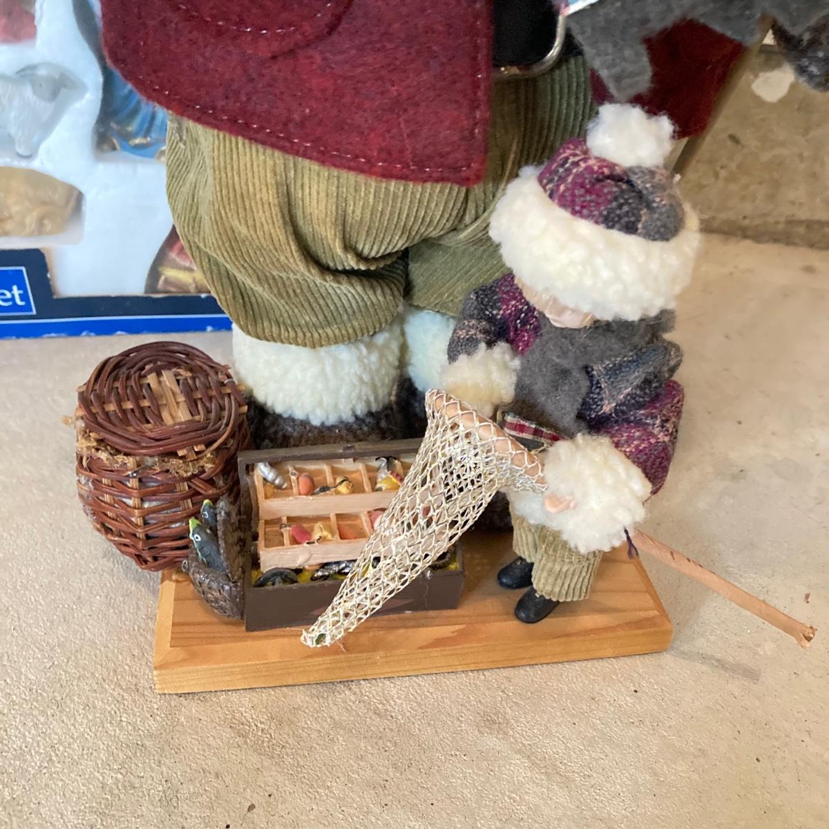 LOT 144: Collection of Christmas / Holiday Decor - Camo Snowman, Mooseltoe Season, Fishing Bear, Lighted Wreath, Nativity Scene and More