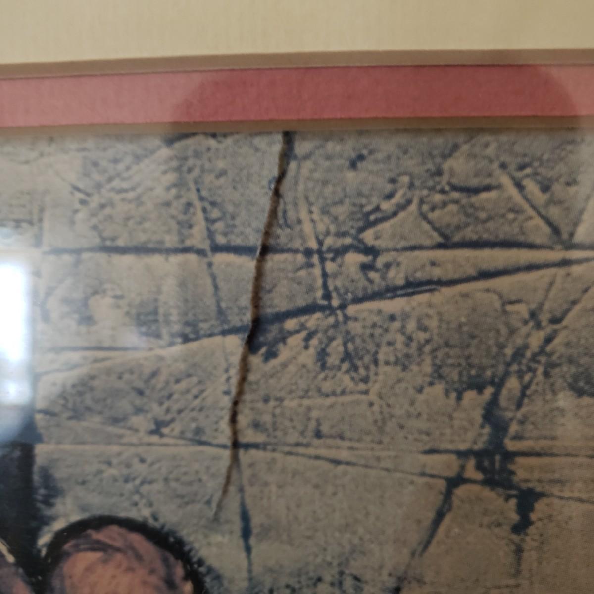 Small tear can be seen under glass-see photo. Please see all pictures as they are the best representation of the items. The pictures show condition, measurements if taken, and what is included in the lot. Due to the large amount that we photograph and the time frame, we are not always able to take measurements. All items unless noted, are pre-owned and have been used. If you purchased furniture, you must bring help. We do not allow one person to carry large furniture out on their own. Bring help, tools and a truck for the safety of our client’s homes, and your personal safety. Any damages that result to the property including walls, and floors due to moving of the furniture will be charged to the buyer. Company policy. Thank you.