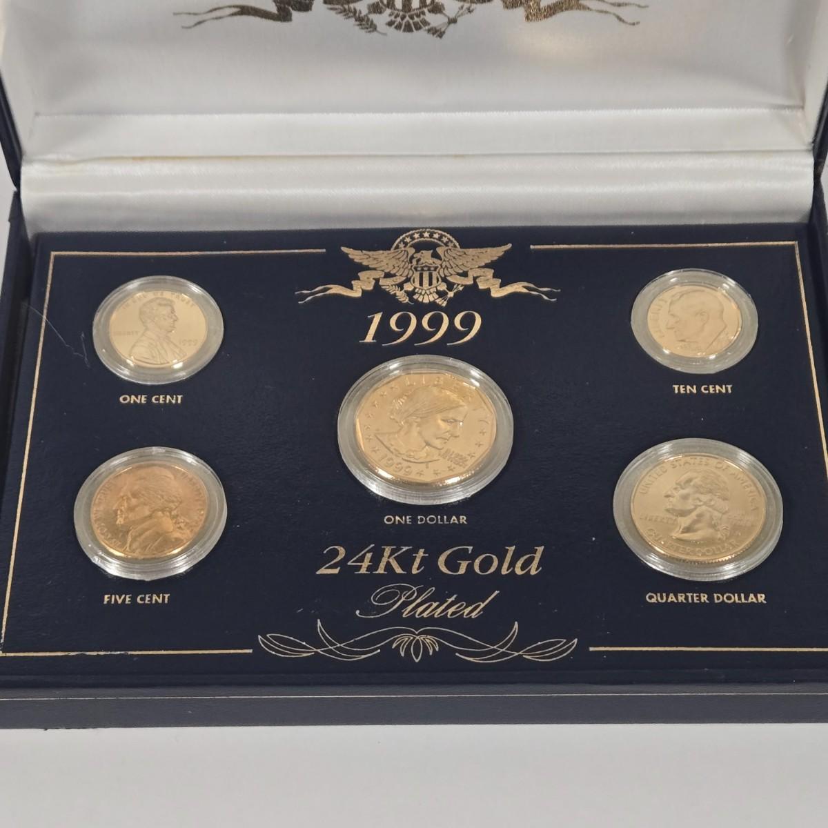 LOT 23Z: 1999 24k Gold Plated Coin Set, Crystal Eiffel Tower, and More