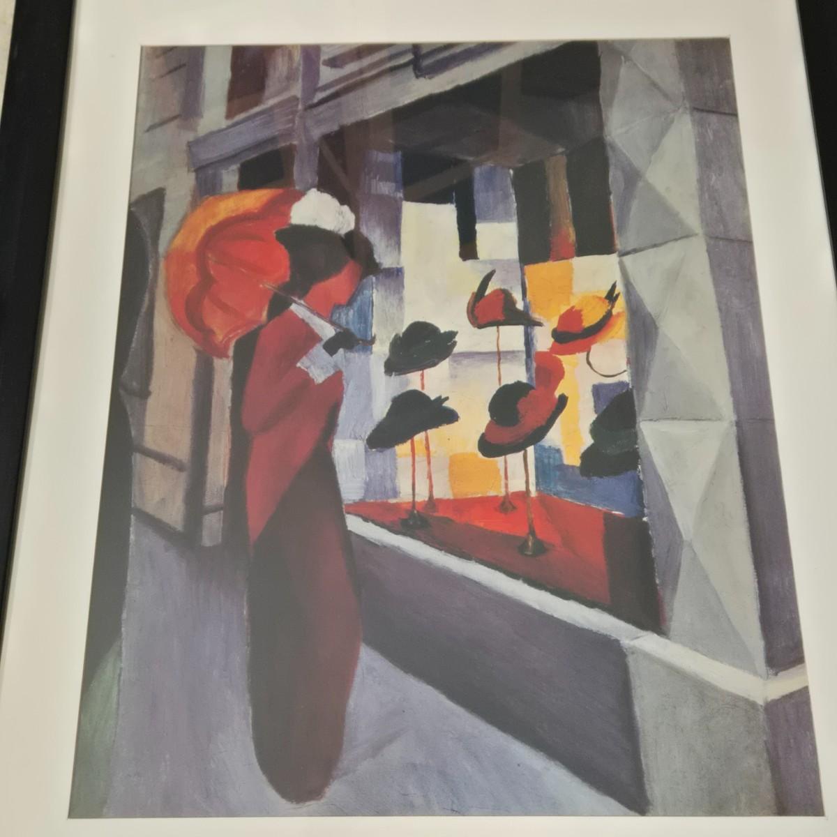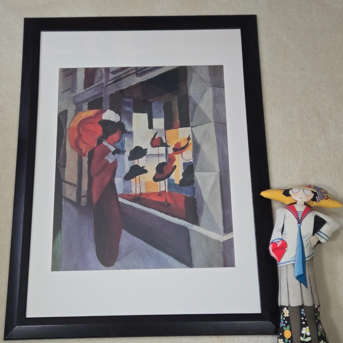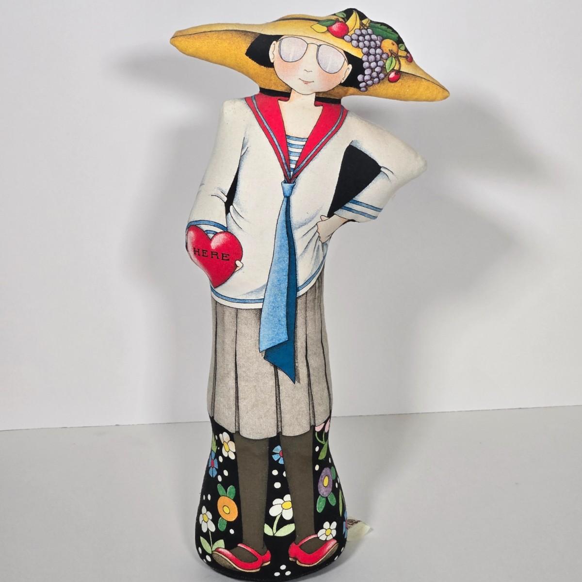 LOT 29Z: Woman with Umbrella in Front of a Hat Shop Print and Mary Engelbreit Here Is My Heart Weighted Fabric Doll