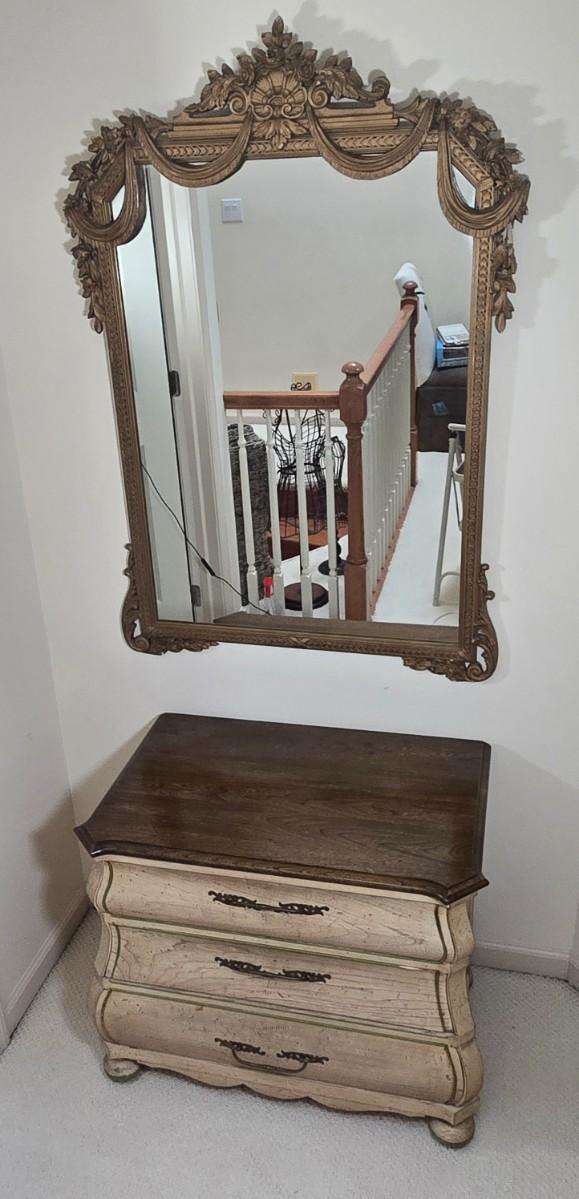 29x18.5x25 are nightstand measurements and mirror is 28x44. Please see all pictures as they are the best representation of the items. The pictures show condition, measurements if taken, and what is included in the lot. Due to the large amount that we photograph and the time frame, we are not always able to take measurements. All items unless noted, are pre-owned and have been used. If you purchased furniture, you must bring help. We do not allow one person to carry large furniture out on their own. Bring help, tools and a truck for the safety of our client’s homes, and your personal safety. Any damages that result to the property including walls, and floors due to moving of the furniture will be charged to the buyer. Company policy. Thank you.