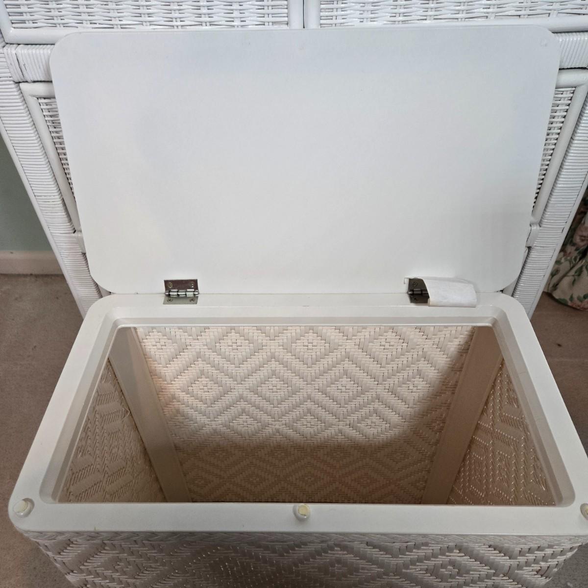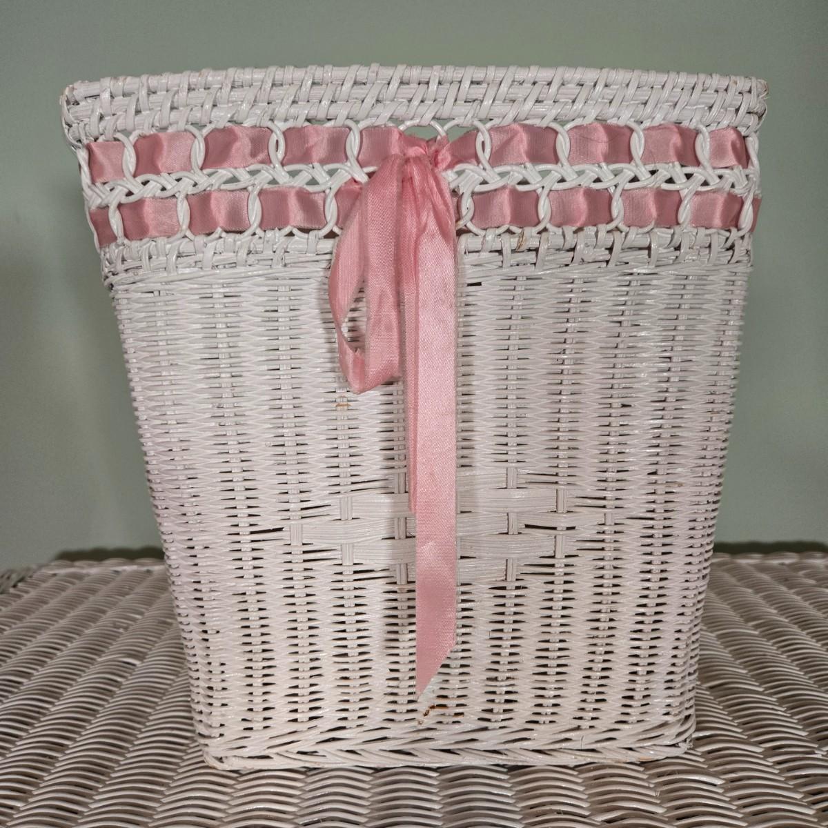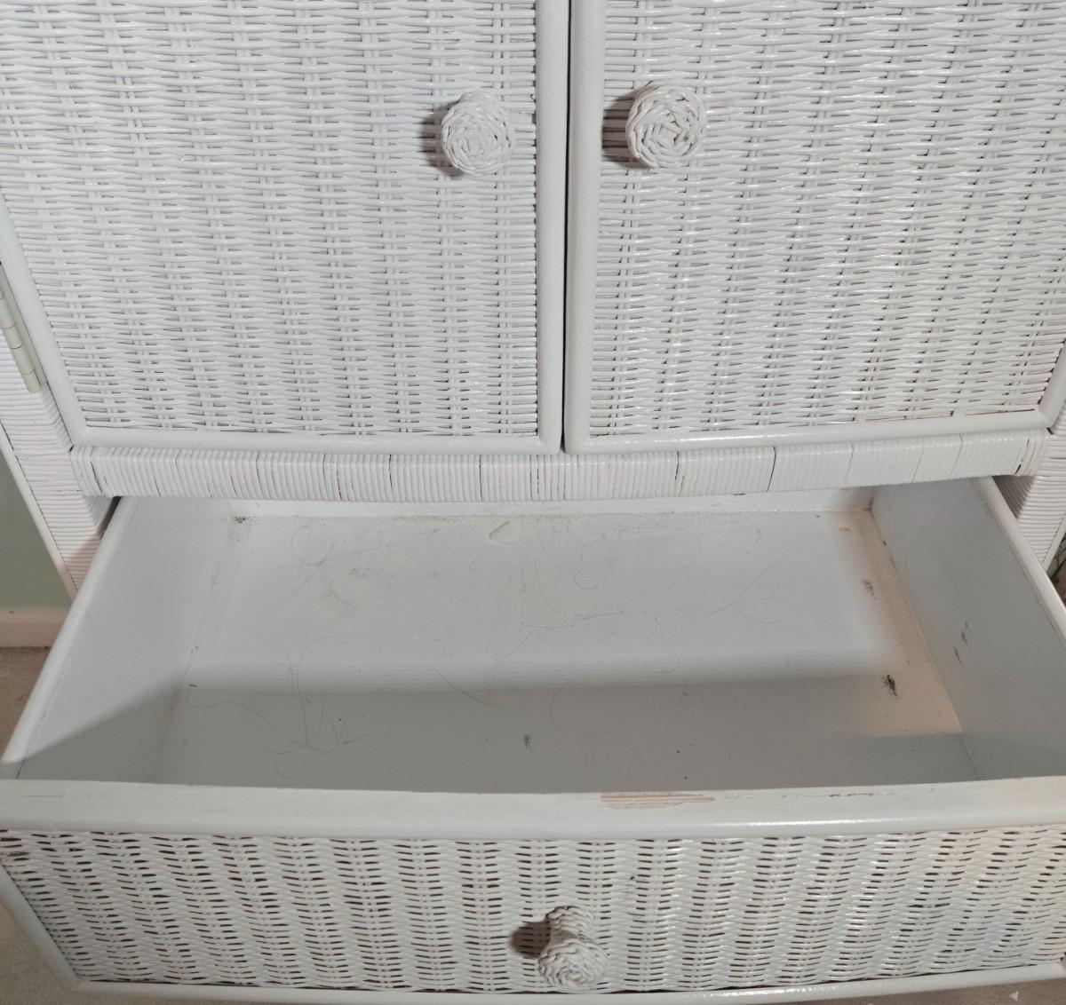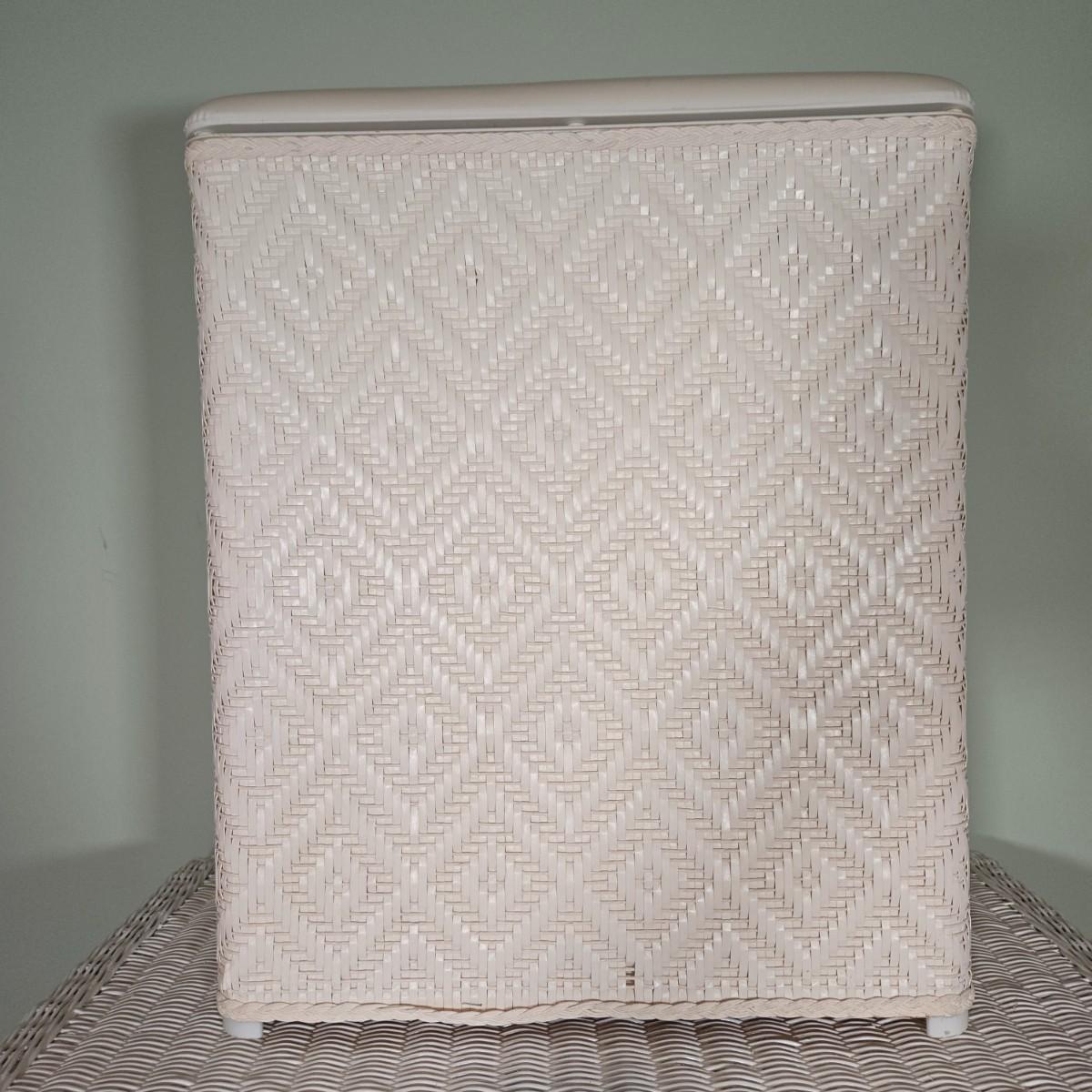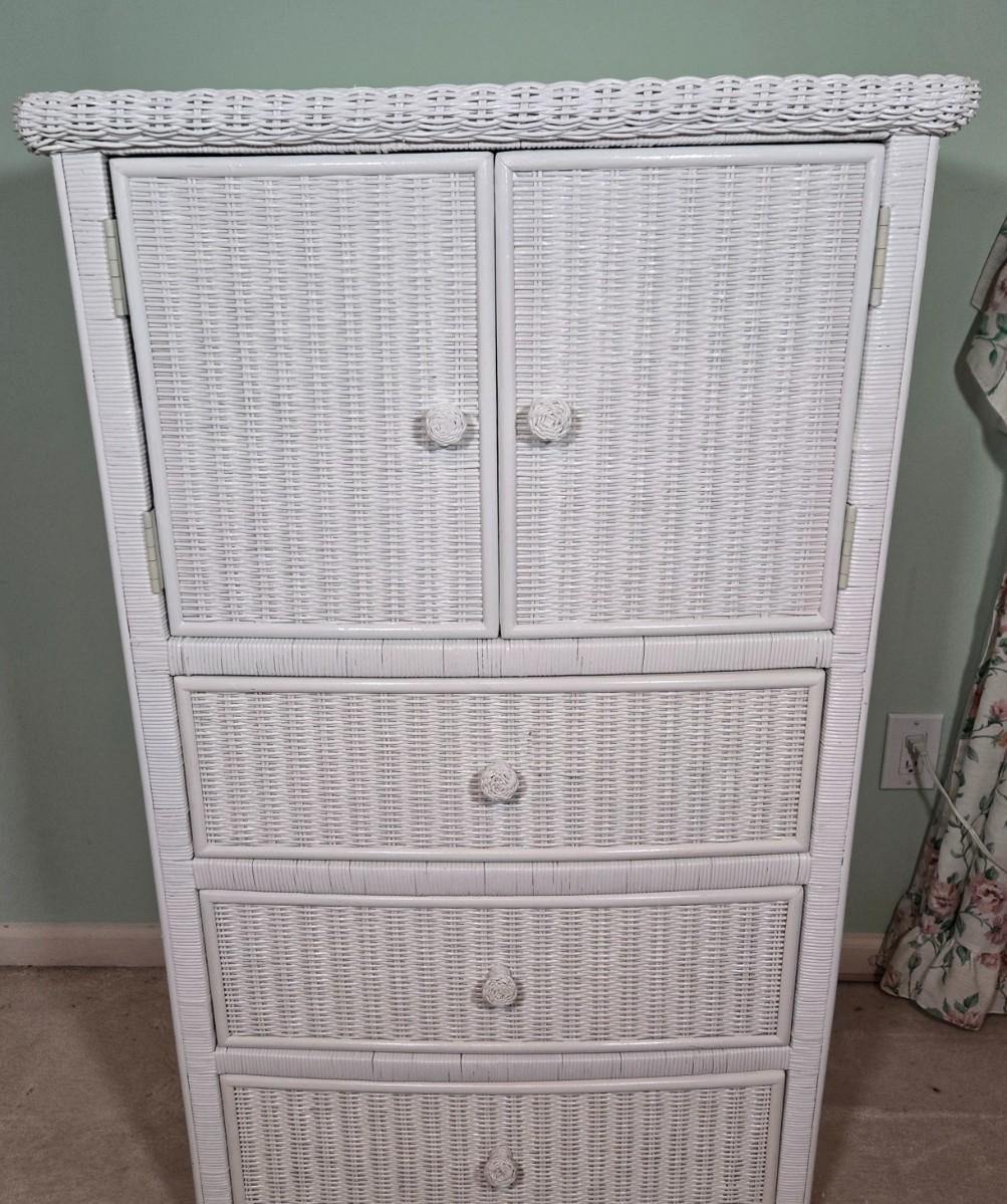 LOT 39X: Wicker Dresser, Hamper, and Waste Paper Basket