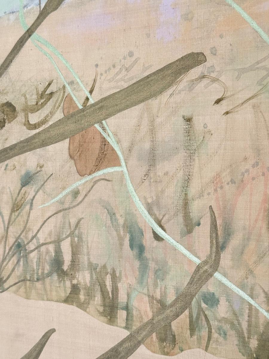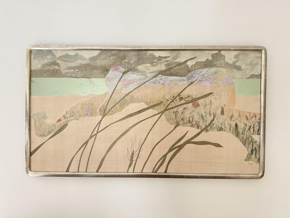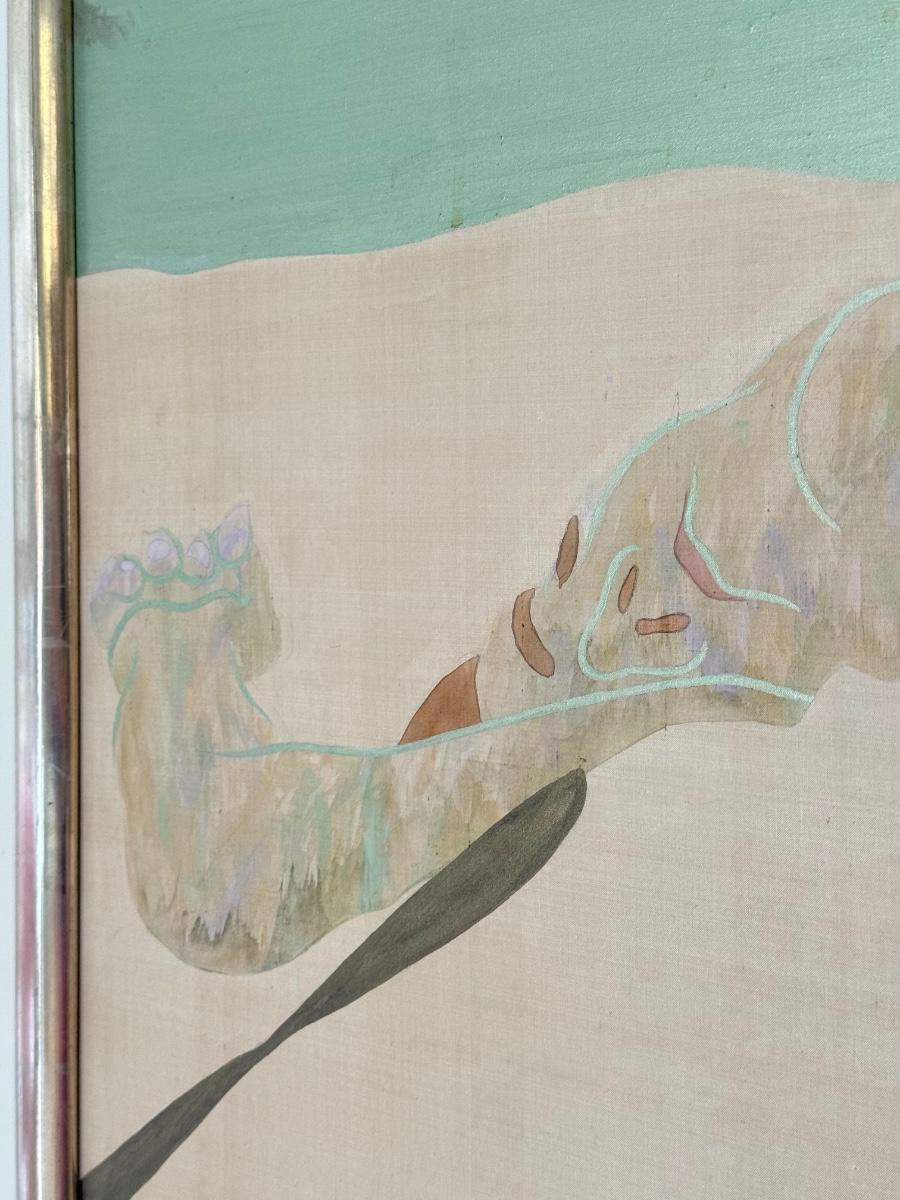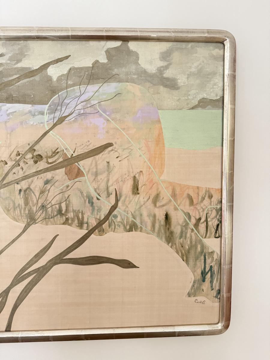 LOT 41F: Large 53x30 inch Acrylic on Silk Painting signed Curtis S & Reed on the back