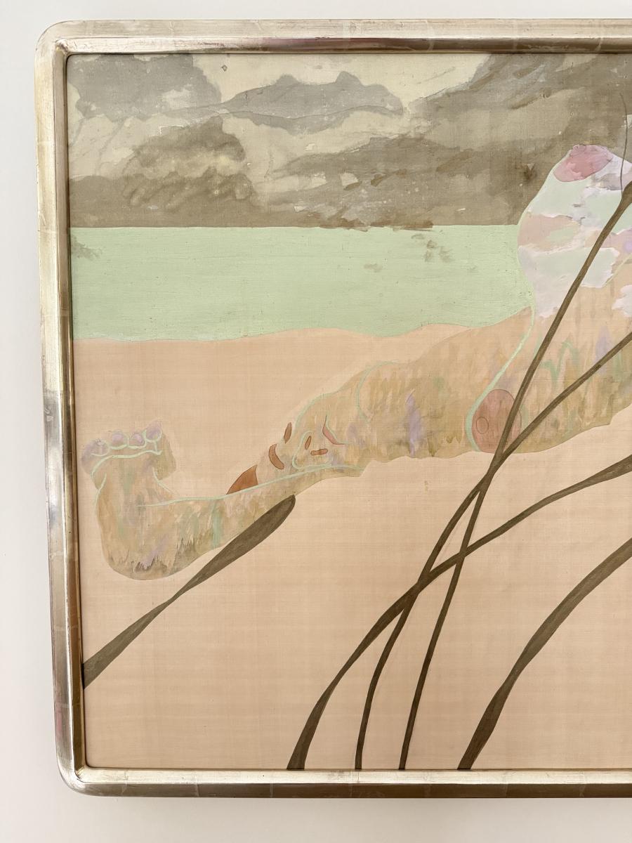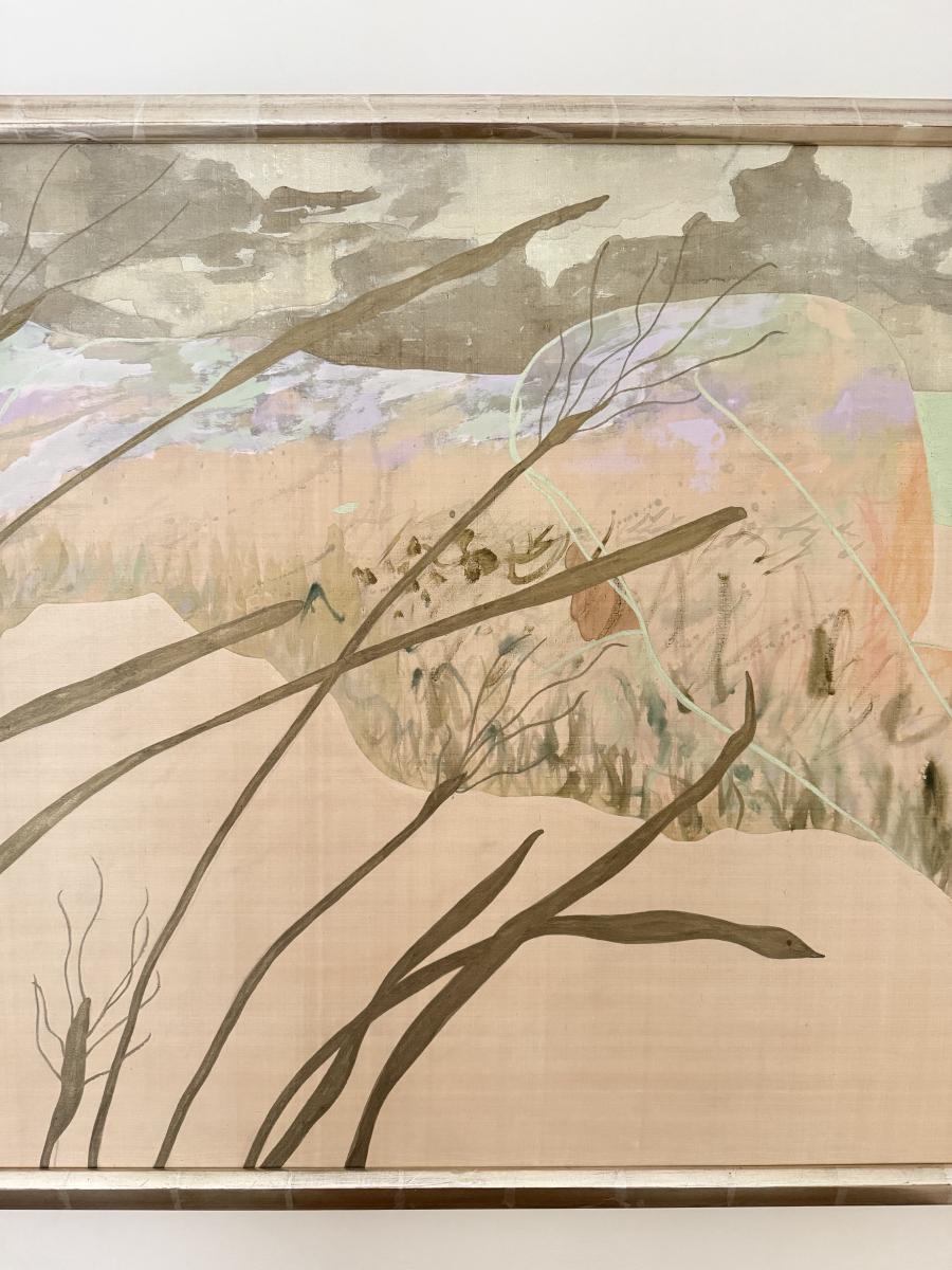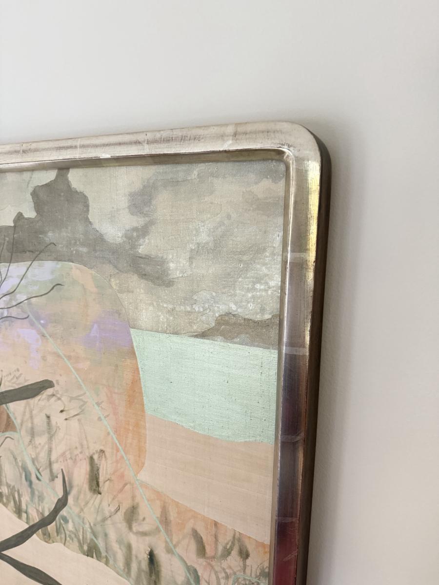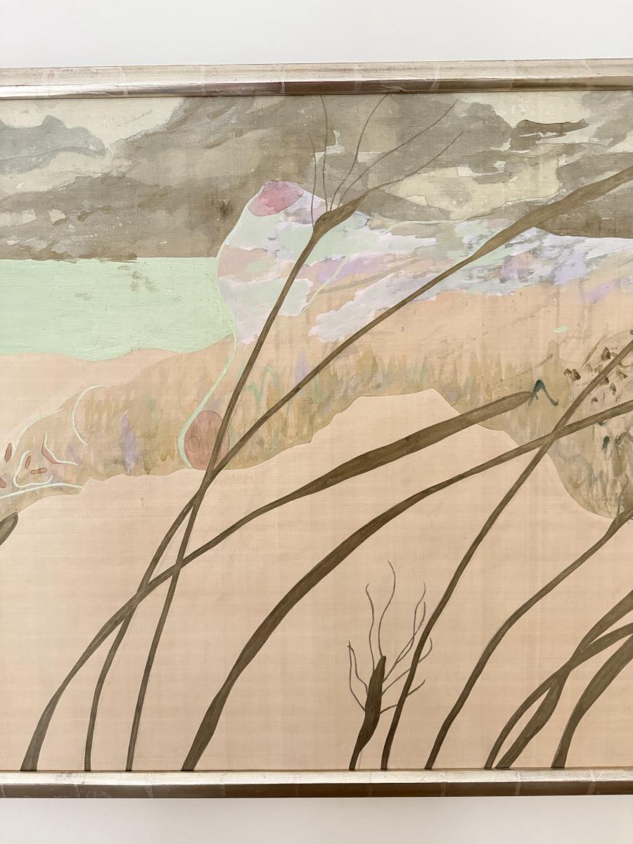 LOT 41F: Large 53x30 inch Acrylic on Silk Painting signed Curtis S & Reed on the back