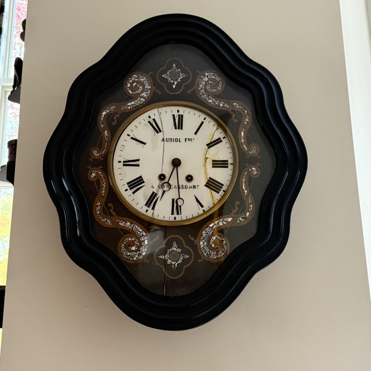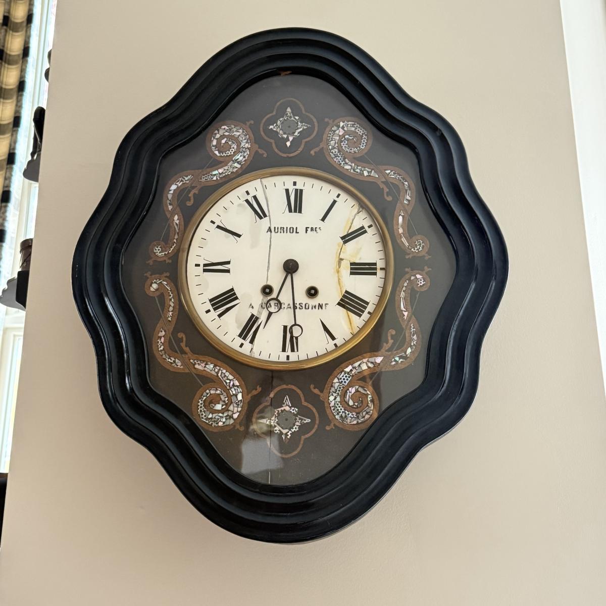 LOT 42K: Antique French Victorian Wall Clock signed Auriol Fres a Carcassonne