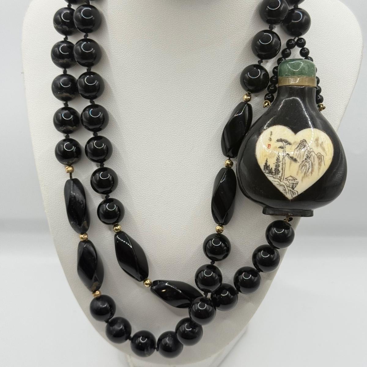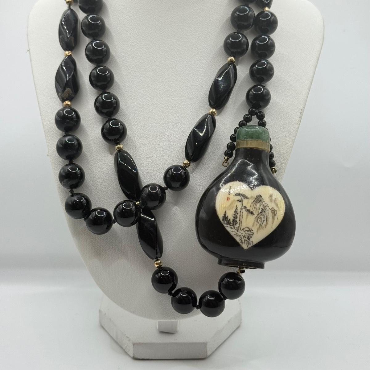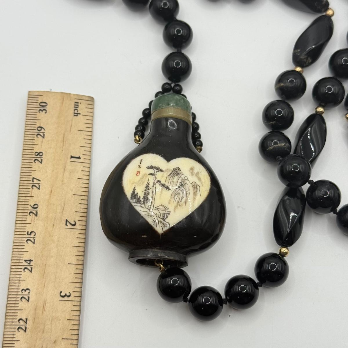 LOT 60J: 34” Necklace w/ Antique Chinese Snuff Bottle
