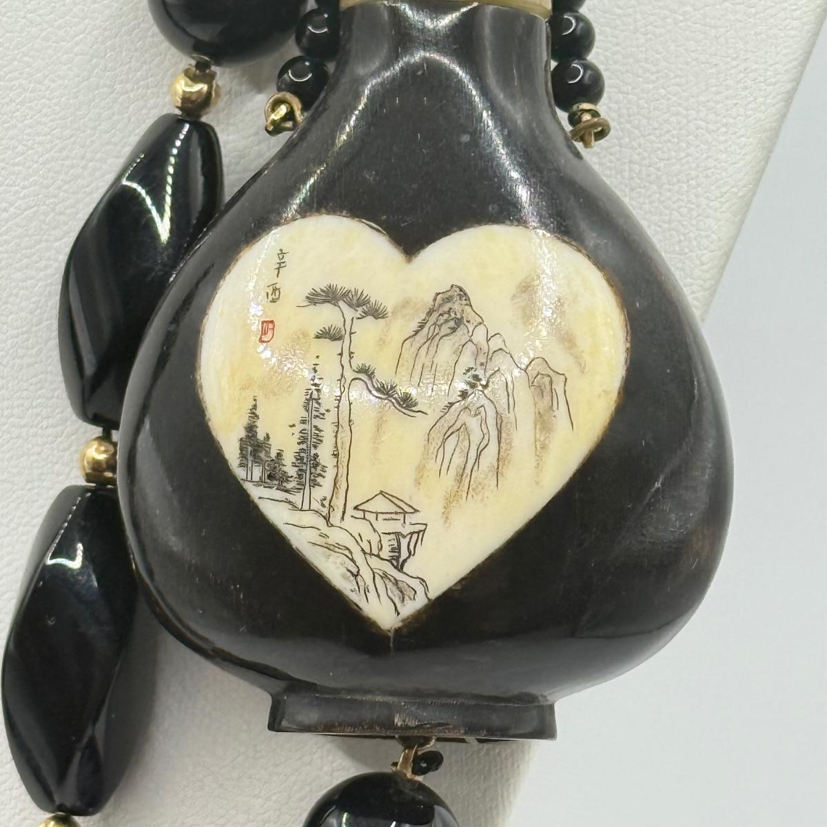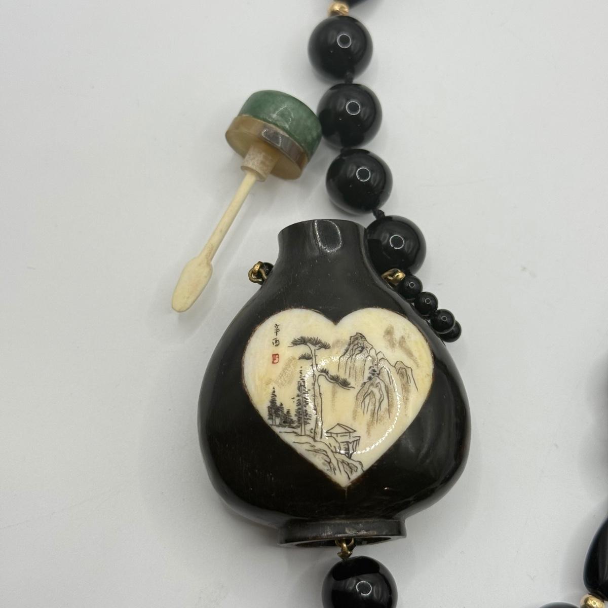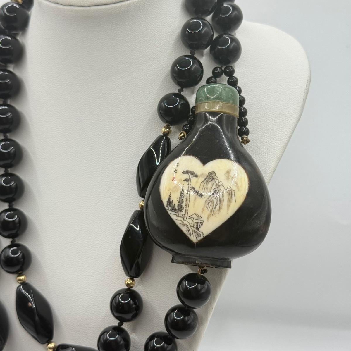 LOT 60J: 34” Necklace w/ Antique Chinese Snuff Bottle