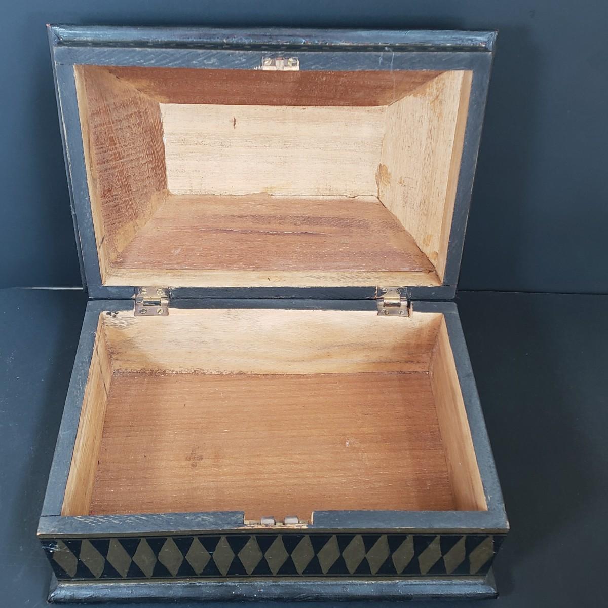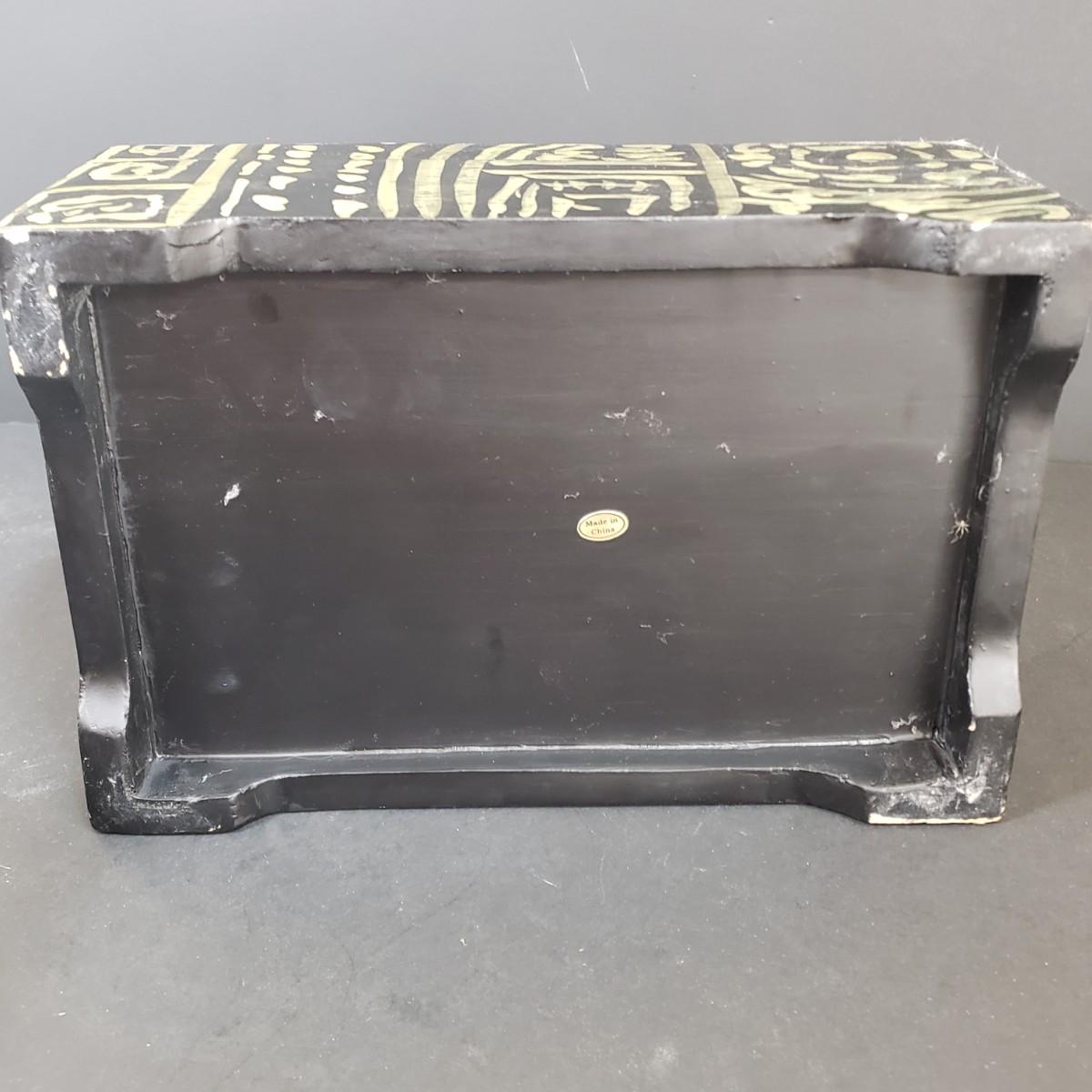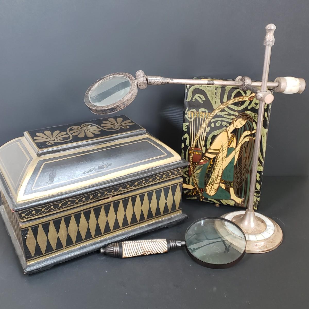 LOT 64: Black Lacquer Box, Large Wooden Gold & Black Box, Mother of Pearl Tabletop & Handheld Magnifying Glass