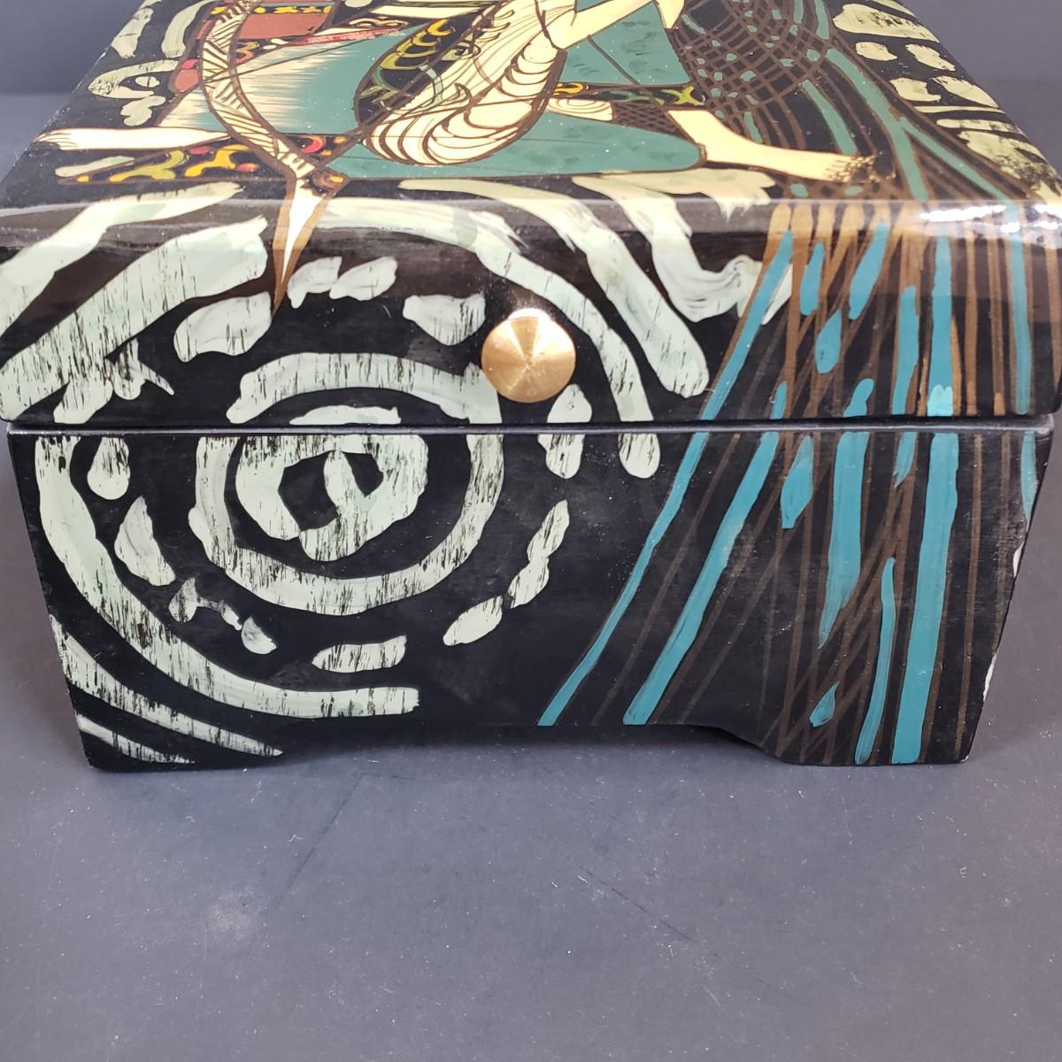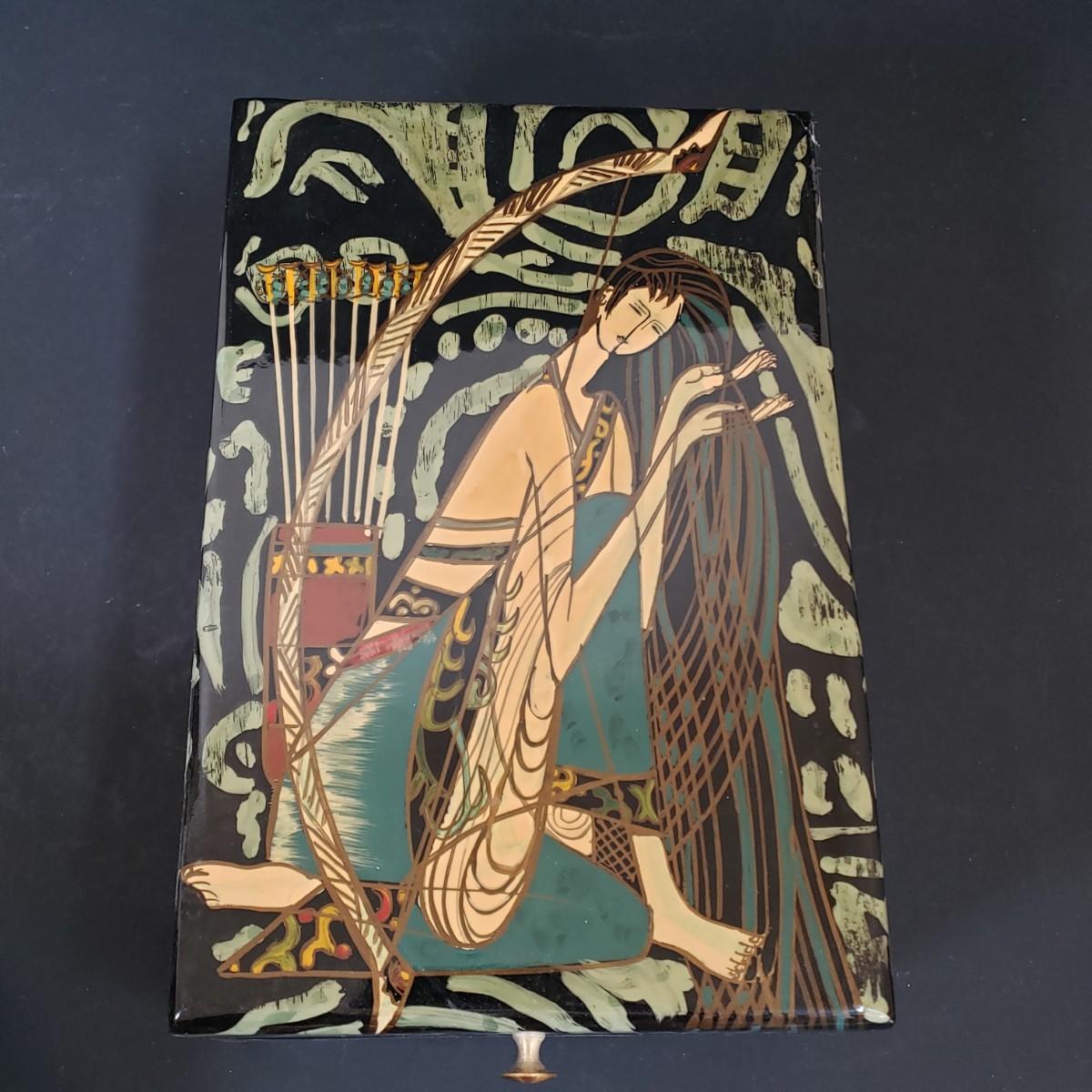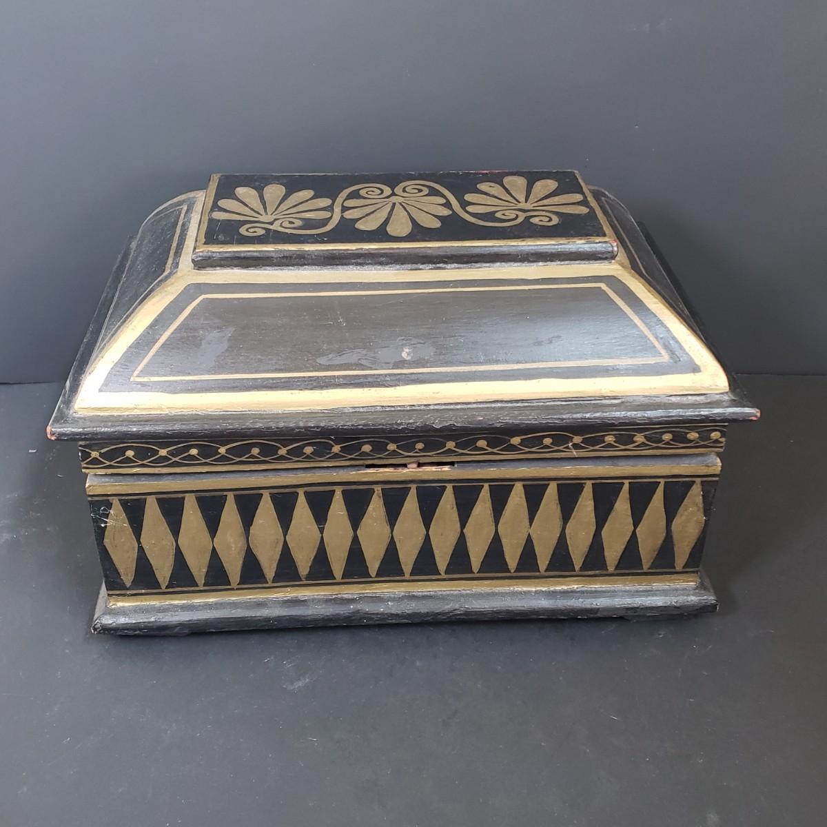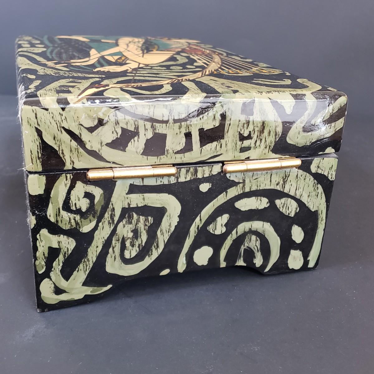 LOT 64: Black Lacquer Box, Large Wooden Gold & Black Box, Mother of Pearl Tabletop & Handheld Magnifying Glass