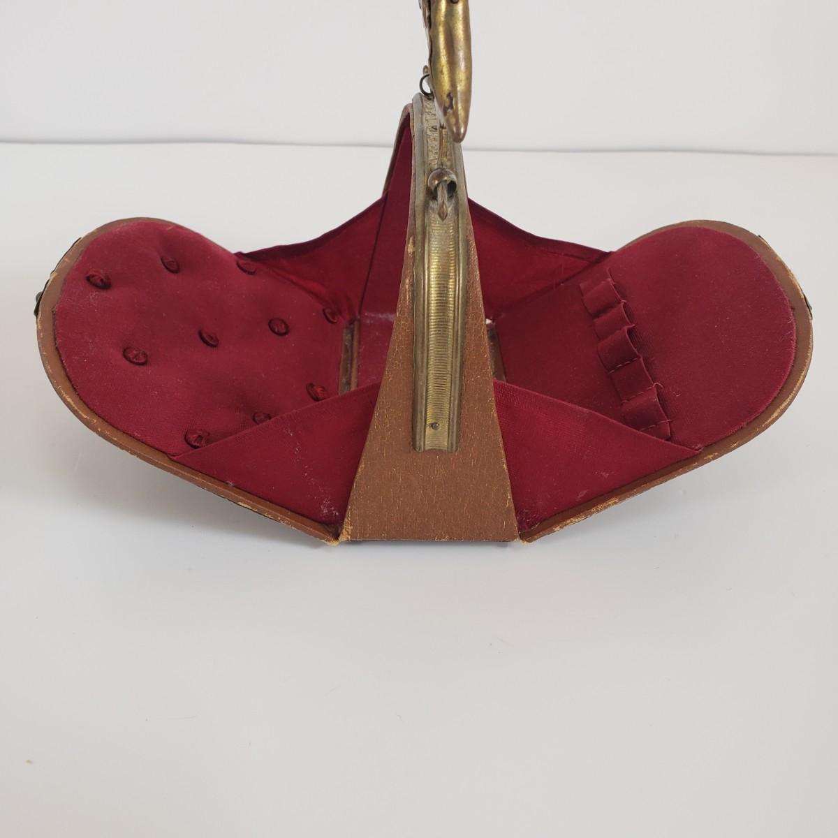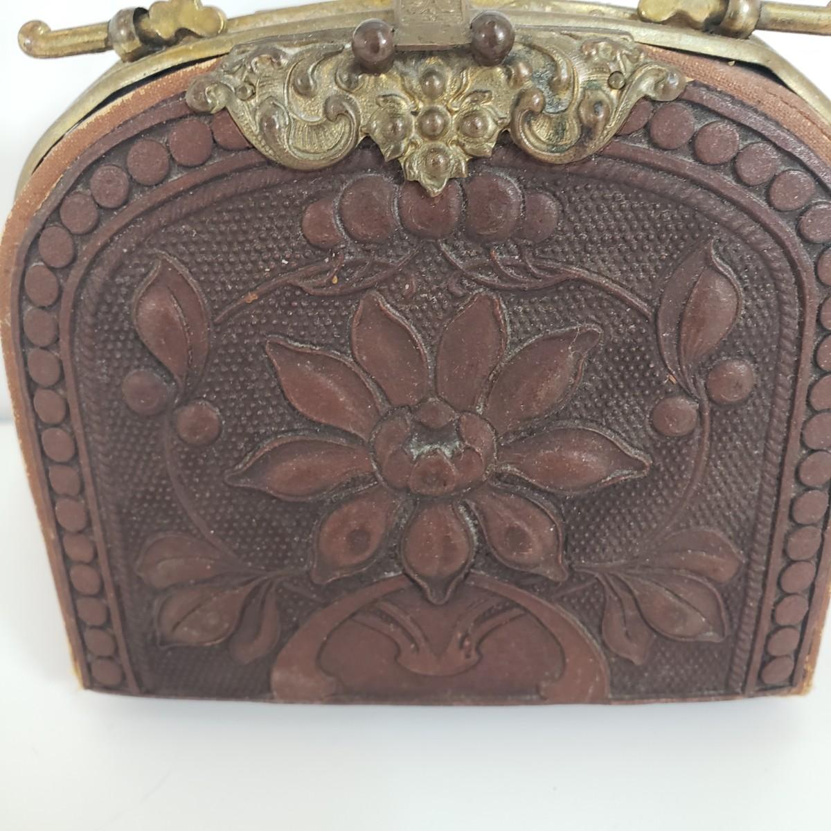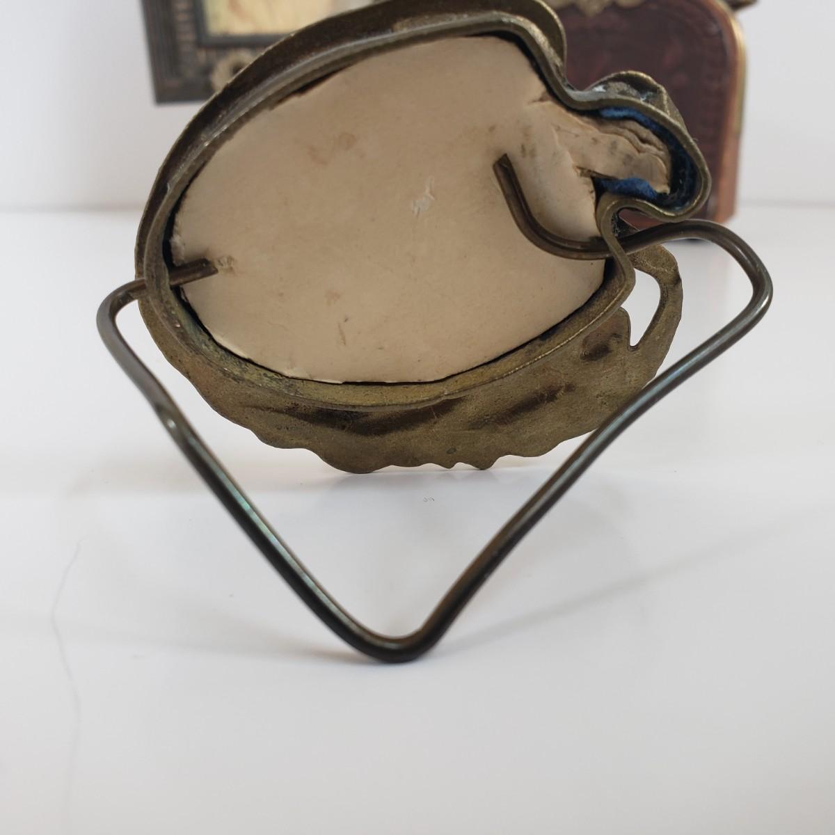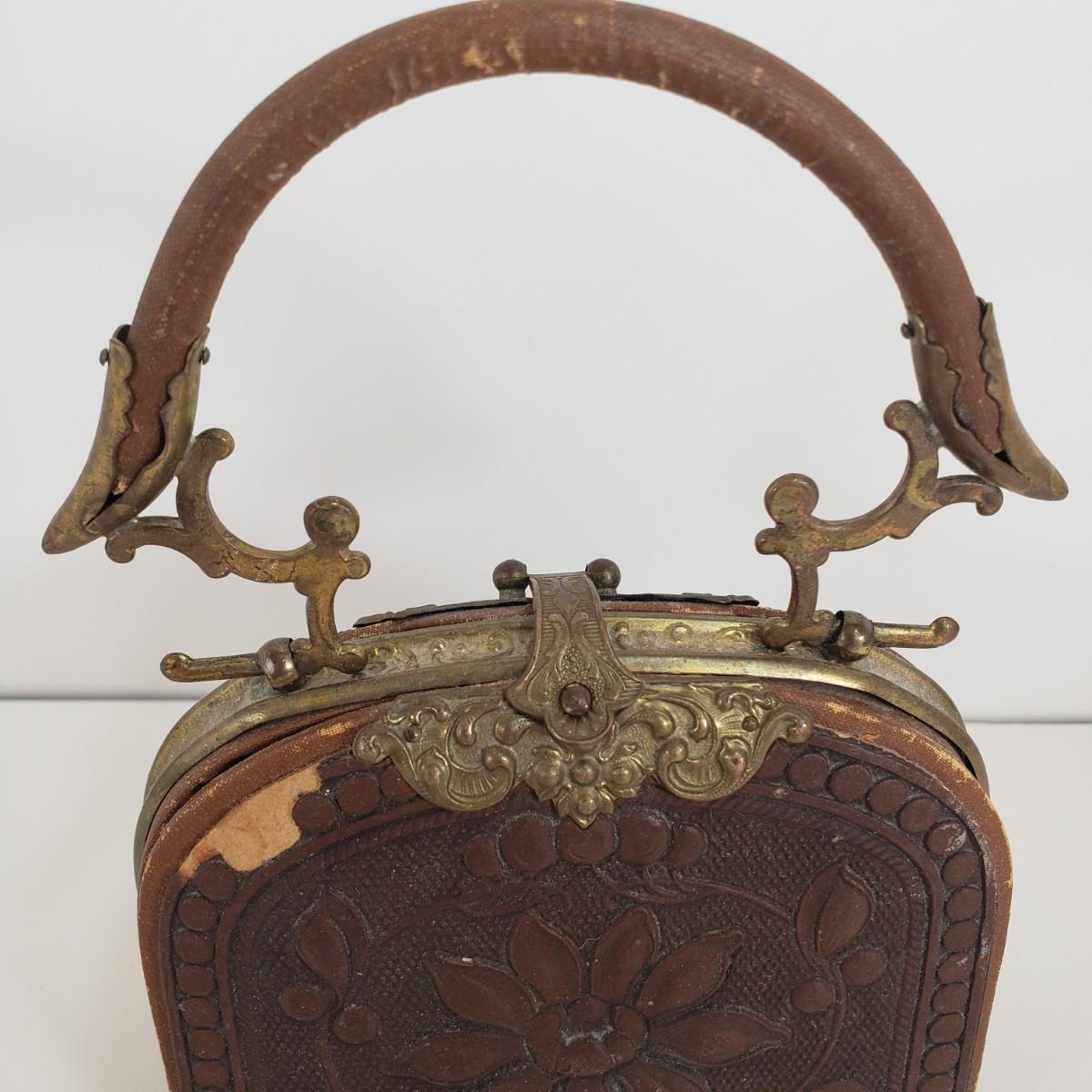 LOT 68MB: Antique Leather Sewing Kit, Art Nouveau Style Frame & Small Framed Art on Easel