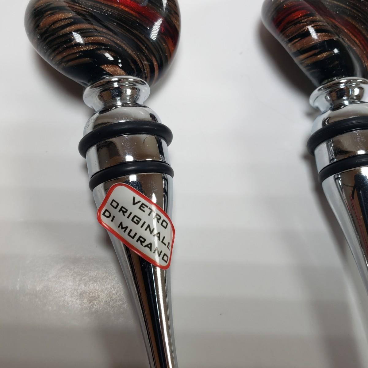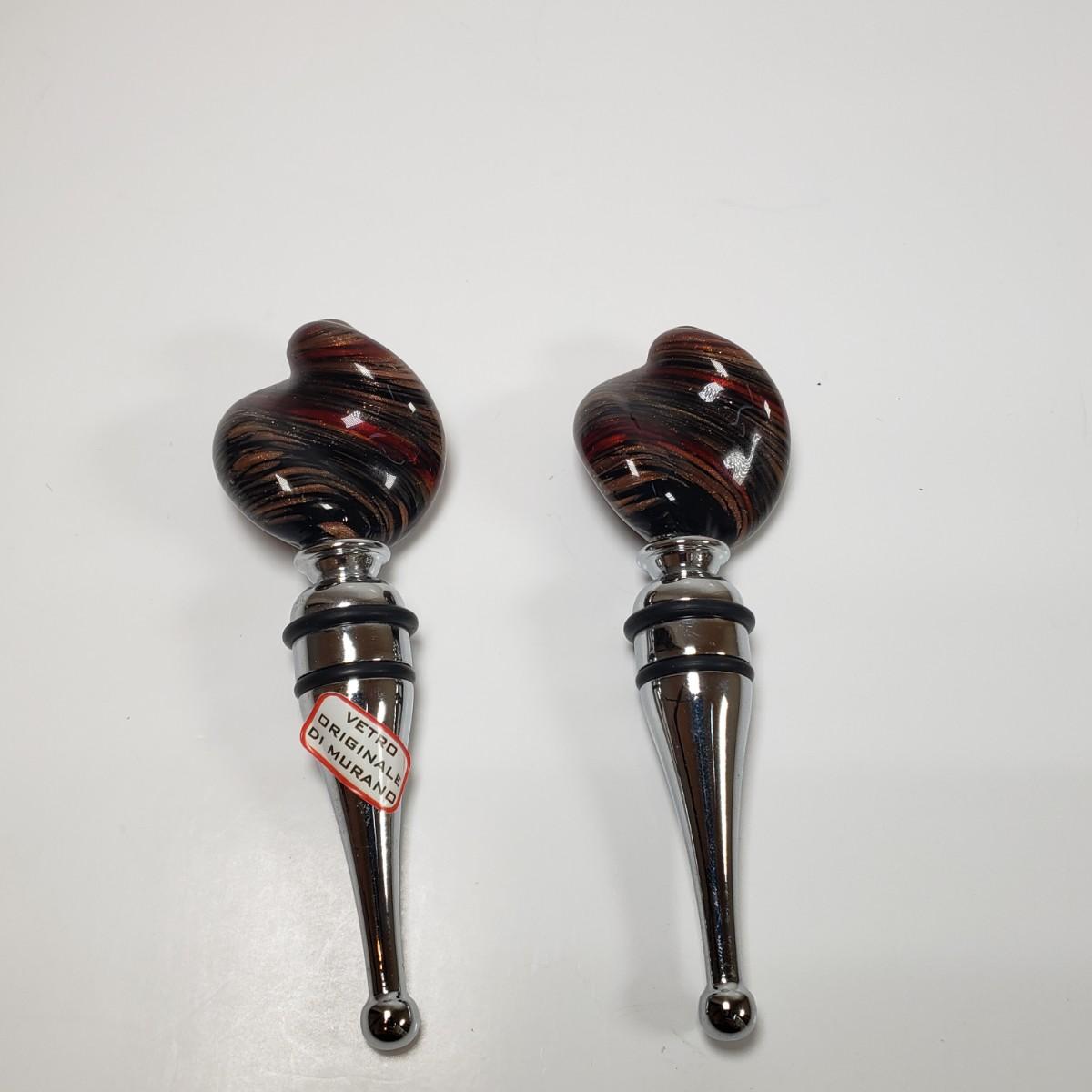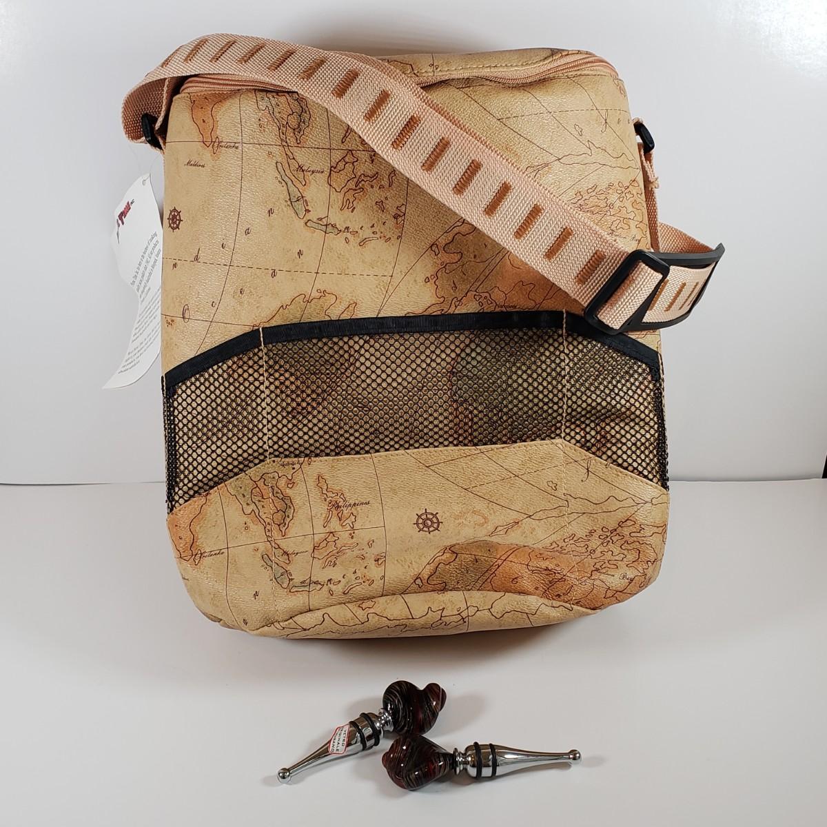 LOT 79MB: Pair of Murano Glass Wine Stoppers & World Style Map Insulated Picnic/Wine Bag(New)