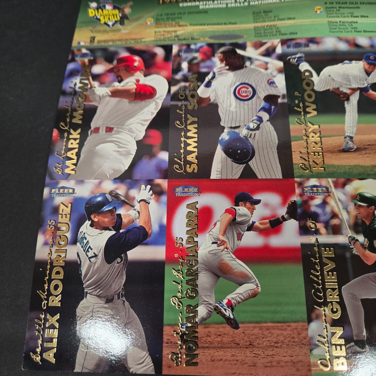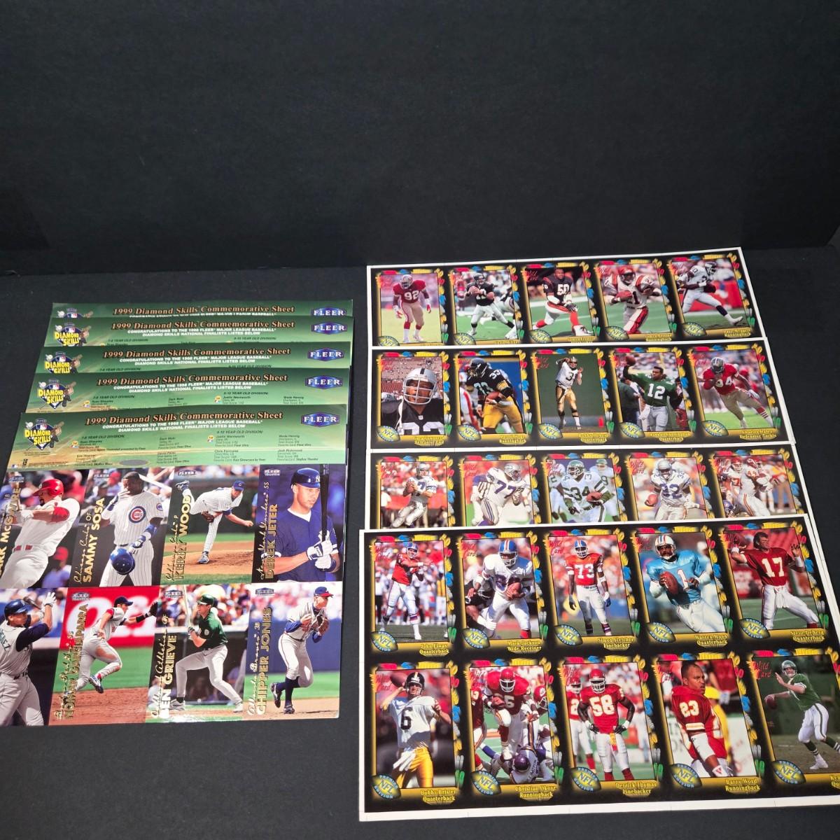LOT 106Z: Five Fleer 1999 Diamond Skills Commemorative Sheets and Four Premier NFL Edition Uncut Sheets